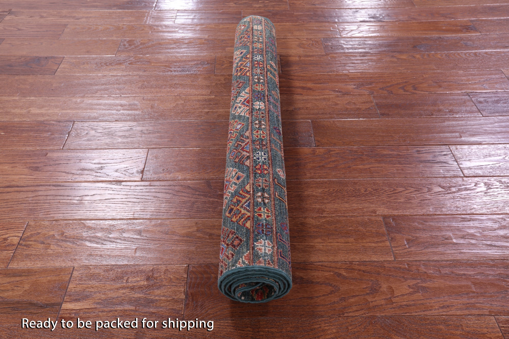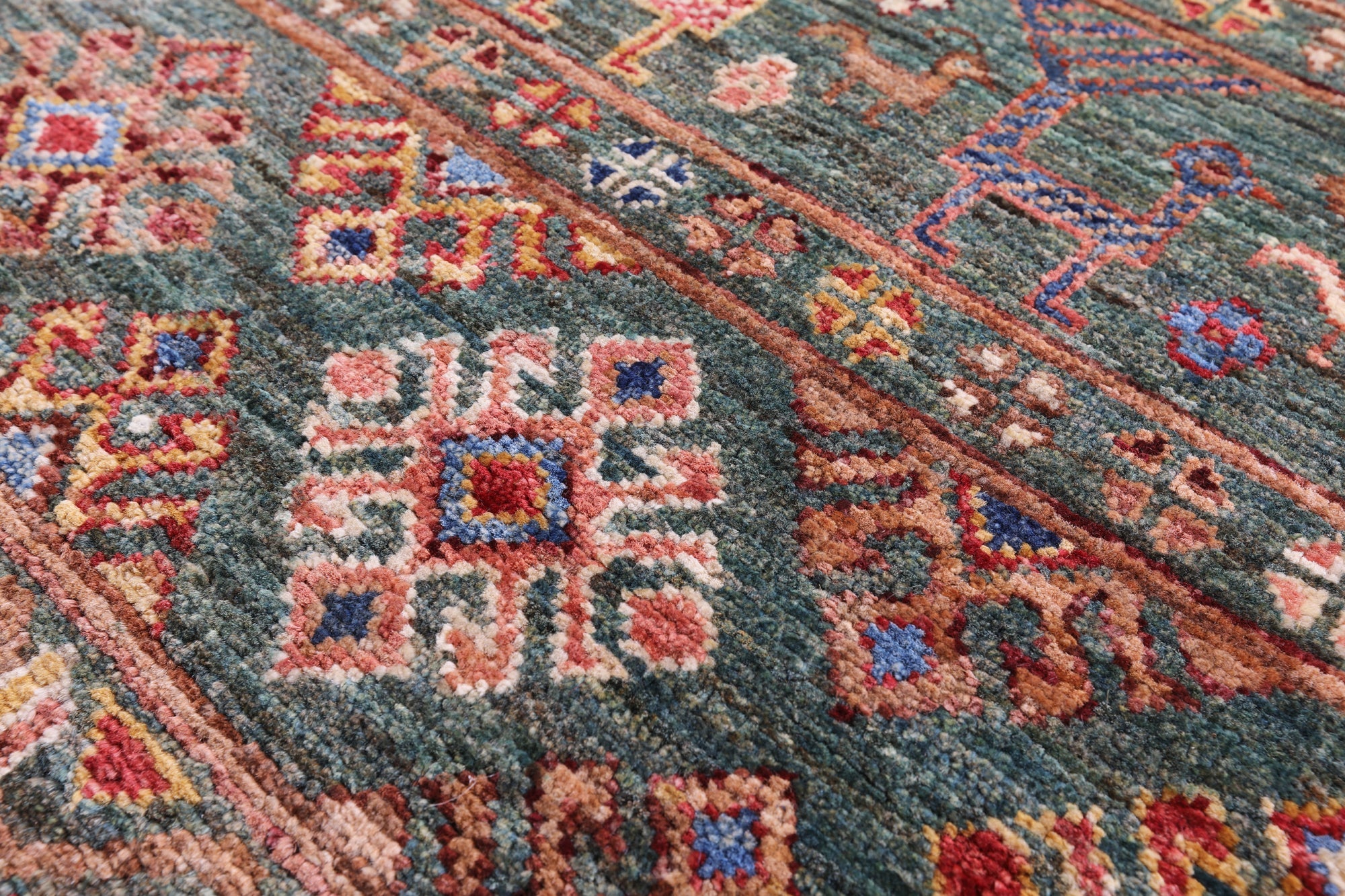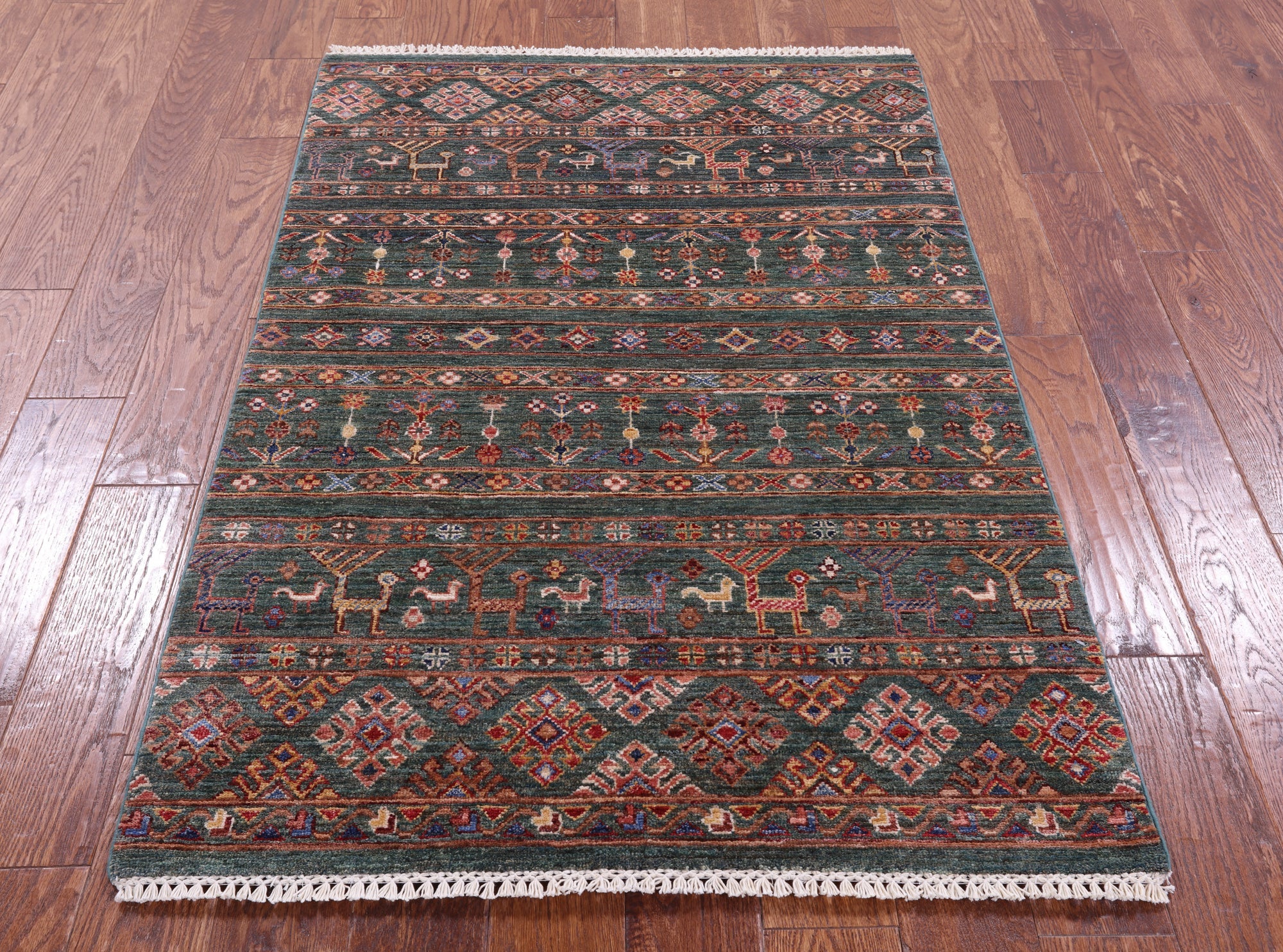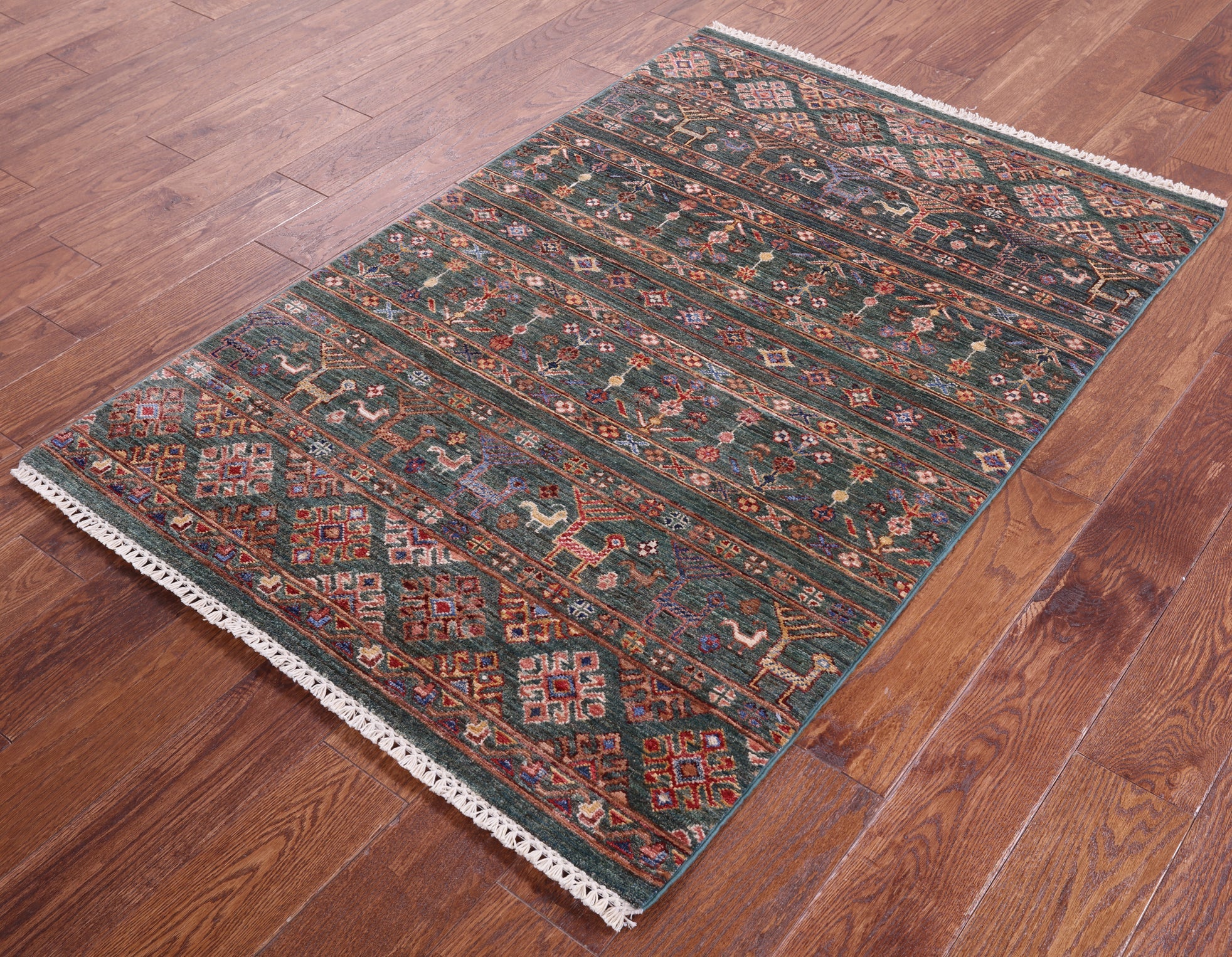 Green 3' 4" X 5' 0" Persian Gabbeh Tribal Hand Knotted Wool Rug - Q14379 is backordered and will ship as soon as it is back in stock.