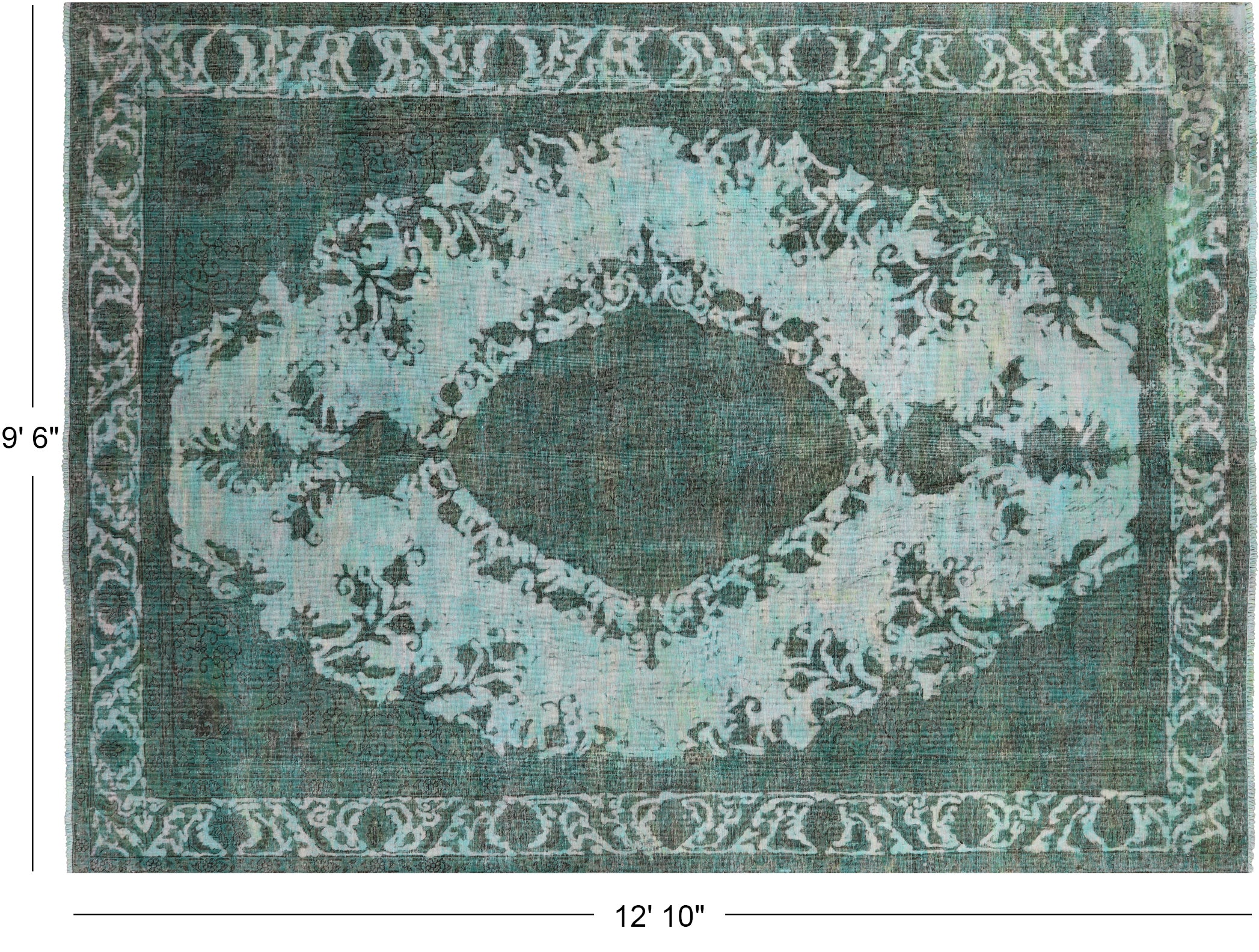 Green 9' 6" X 12' 10" Persian Overdyed Hand Knotted Area Rug- P5331 is backordered and will ship as soon as it is back in stock.