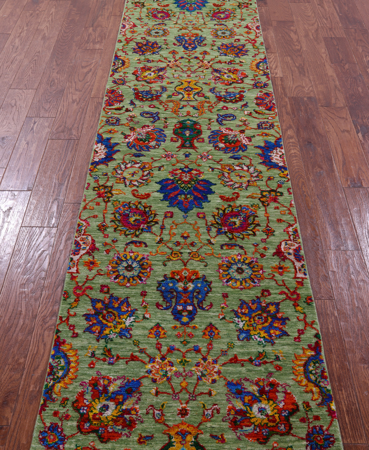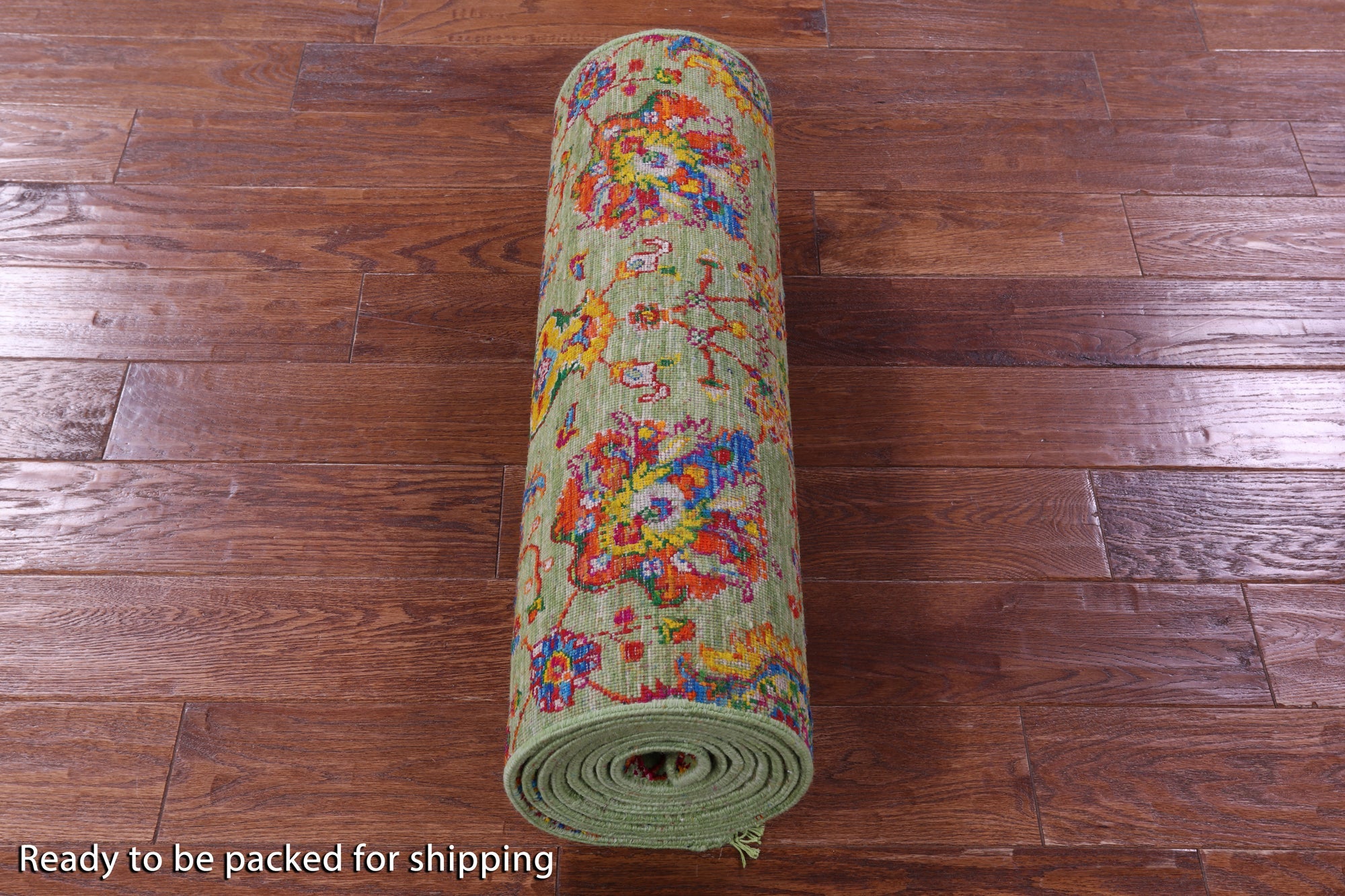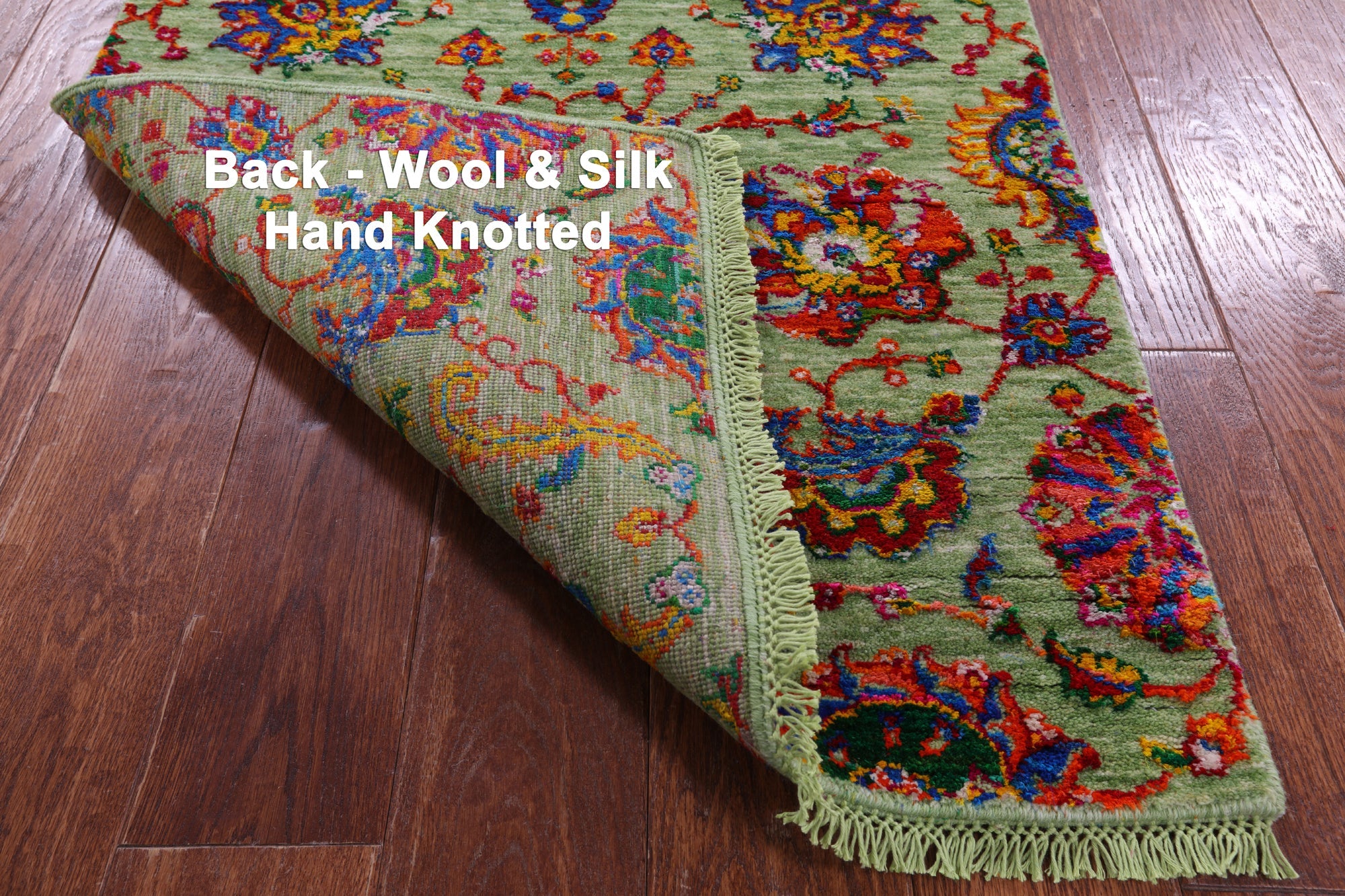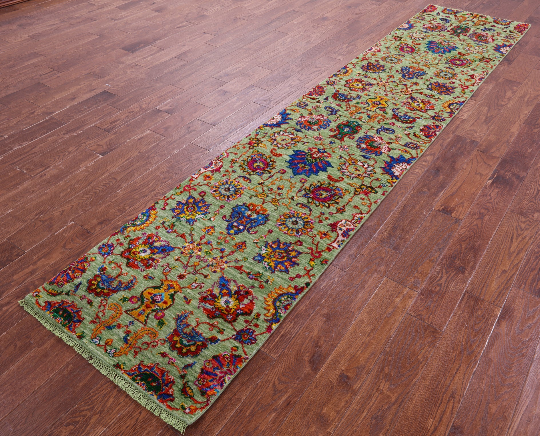 Green Persian Tabriz Hand-Knotted Wool & Silk Runner Rug 2' 6" X 11' 10" - Q23411 is backordered and will ship as soon as it is back in stock.
