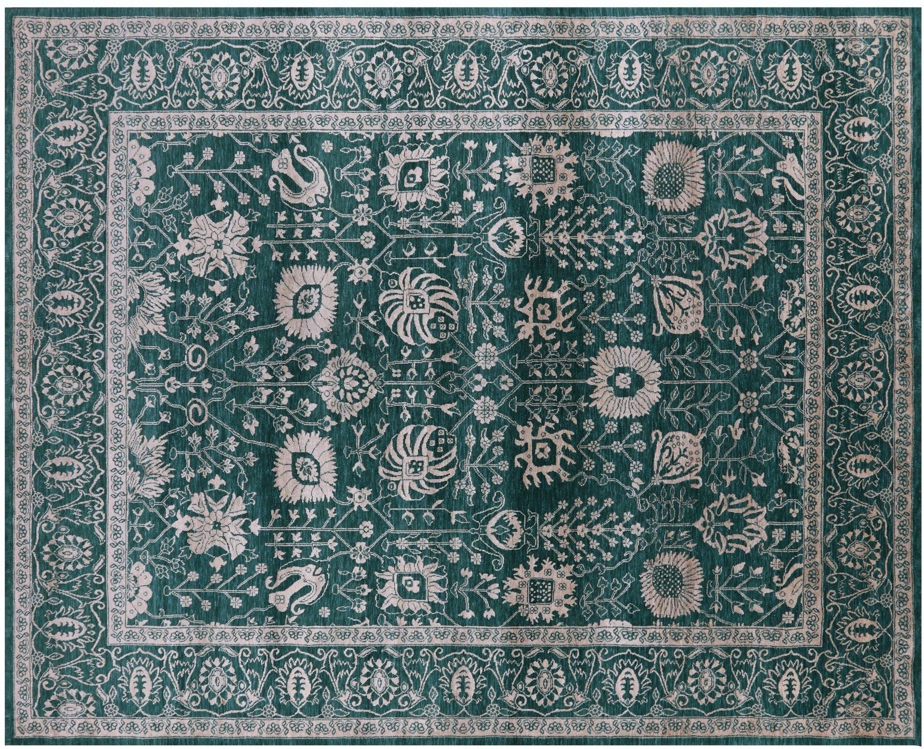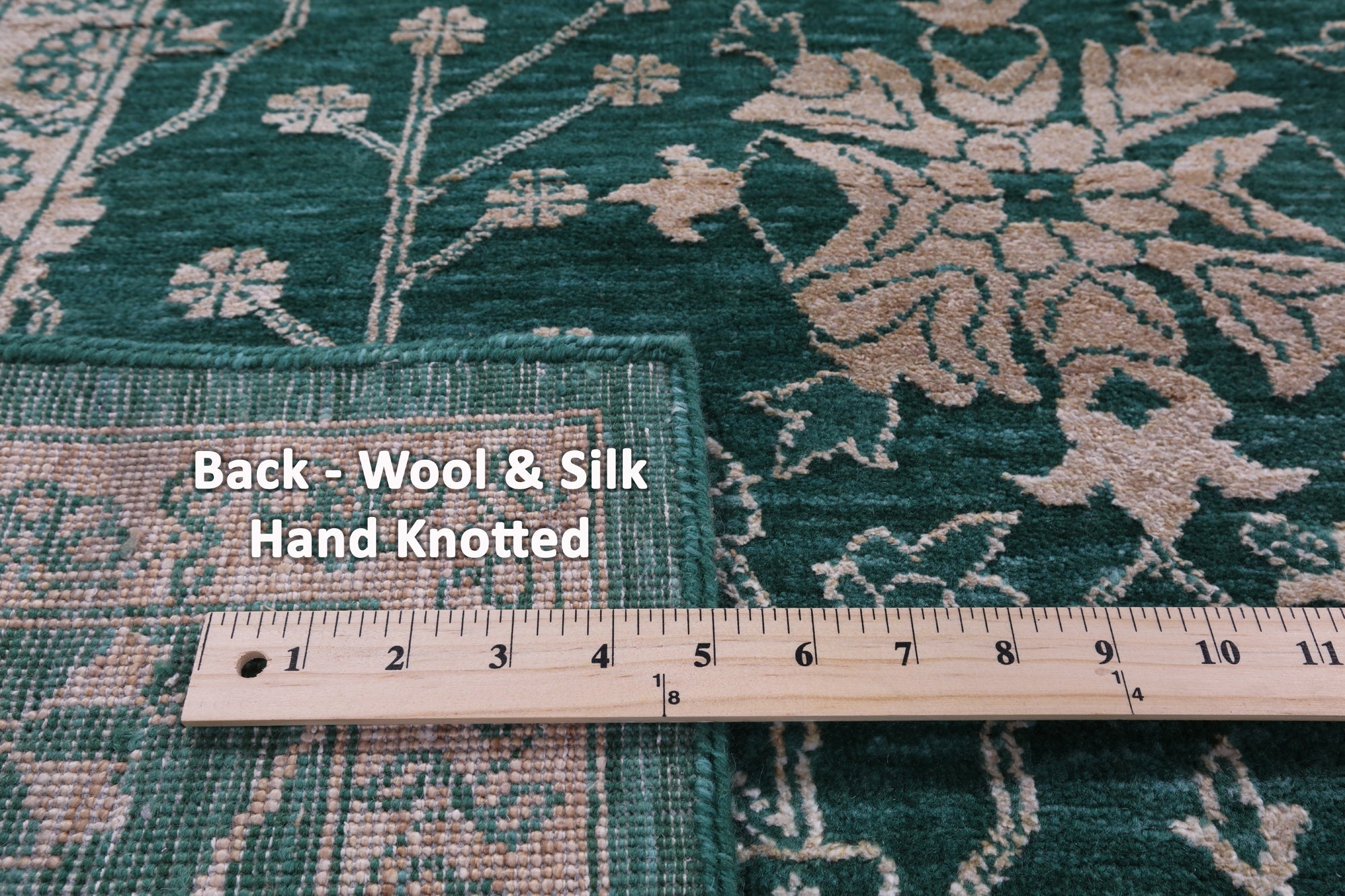 Green 8' 1" X 10' 2" Persian Tabriz Wool & Silk Hand Knotted Rug - Q20124
