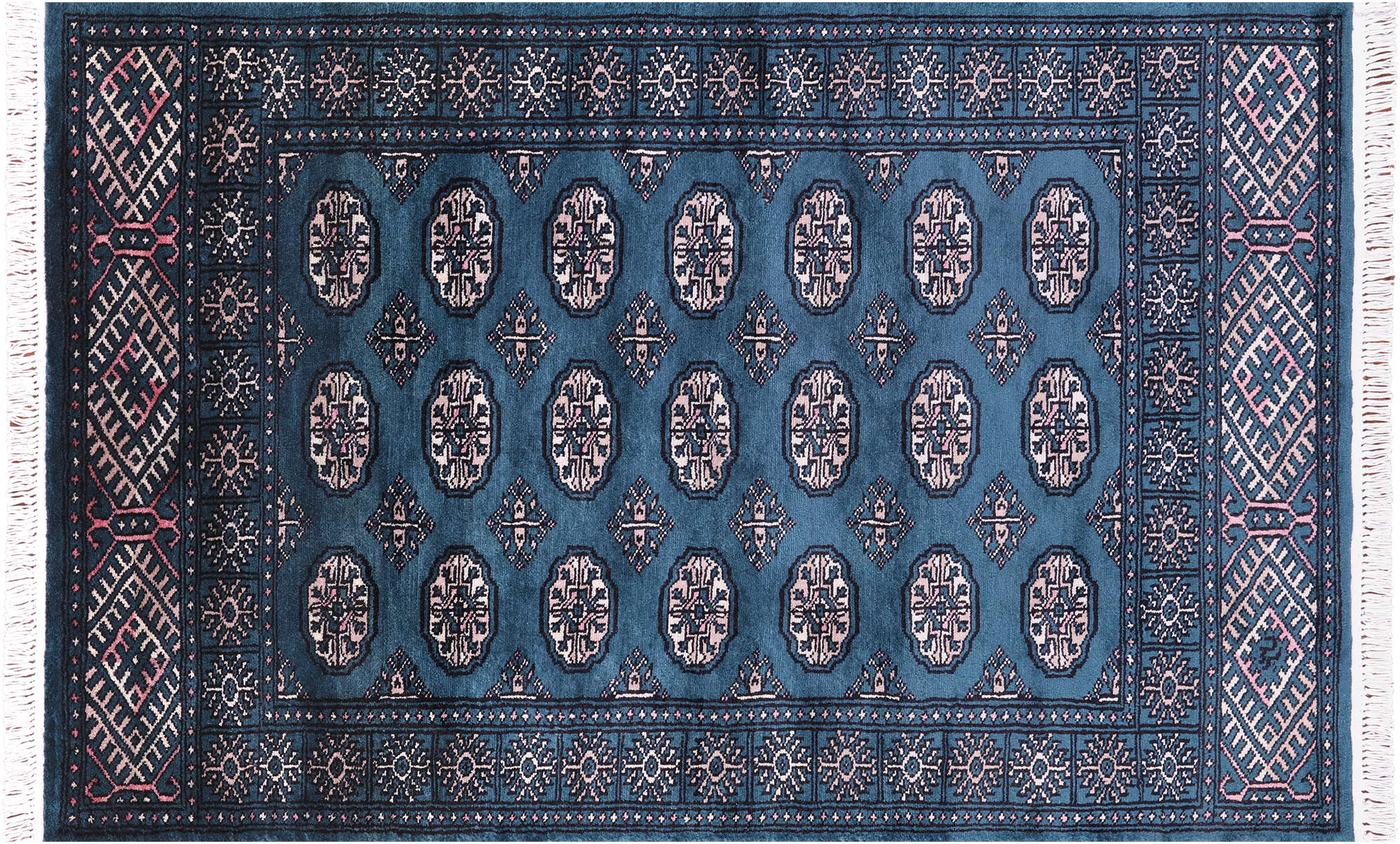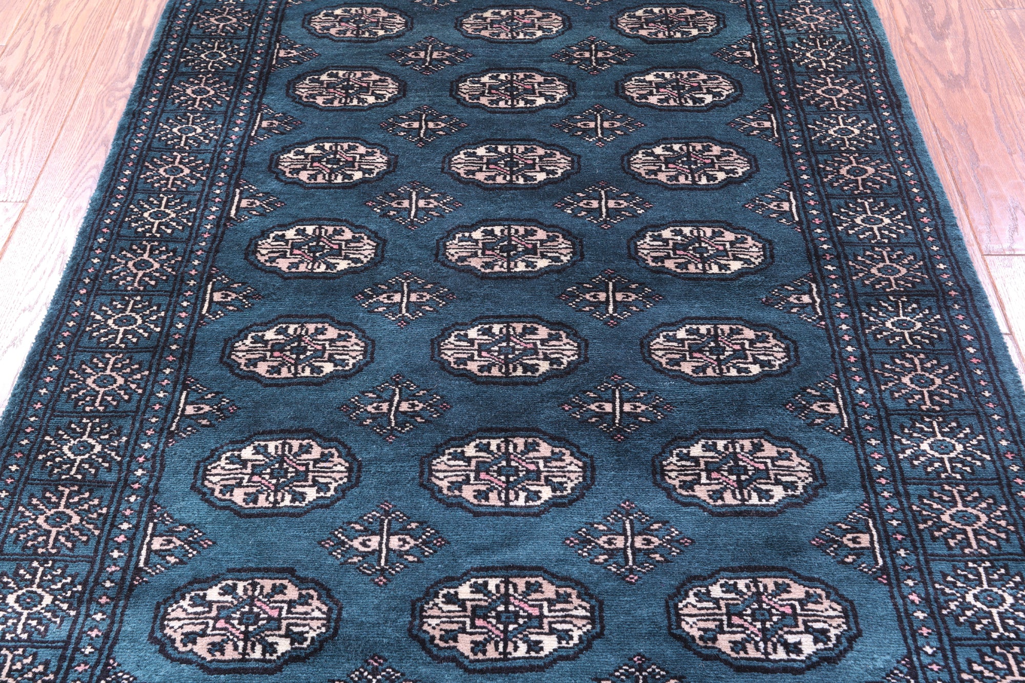 Bokharas are a type of handmade Pakistani rug; also known as Bukharas or Bokaras. Most are based on Turkmen prototypes called Tekkes. Pakistani Bokhara rugs are among the most popular handmade rugs in the world. They are popular for their soft, luxurious feel, heavy pile, attractive colors and appearance that consist of repeating octagonal figures called guls, usually on fields of burgundy red, gray blue, or sometimes green.