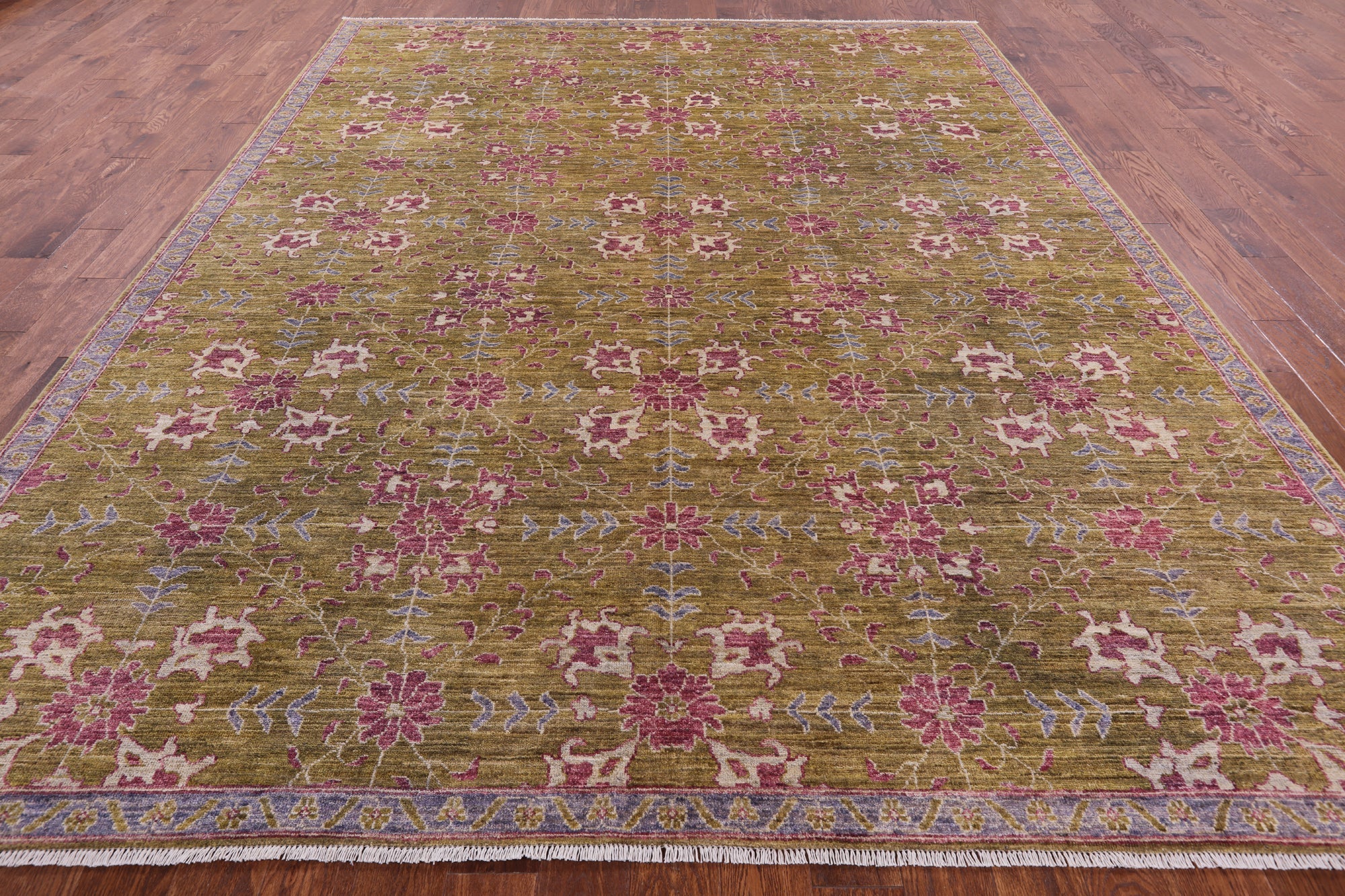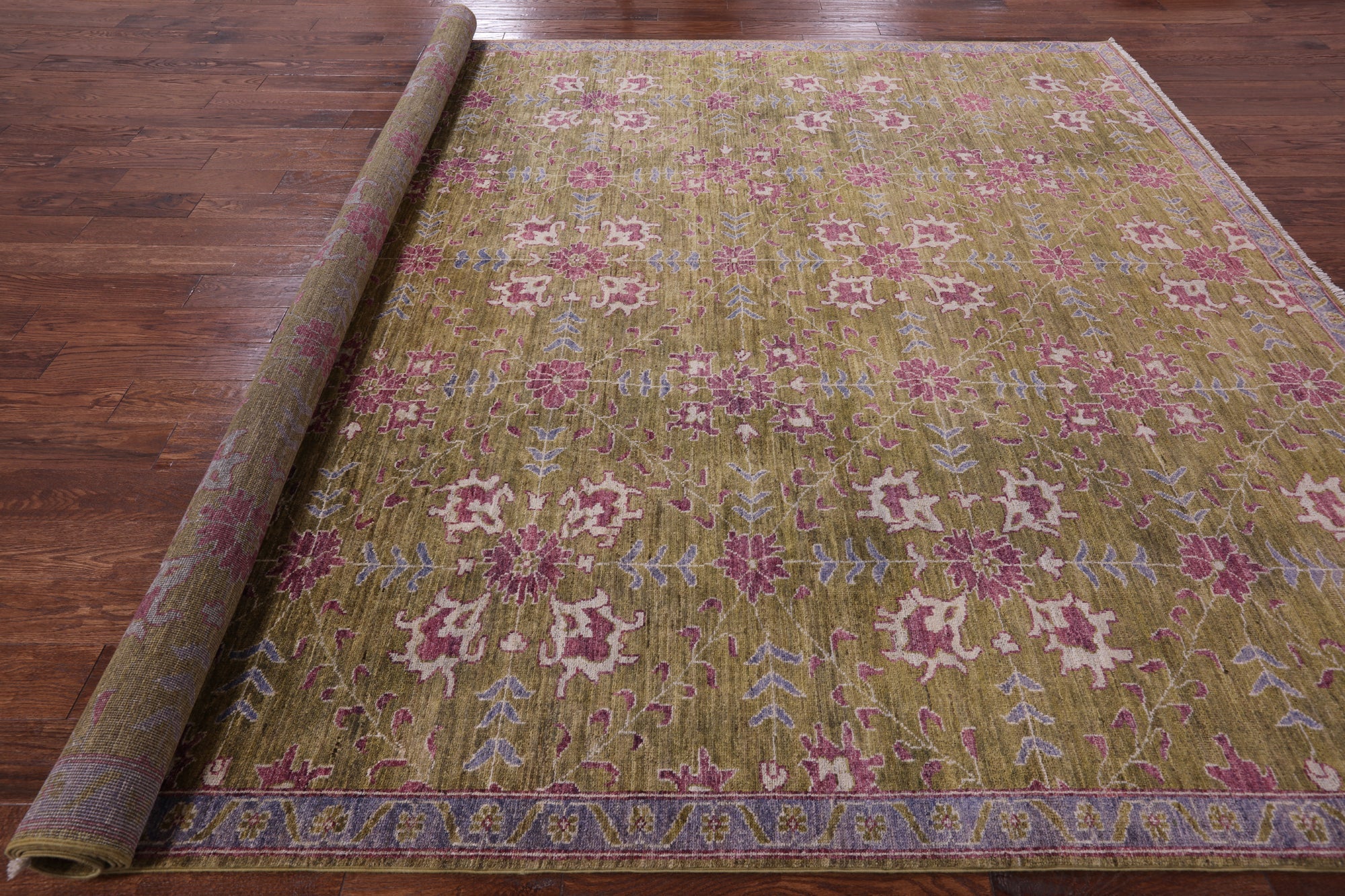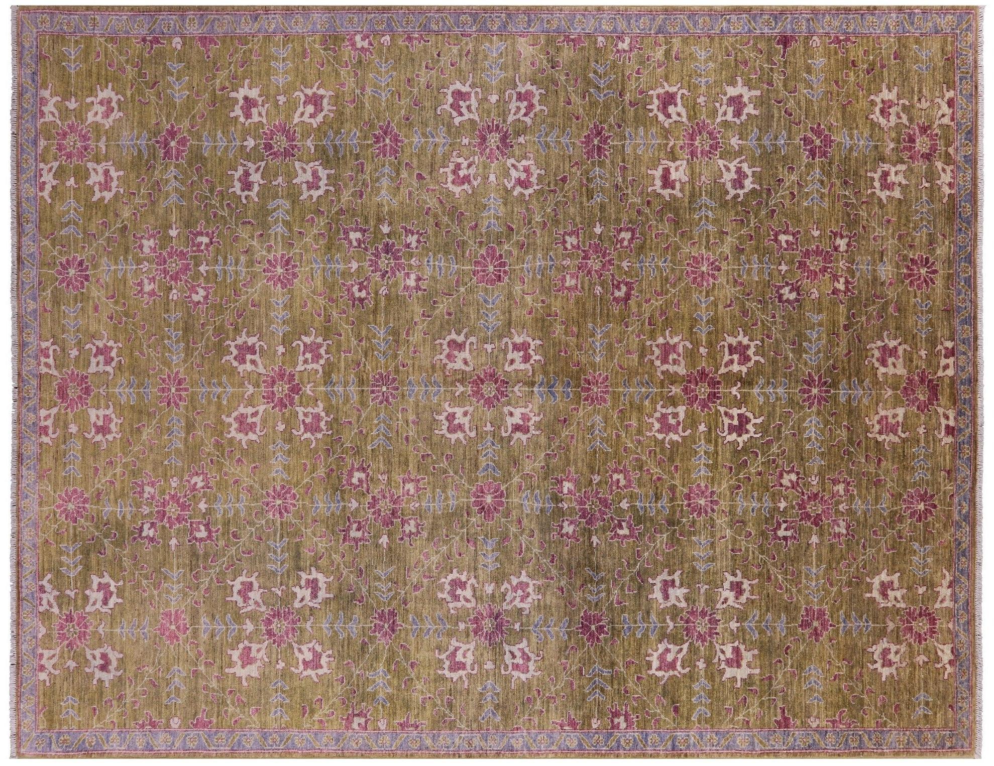 Green Turkish Oushak Hand-Knotted Wool Rug 9' 4" X 11' 10" - Q6660 is backordered and will ship as soon as it is back in stock.