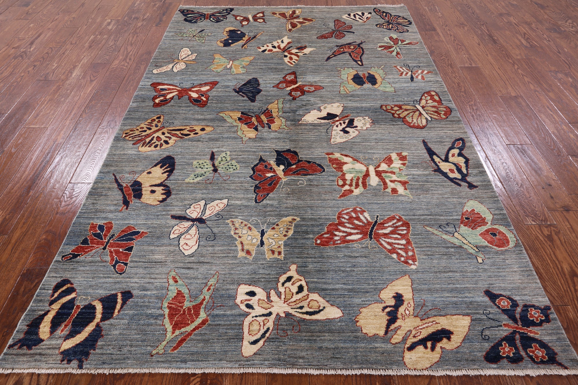 Grey Butterflies Persian Gabbeh Hand-Knotted Rug 5' 10" X 8' 9" - P7873 is backordered and will ship as soon as it is back in stock.