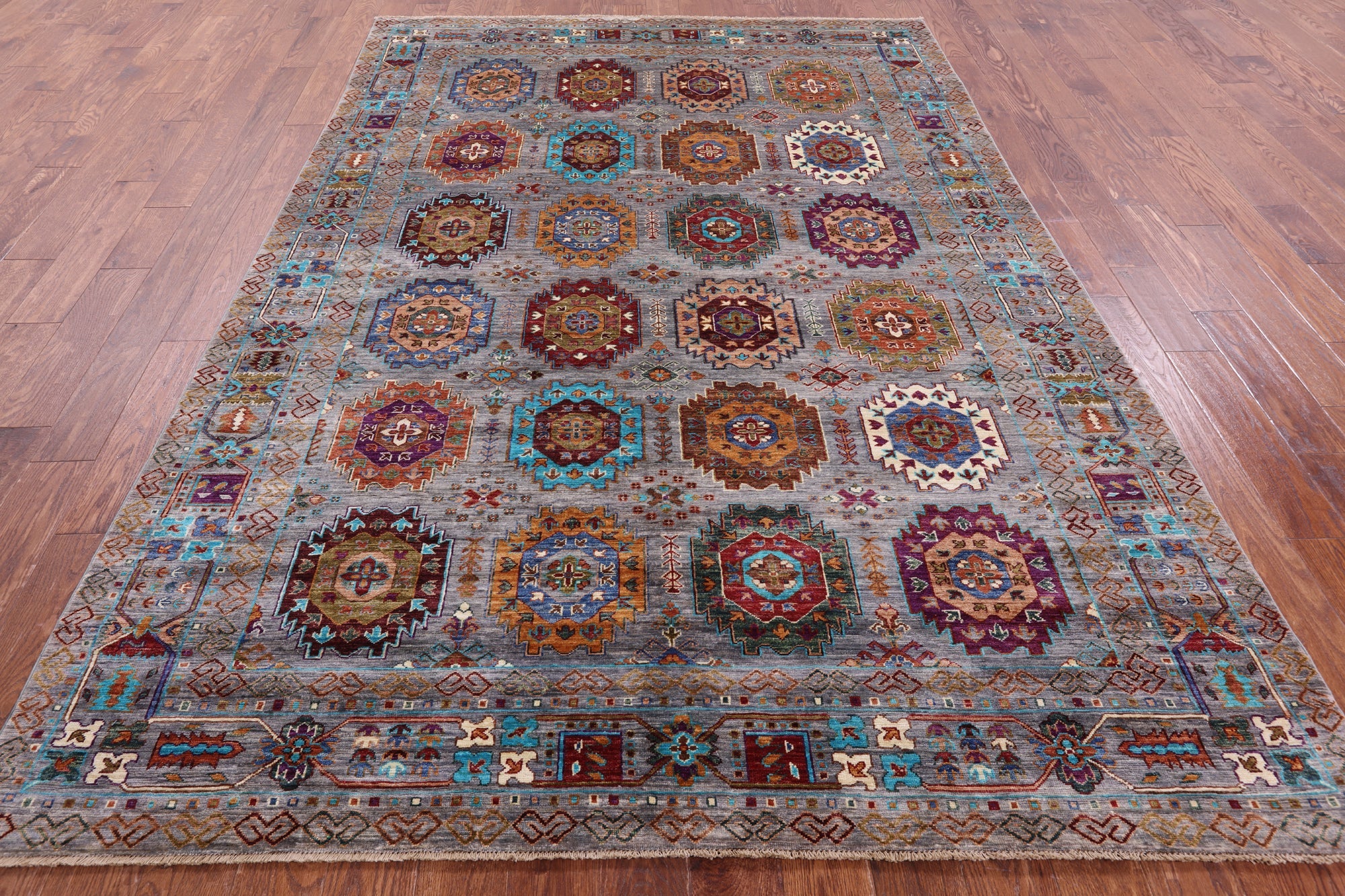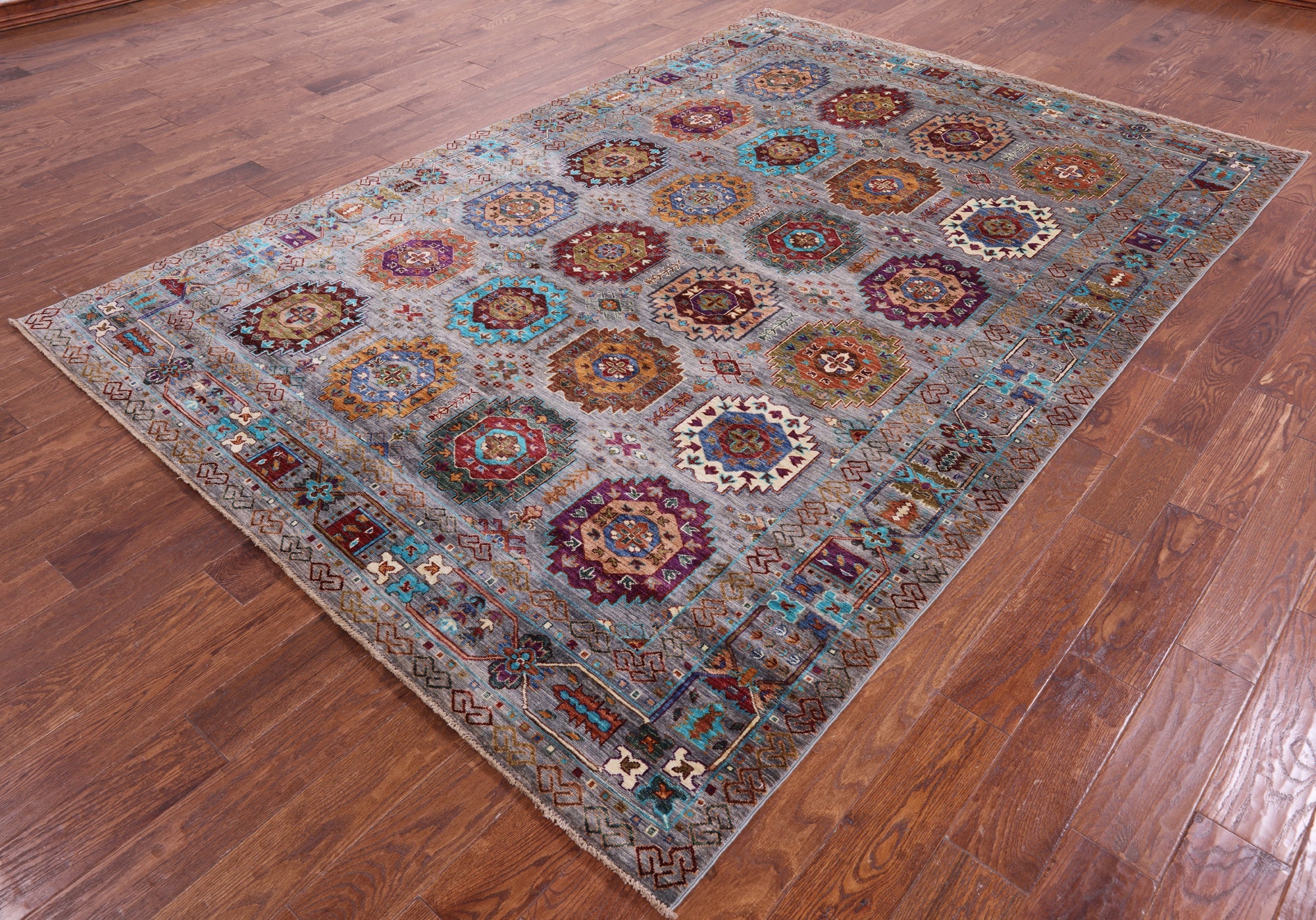 Grey 6' 9" X 9' 11" Fine Turkmen Ersari Handmade Wool Rug - Q12201 is backordered and will ship as soon as it is back in stock.
