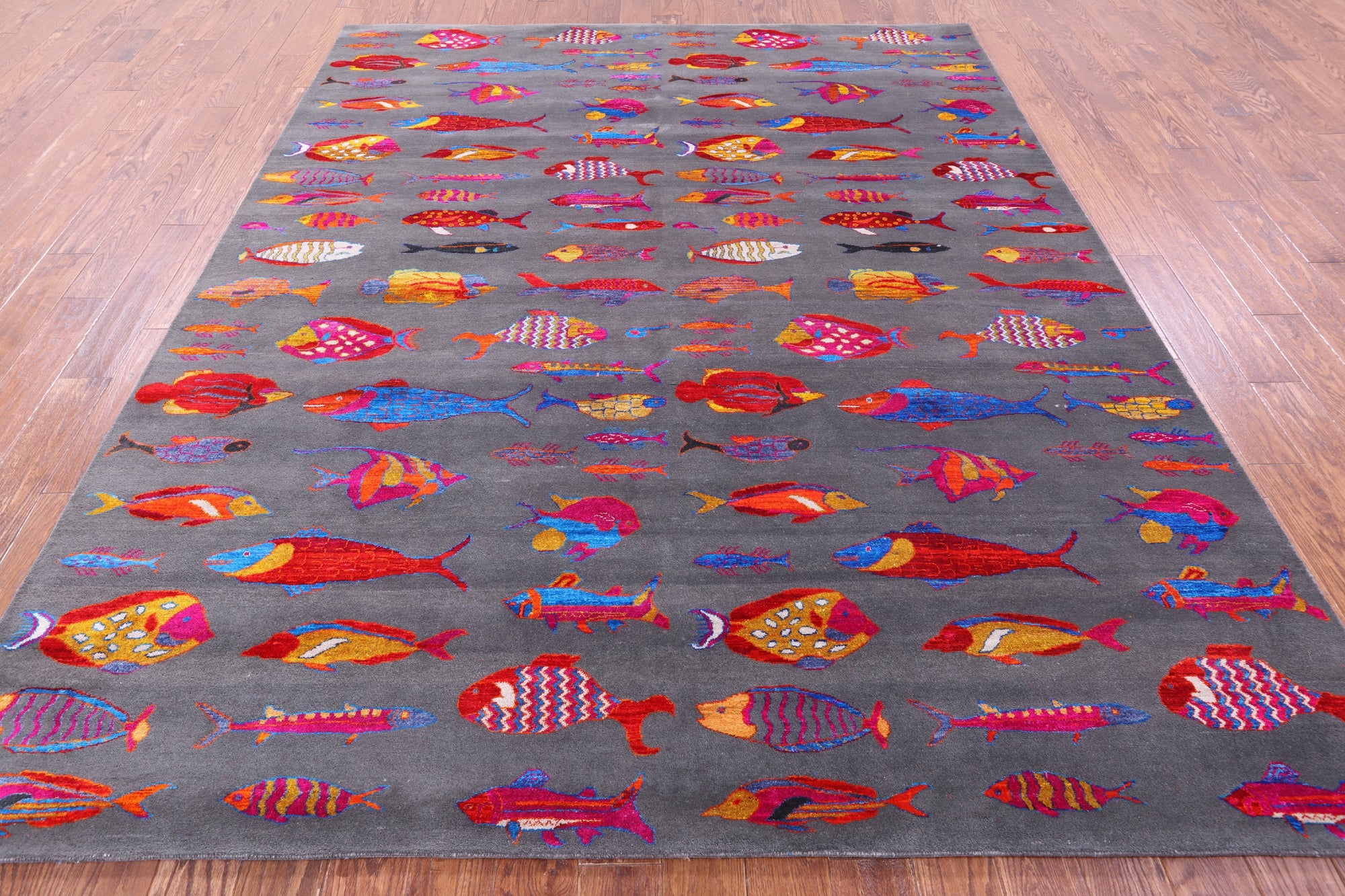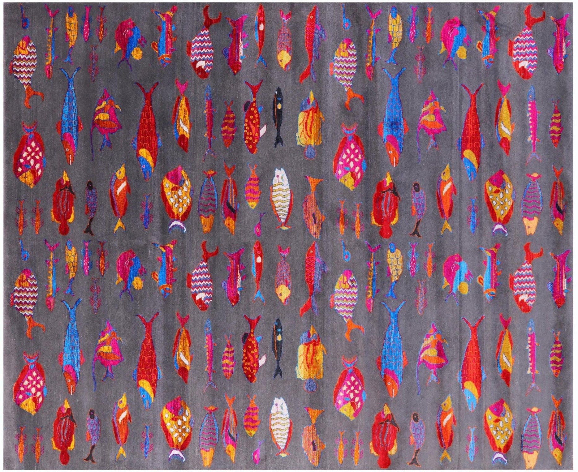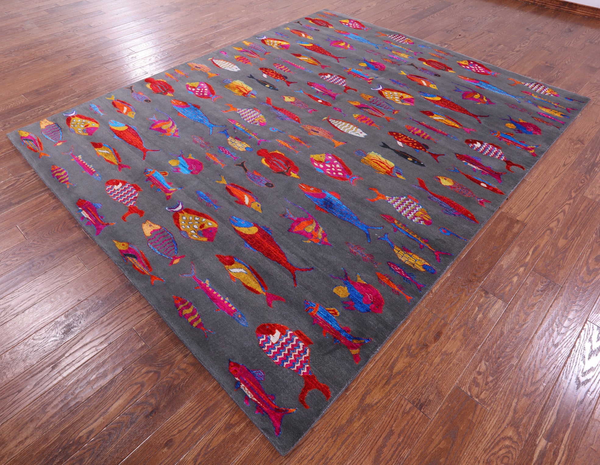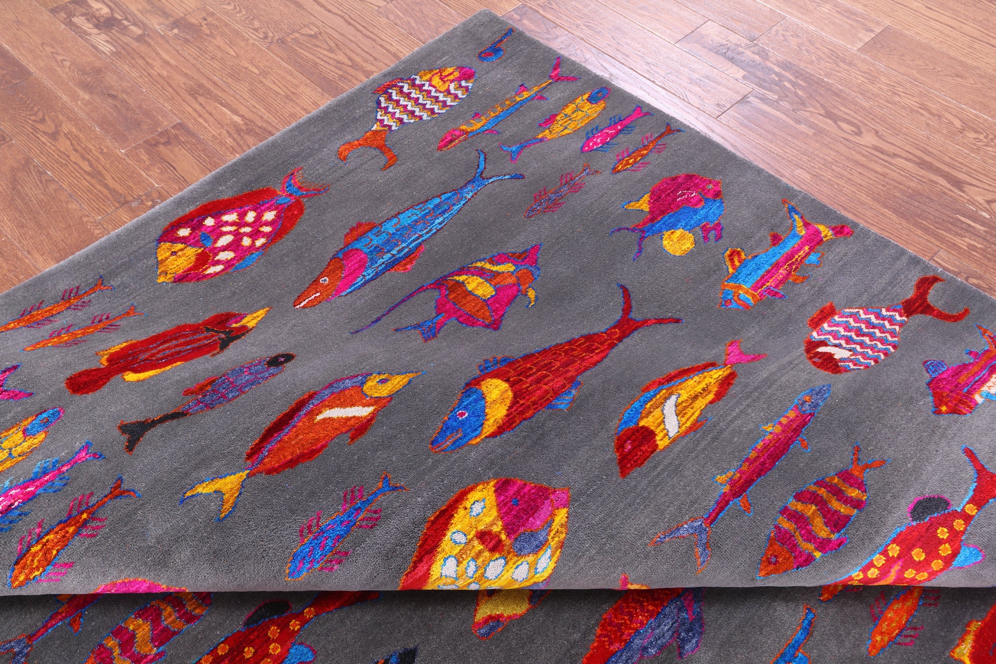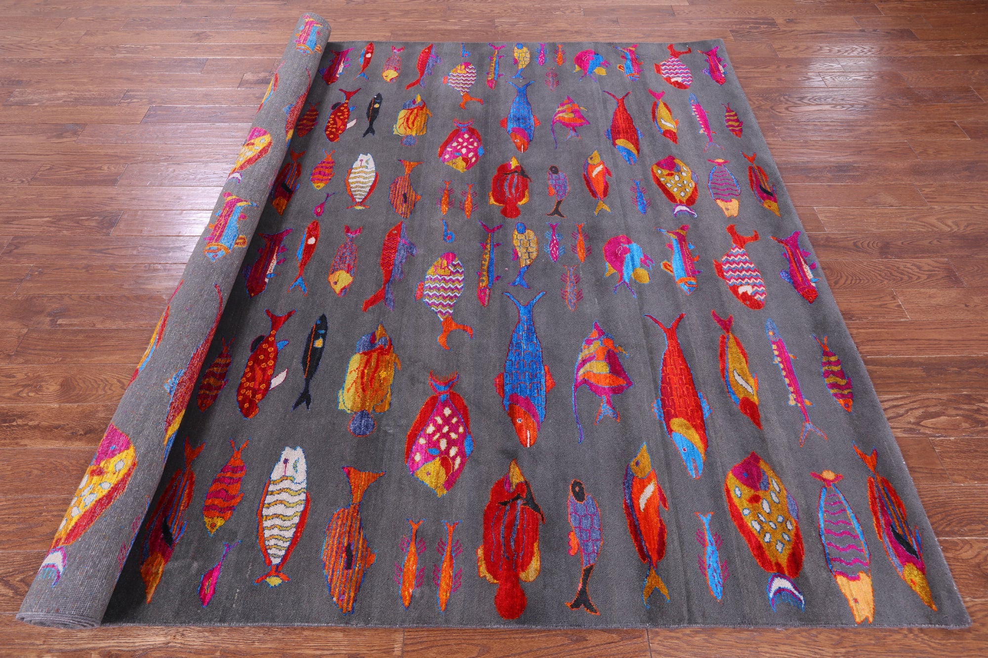 Grey 8' 1" X 9' 10" Gabbeh Fish Design Wool & Silk Hand Knotted Rug - Q20323 is backordered and will ship as soon as it is back in stock.