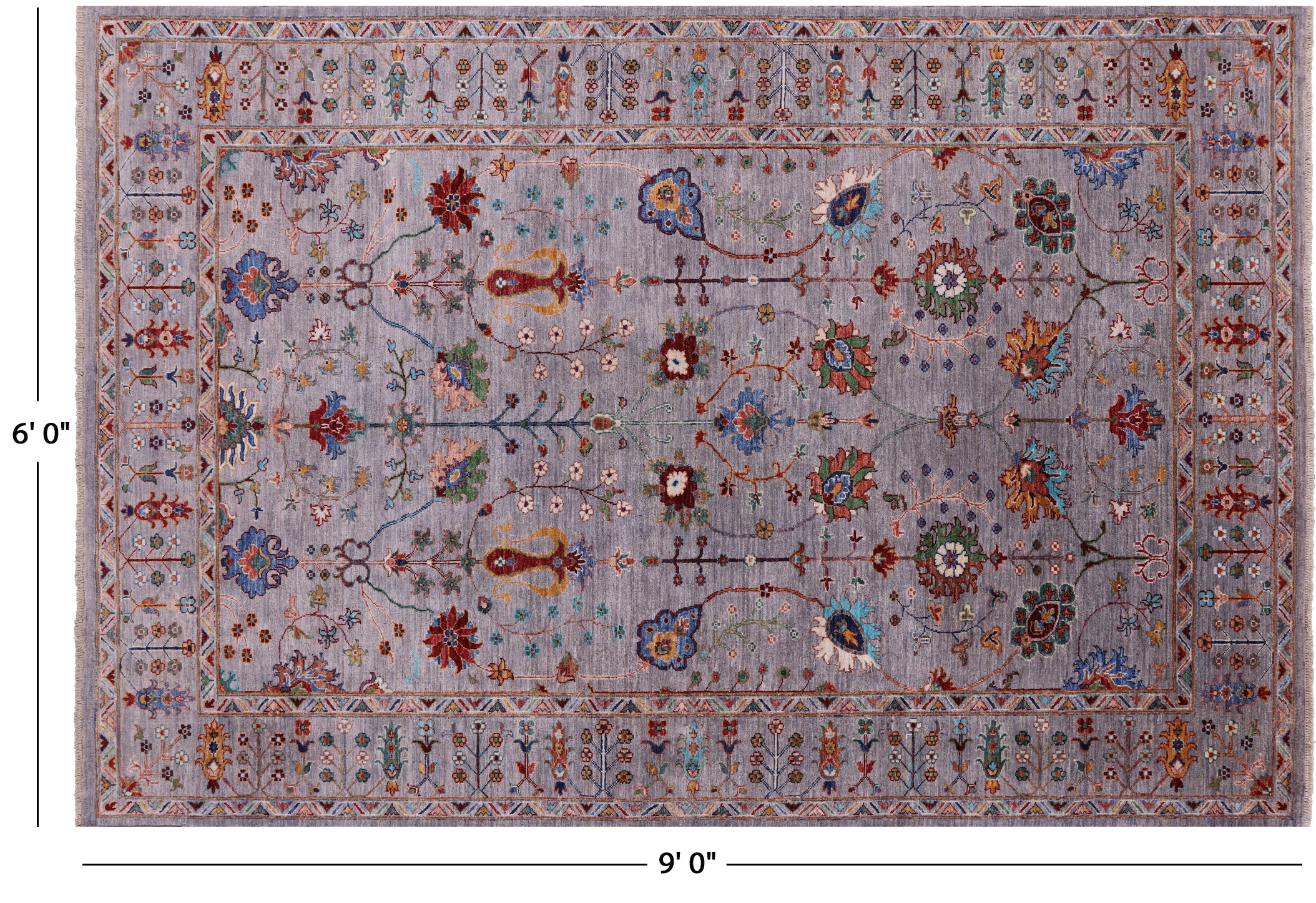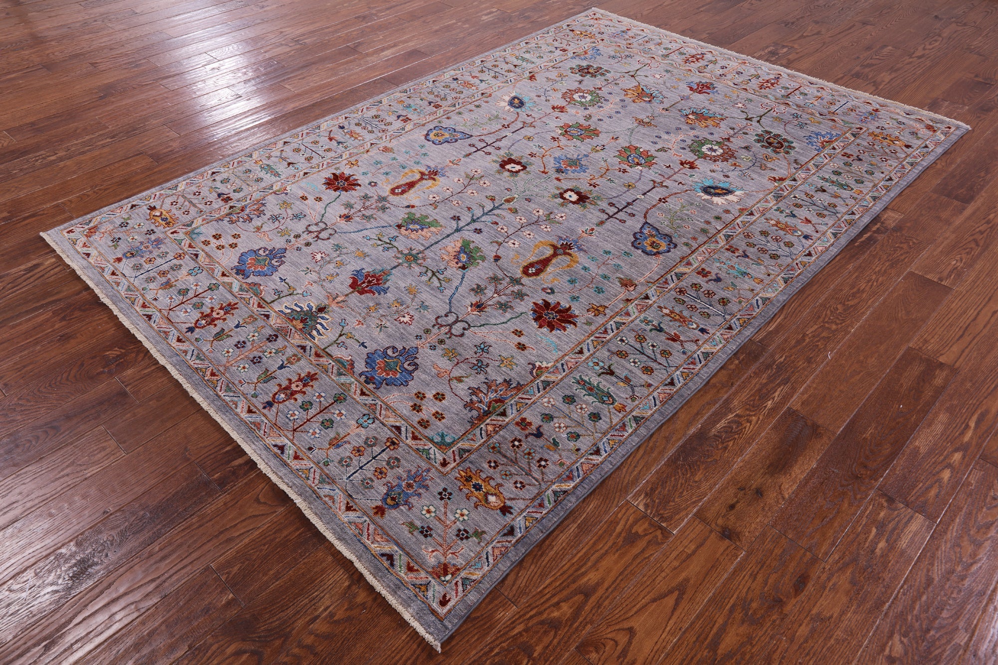 Grey Hand Knotted Persian Tabriz Wool Rug 6' 0" X 9' 0" - Q10569