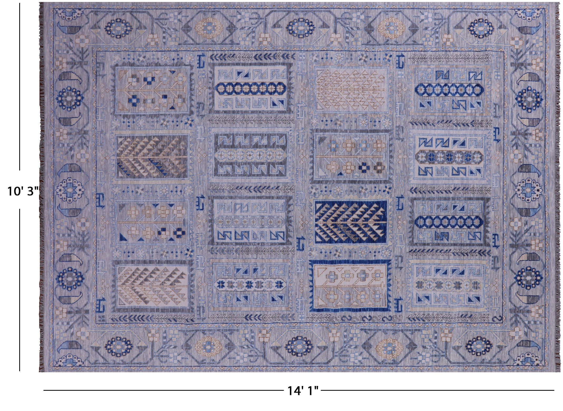 Grey Hand Knotted Tribal Persian Gabbeh Wool Rug 10' 3" X 14' 1" - Q21257