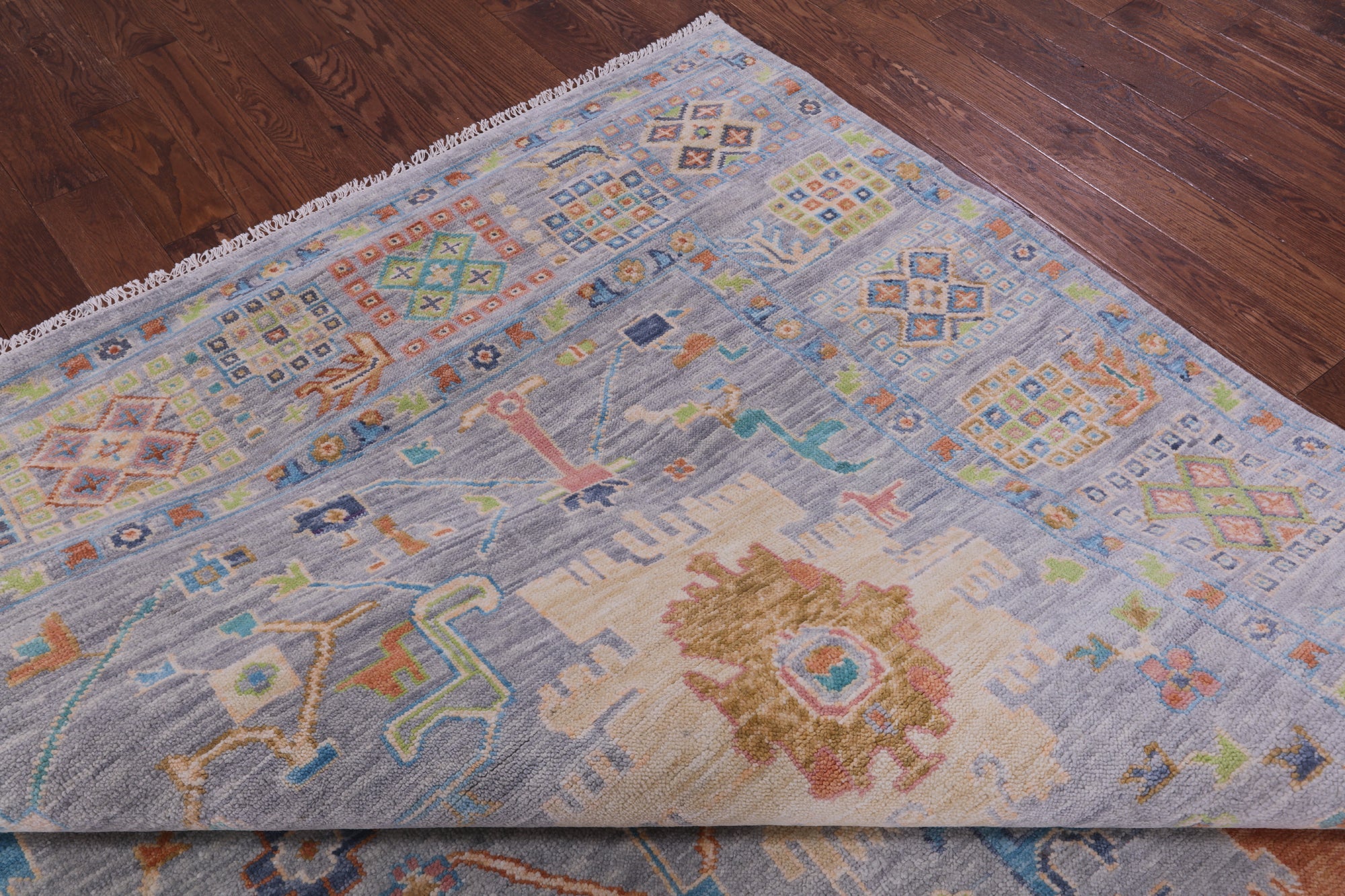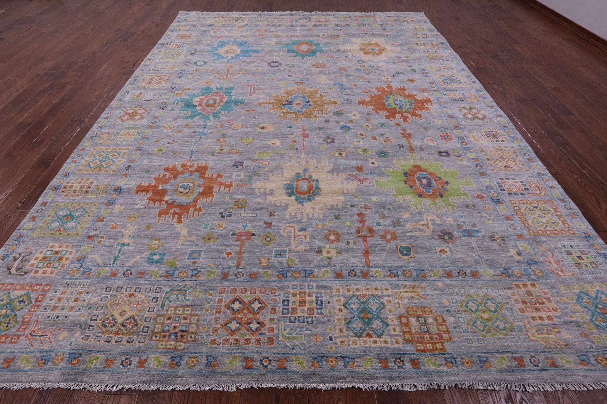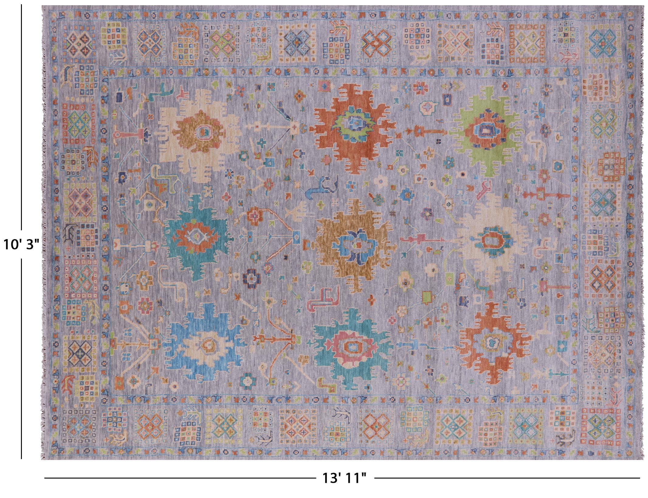 Grey Hand-Knotted Turkish Angora Oushak Rug 10' 3" X 13' 11" - Q19081