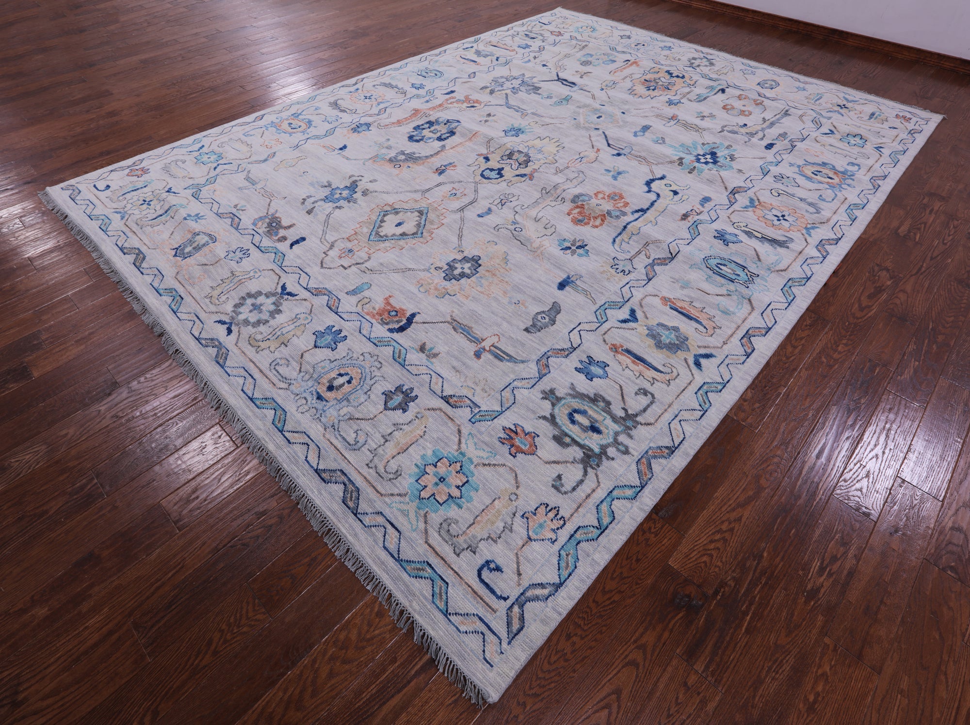 Grey Hand Knotted Turkish Angora Oushak Rug 10' 3" X 13' 11" - Q19755