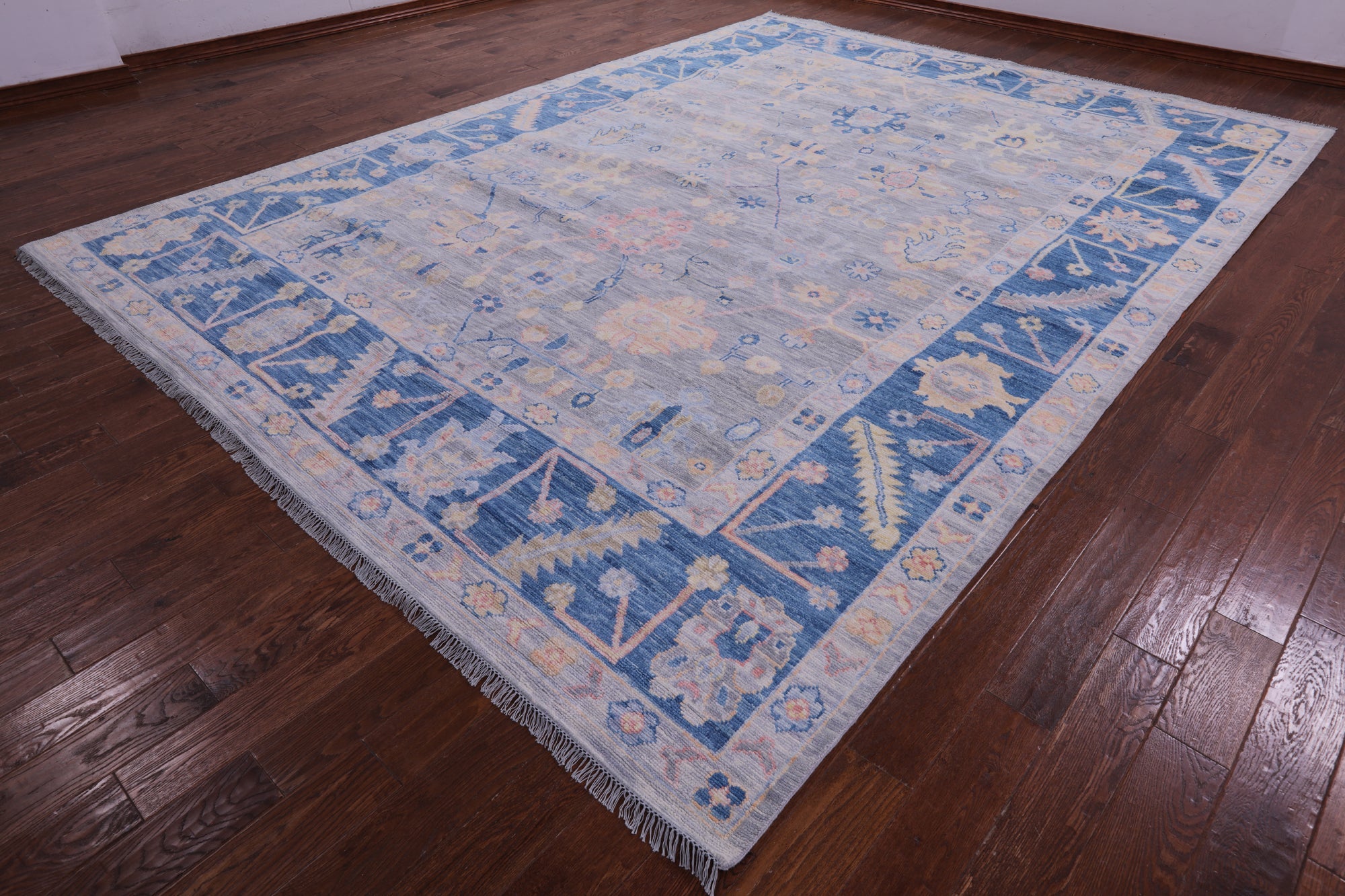 Grey Hand-Knotted Turkish Angora Oushak Rug 10' 1" X 13' 11" - Q19773 is backordered and will ship as soon as it is back in stock.