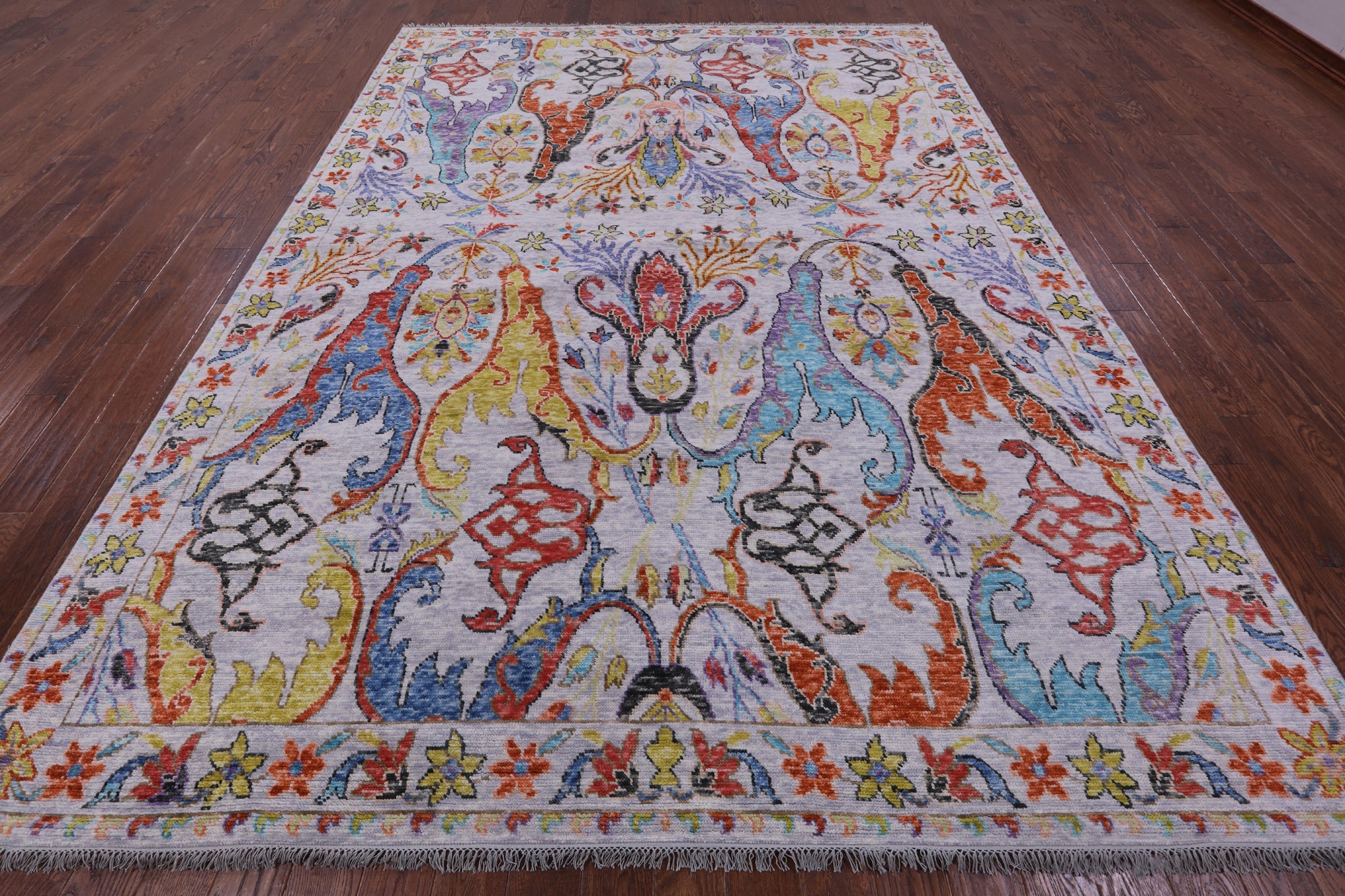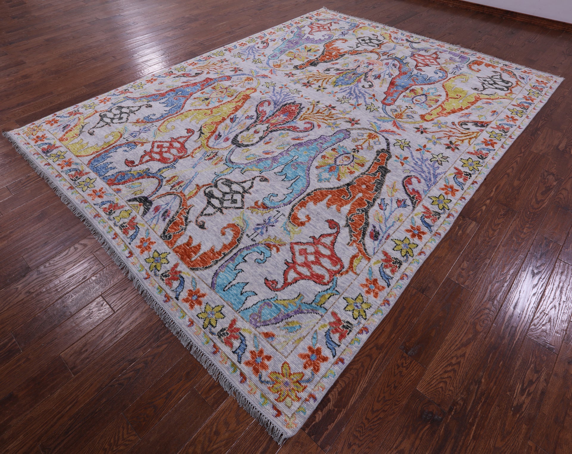 Grey Hand Knotted Turkish Angora Oushak Rug 9' 1" X 12' 3" - Q19819