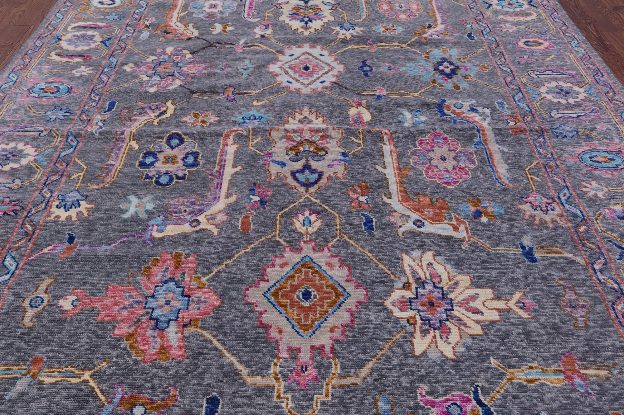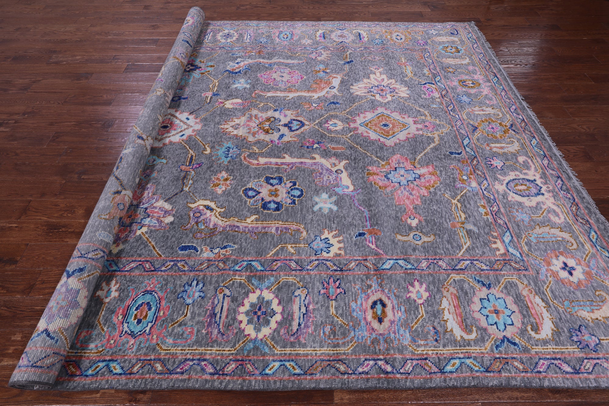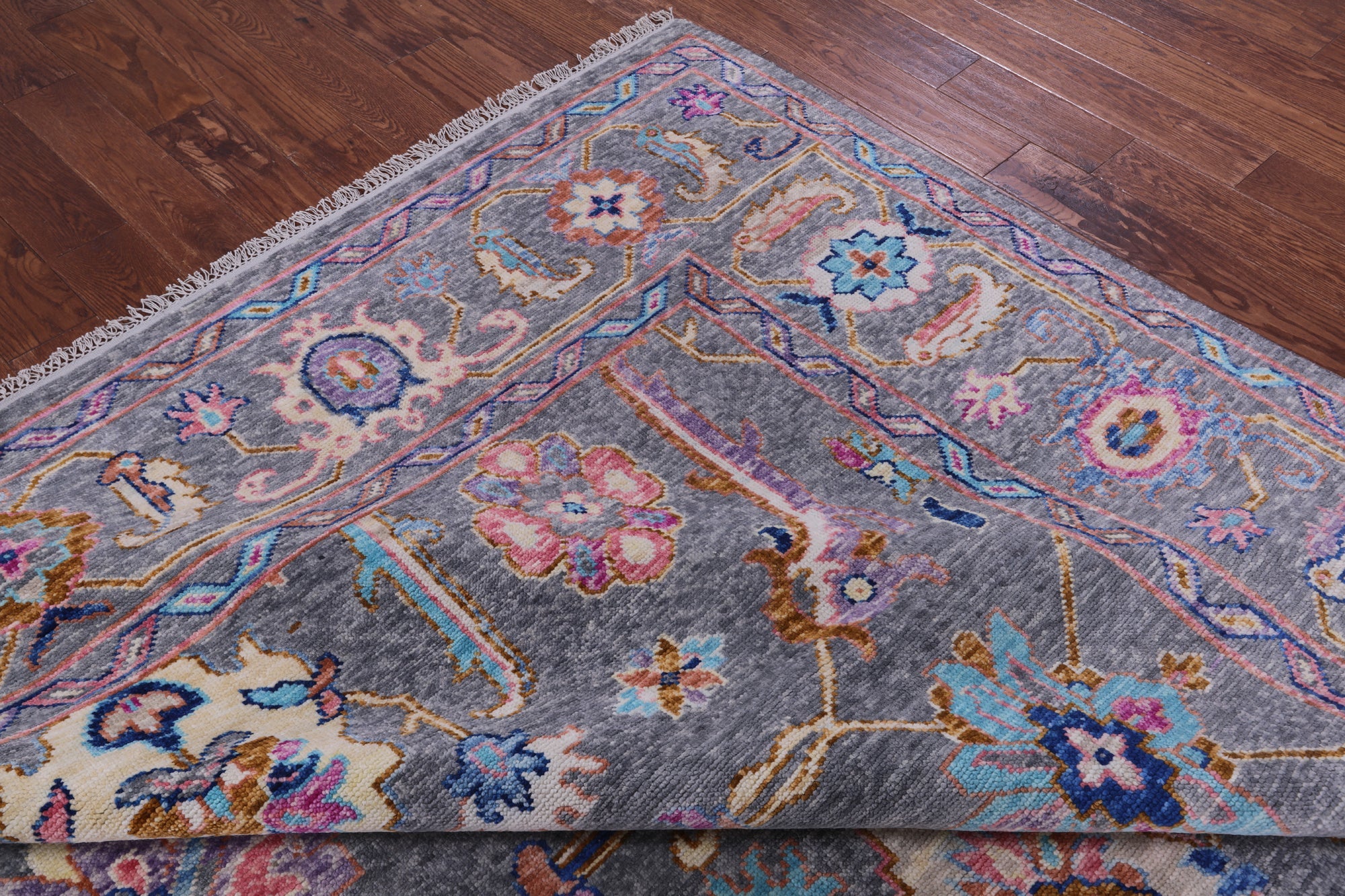 Grey Hand-Knotted Turkish Angora Oushak Rug 9' 2" X 11' 8" - Q19827 is backordered and will ship as soon as it is back in stock.