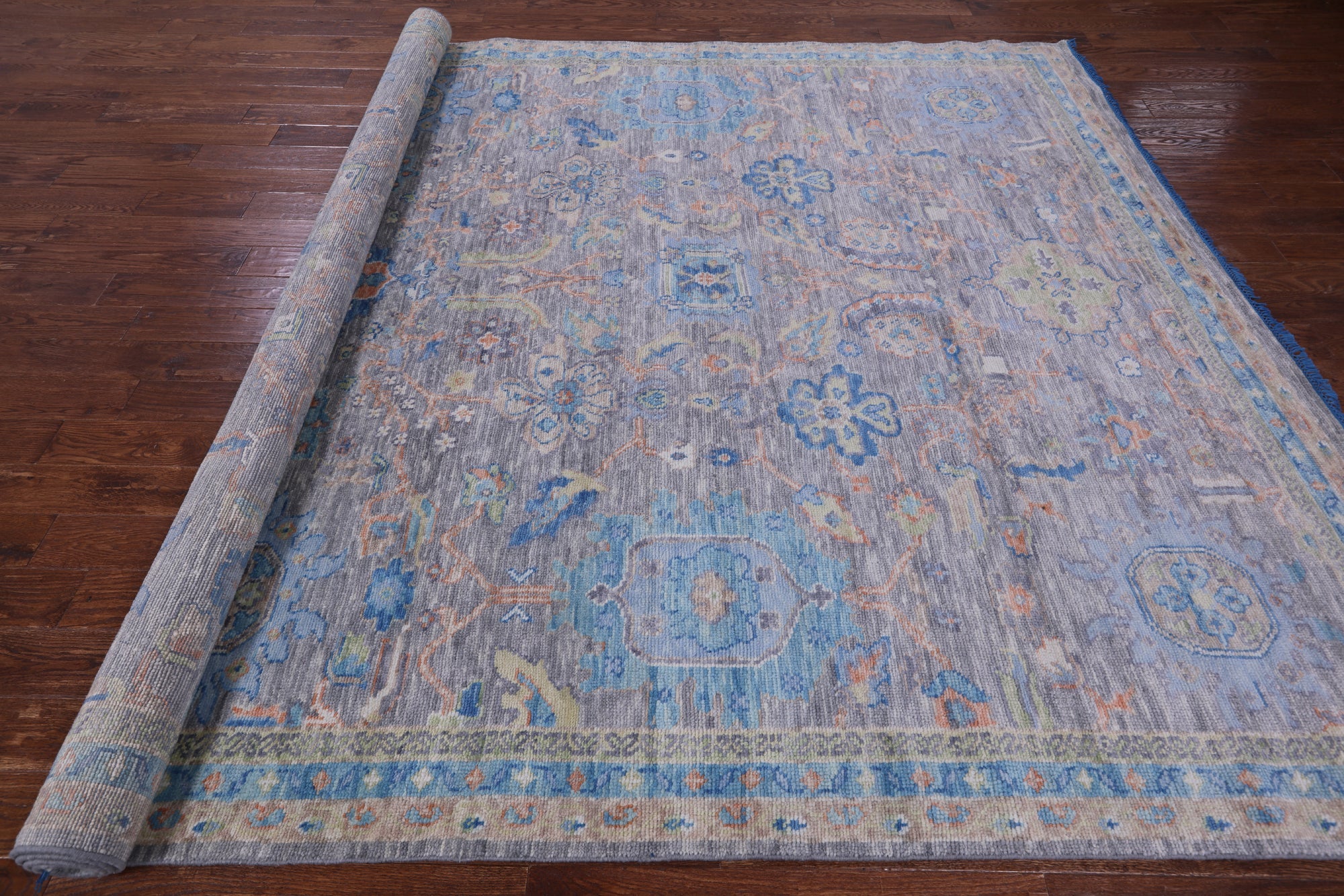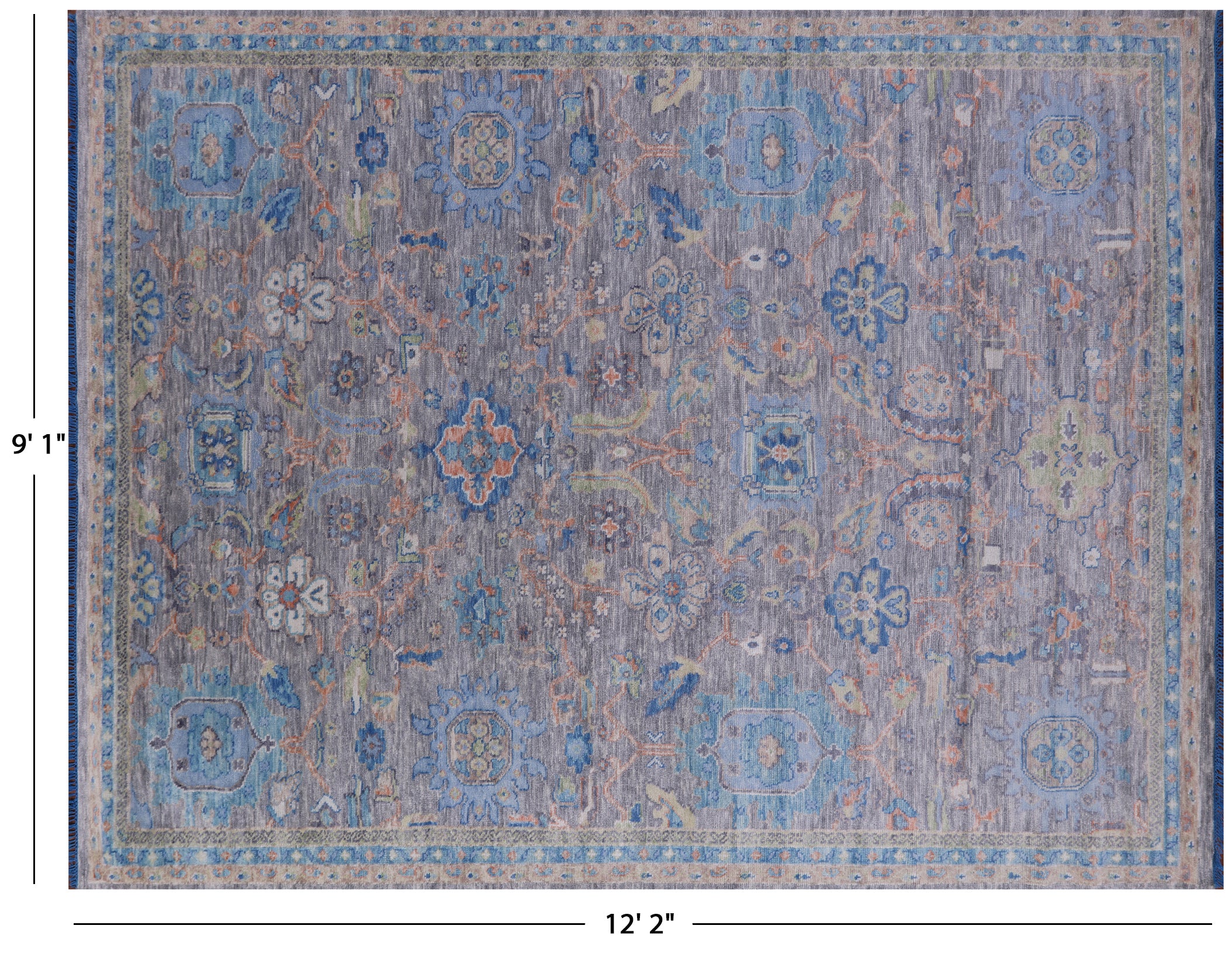 Grey 9' 1" X 12' 2" Hand Knotted Turkish Angora Oushak Wool Rug - Q13297 is backordered and will ship as soon as it is back in stock.