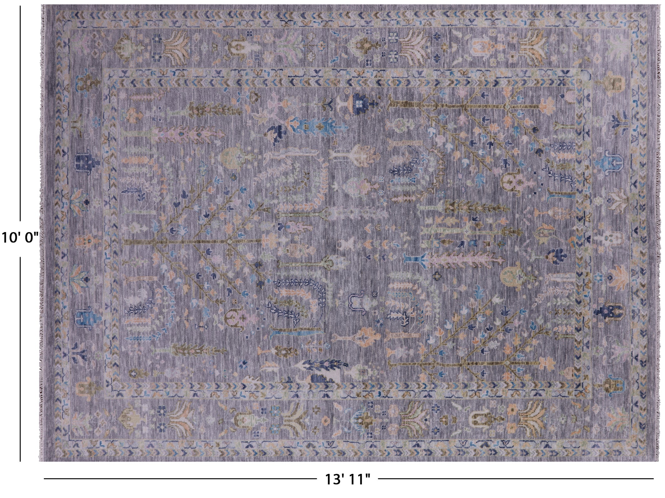 Grey 10' 0" X 13' 11" Hand Knotted Turkish Angora Oushak Wool Rug - Q13323