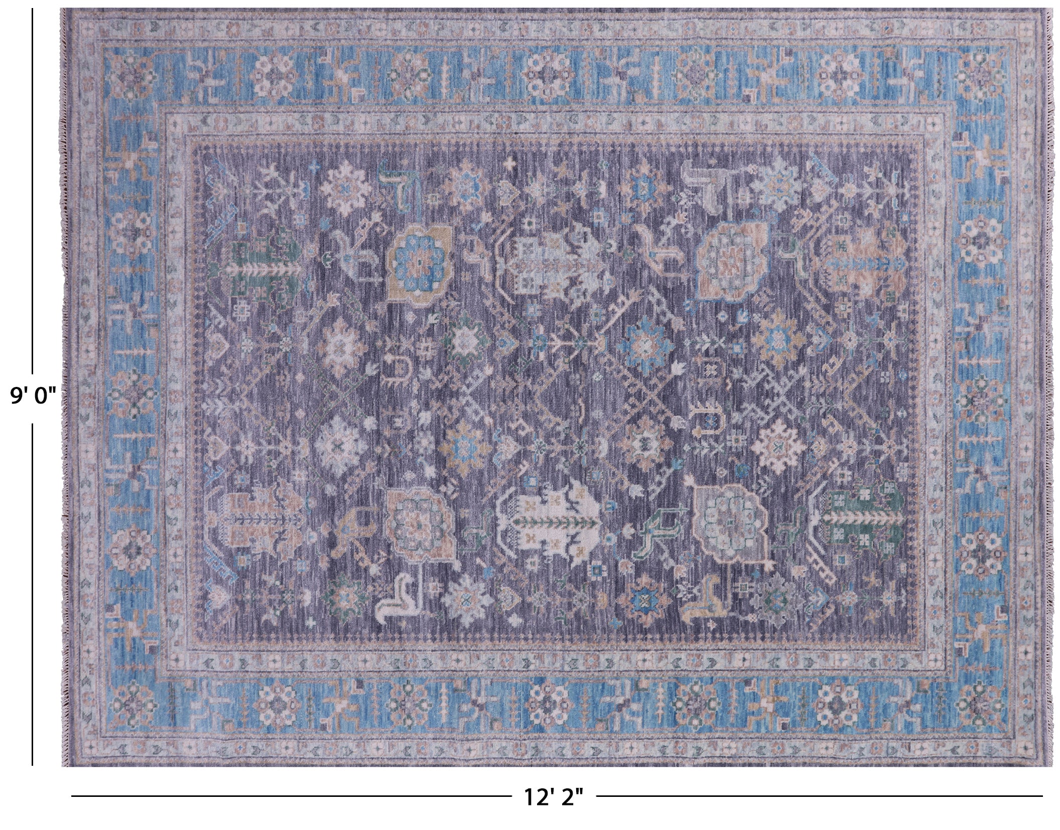 Grey Hand Knotted Turkish Angora Oushak Wool Rug 9' 0" X 12' 2" - Q13441
