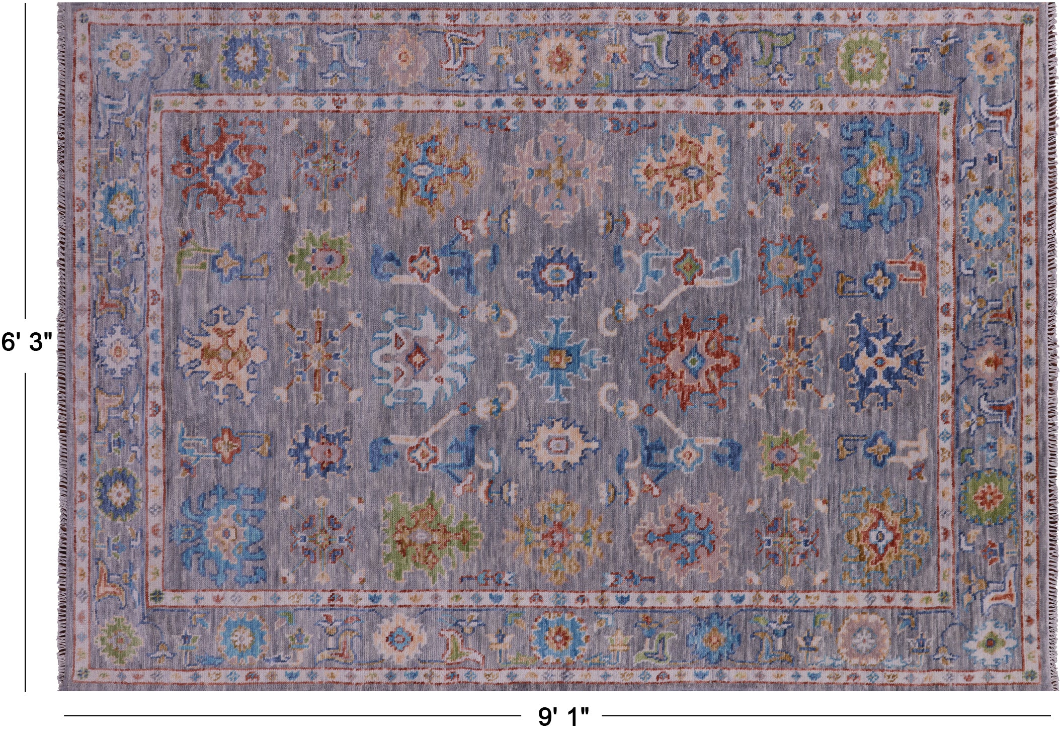 Grey Hand Knotted Turkish Angora Oushak Wool Rug 6' 3" X 9' 1" - Q15640