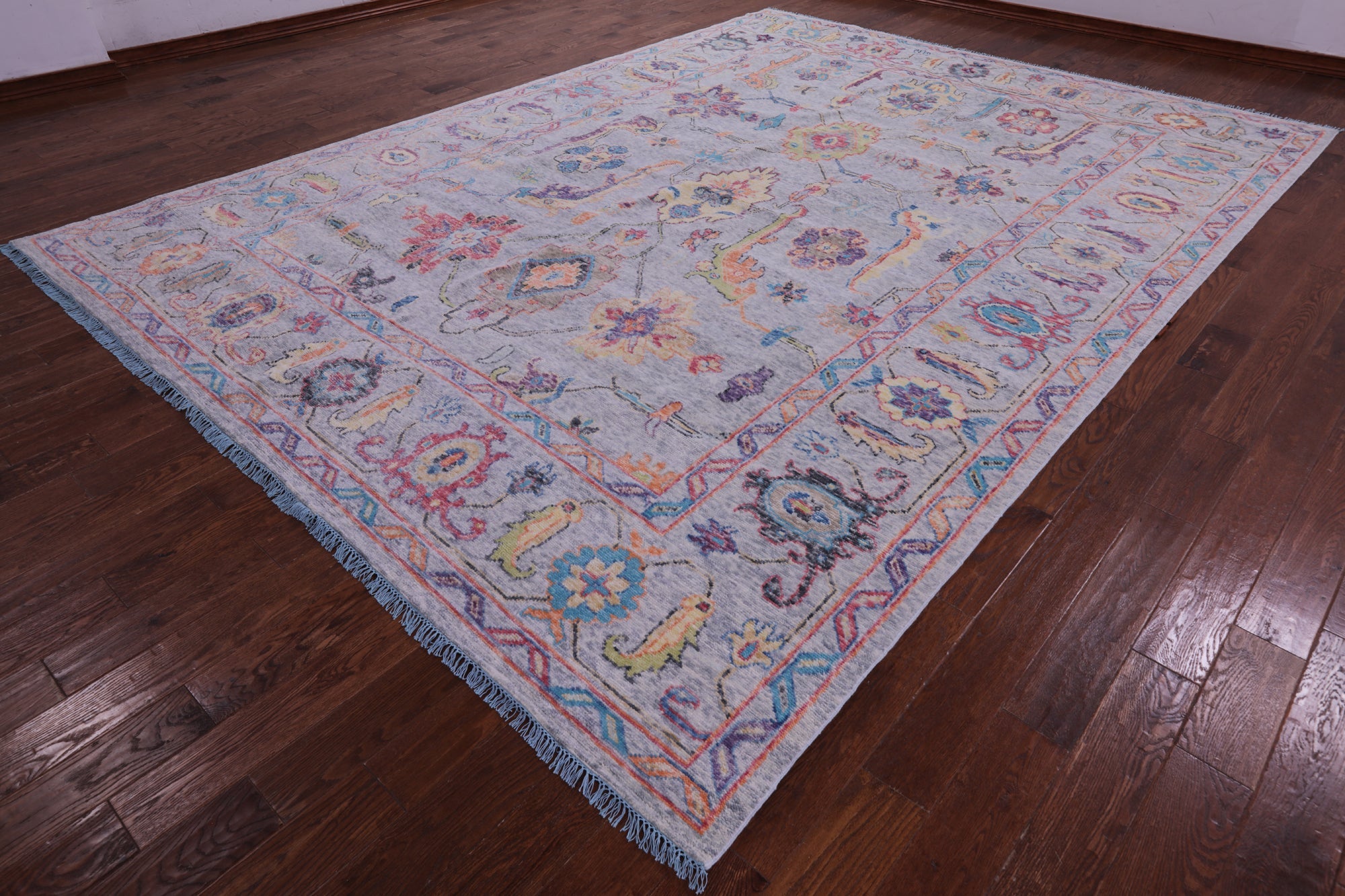 Grey Hand-Knotted Turkish Angora Oushak Wool Rug 9' 11" X 13' 7" - Q18896 is backordered and will ship as soon as it is back in stock.