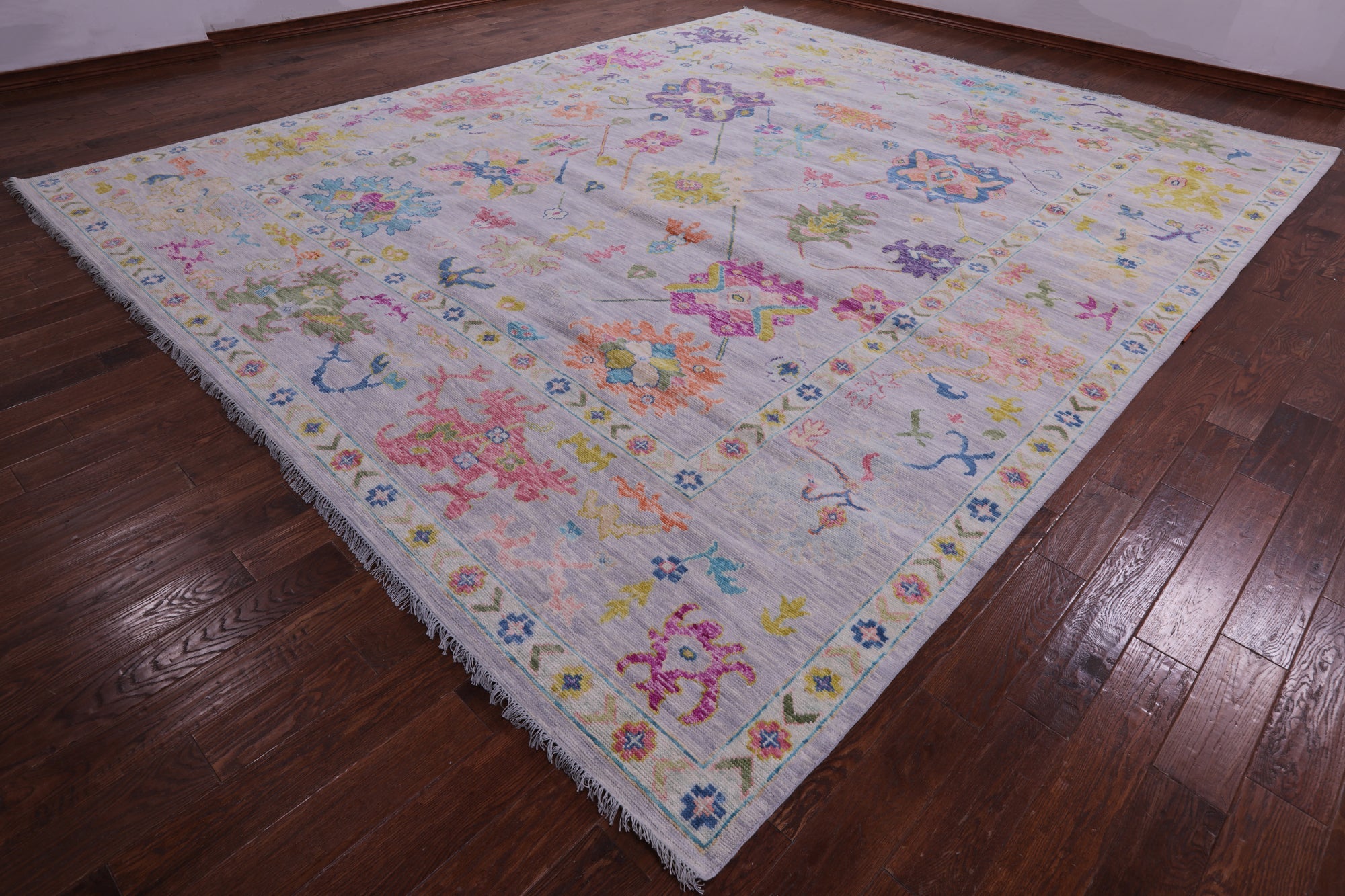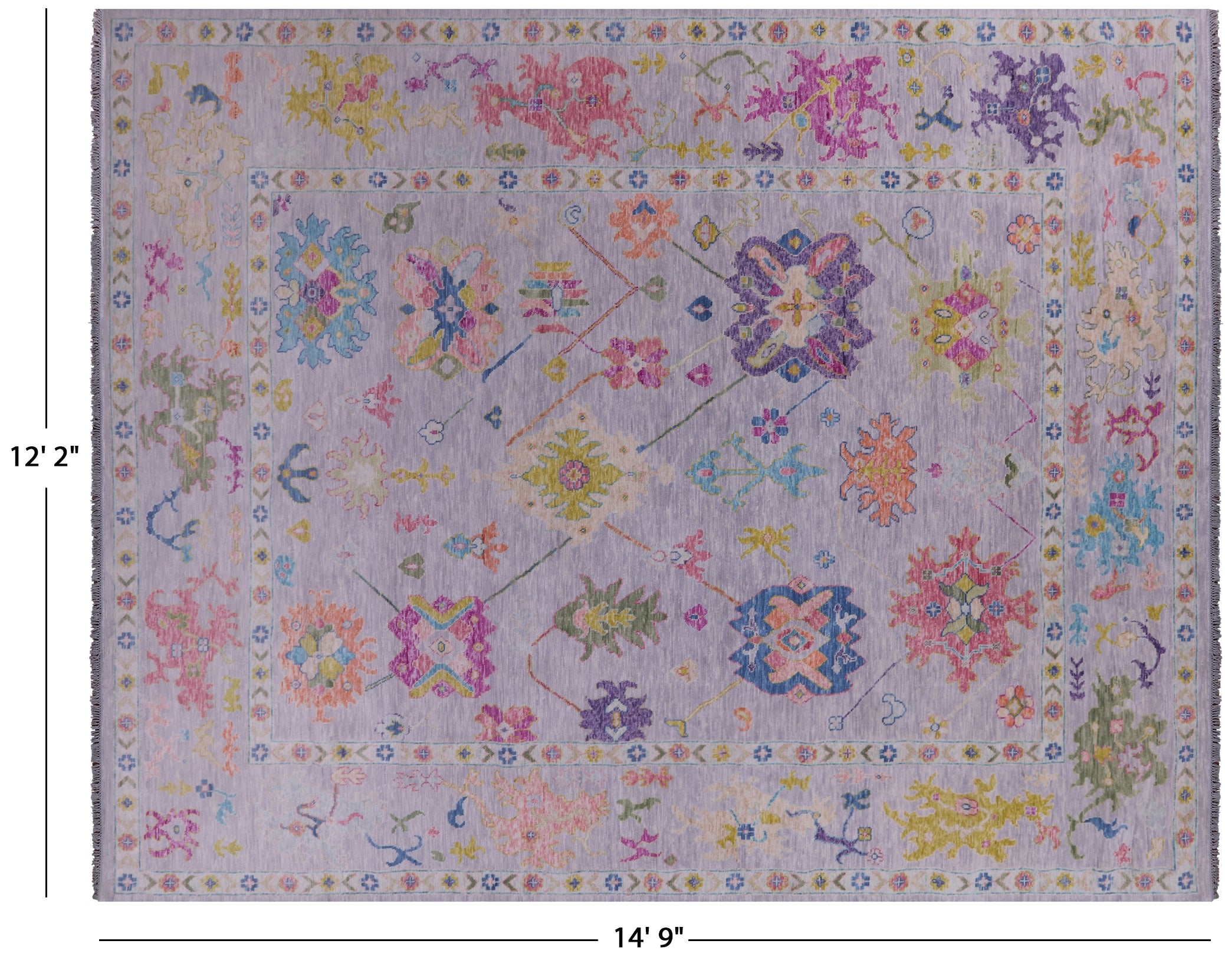 Grey Hand-Knotted Turkish Angora Oushak Wool Rug 12' 2" X 14' 9" - Q19741 is backordered and will ship as soon as it is back in stock.