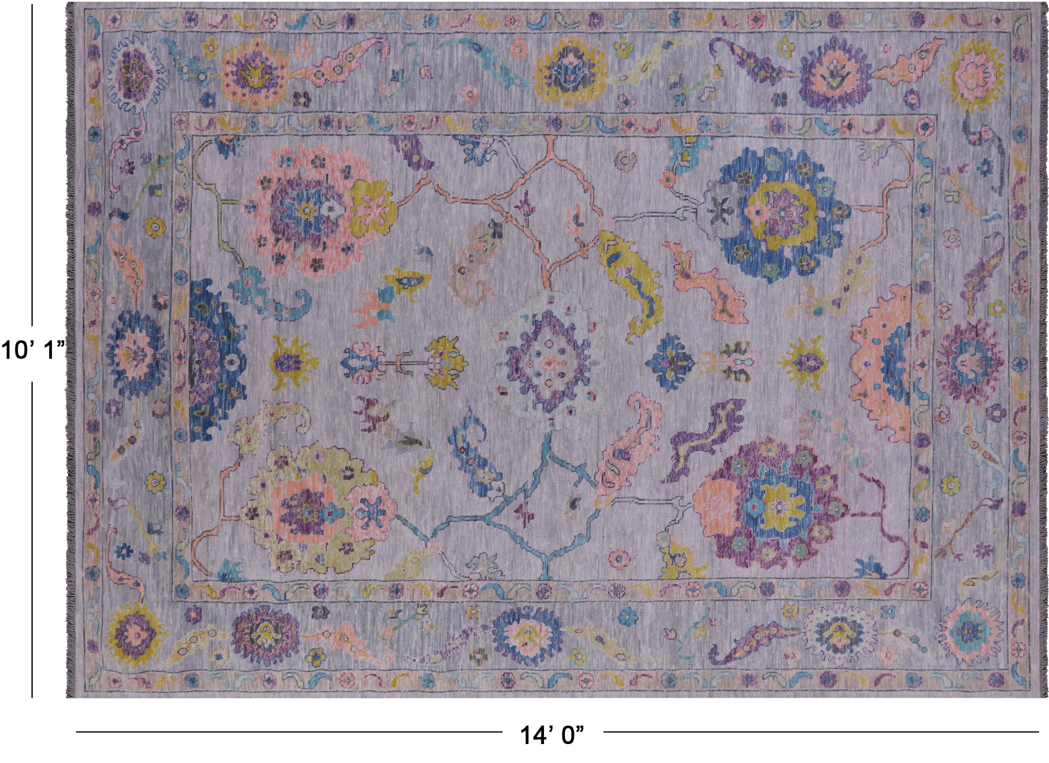 Grey Hand Knotted Turkish Angora Oushak Wool Rug 10' 1" X 14' 0" - Q19778