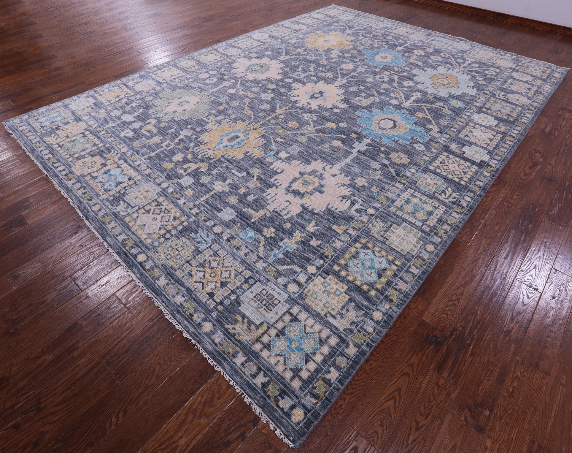 Grey Hand Knotted Turkish Angora Oushak Wool Rug 10' 2" X 14' 1" - Q19939