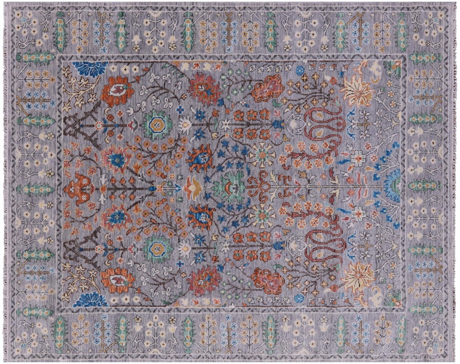 Grey 7' 11" X 9' 10" Hand-Knotted Turkish Angora Oushak Wool Rug - Q19992