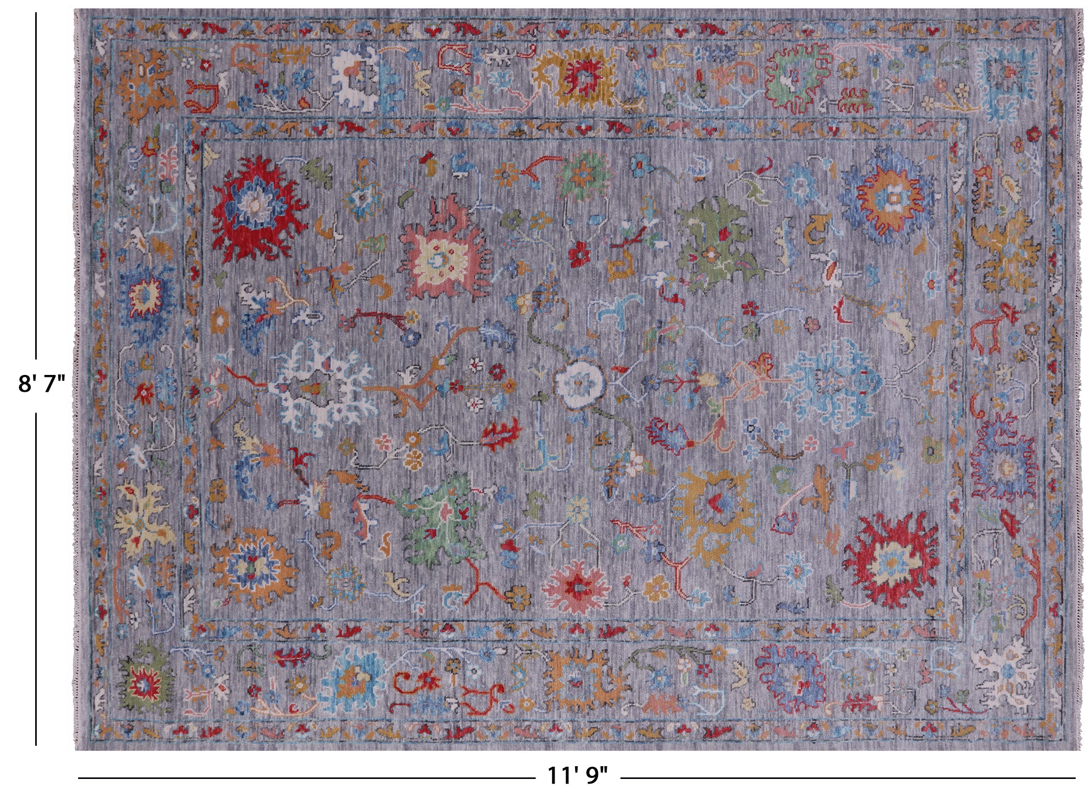 Grey 8' 7" X 11' 9" Hand Knotted Turkish Angora Oushak Wool Rug - Q19993