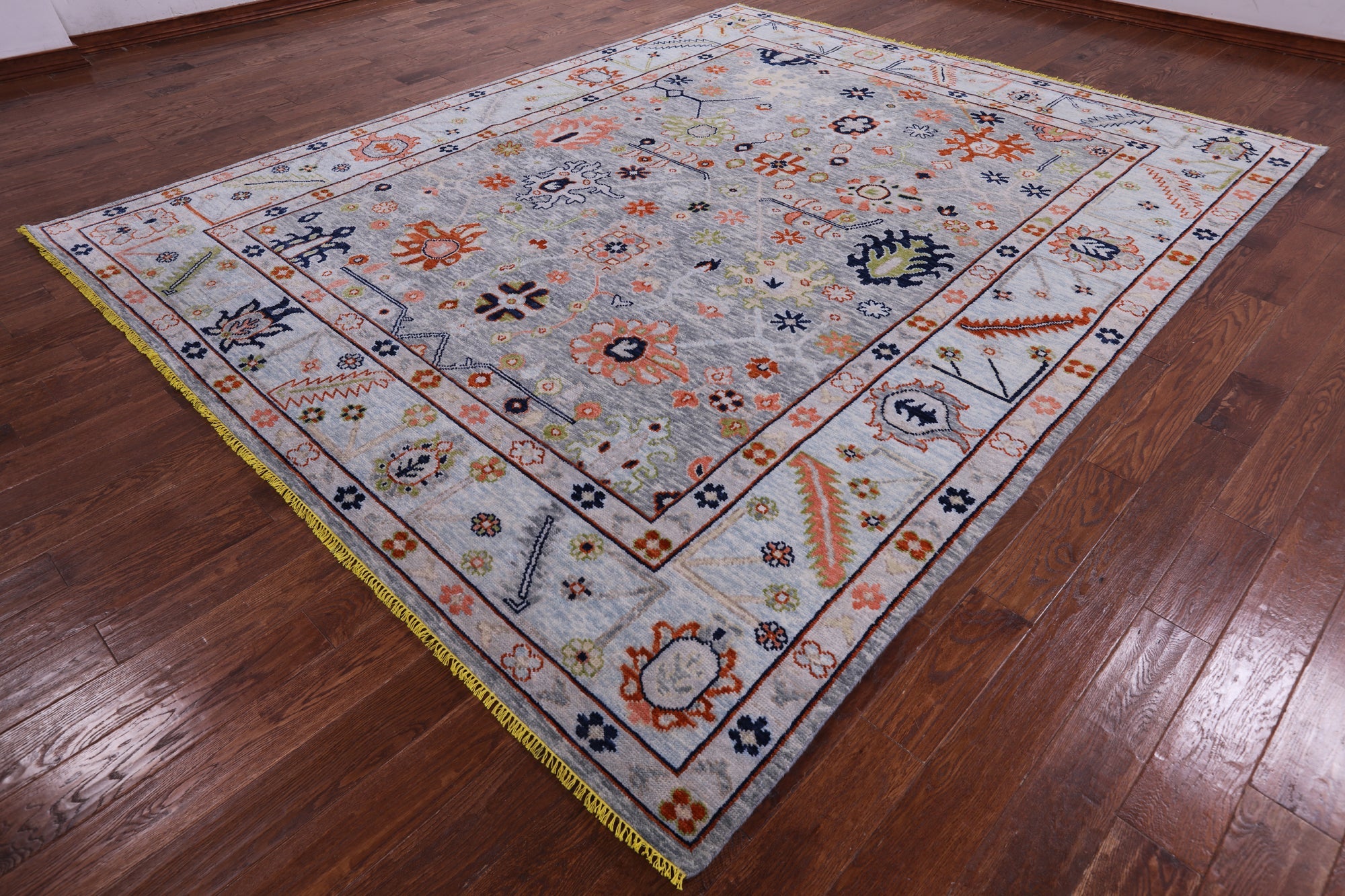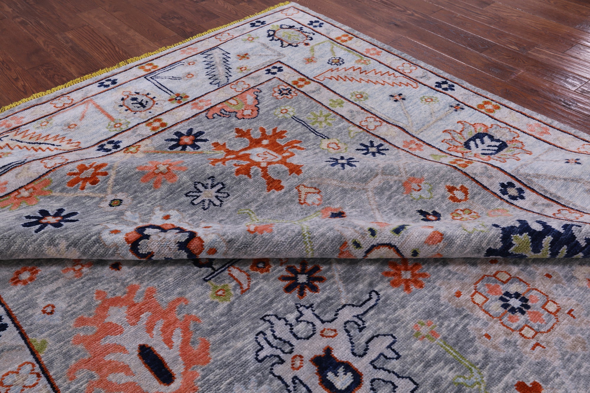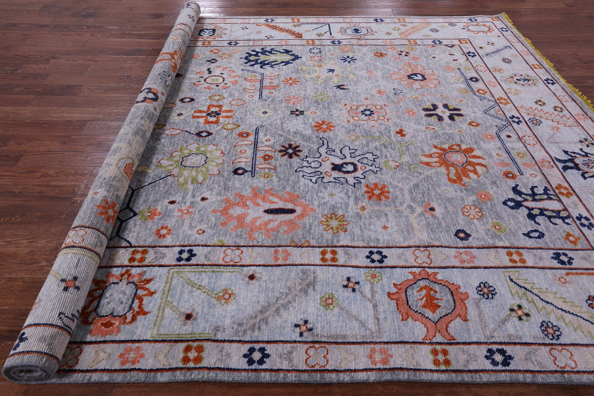 Grey Hand-Knotted Turkish Angora Oushak Wool Rug 9' 5" X 11' 7" - Q8829 is backordered and will ship as soon as it is back in stock.