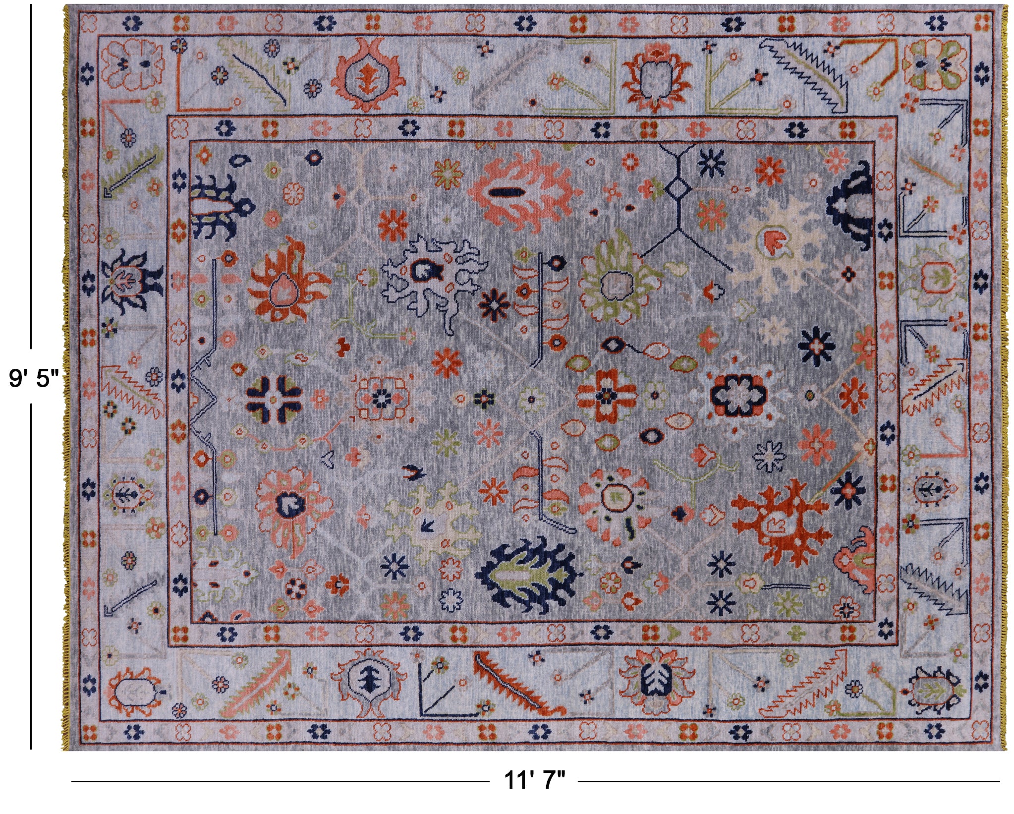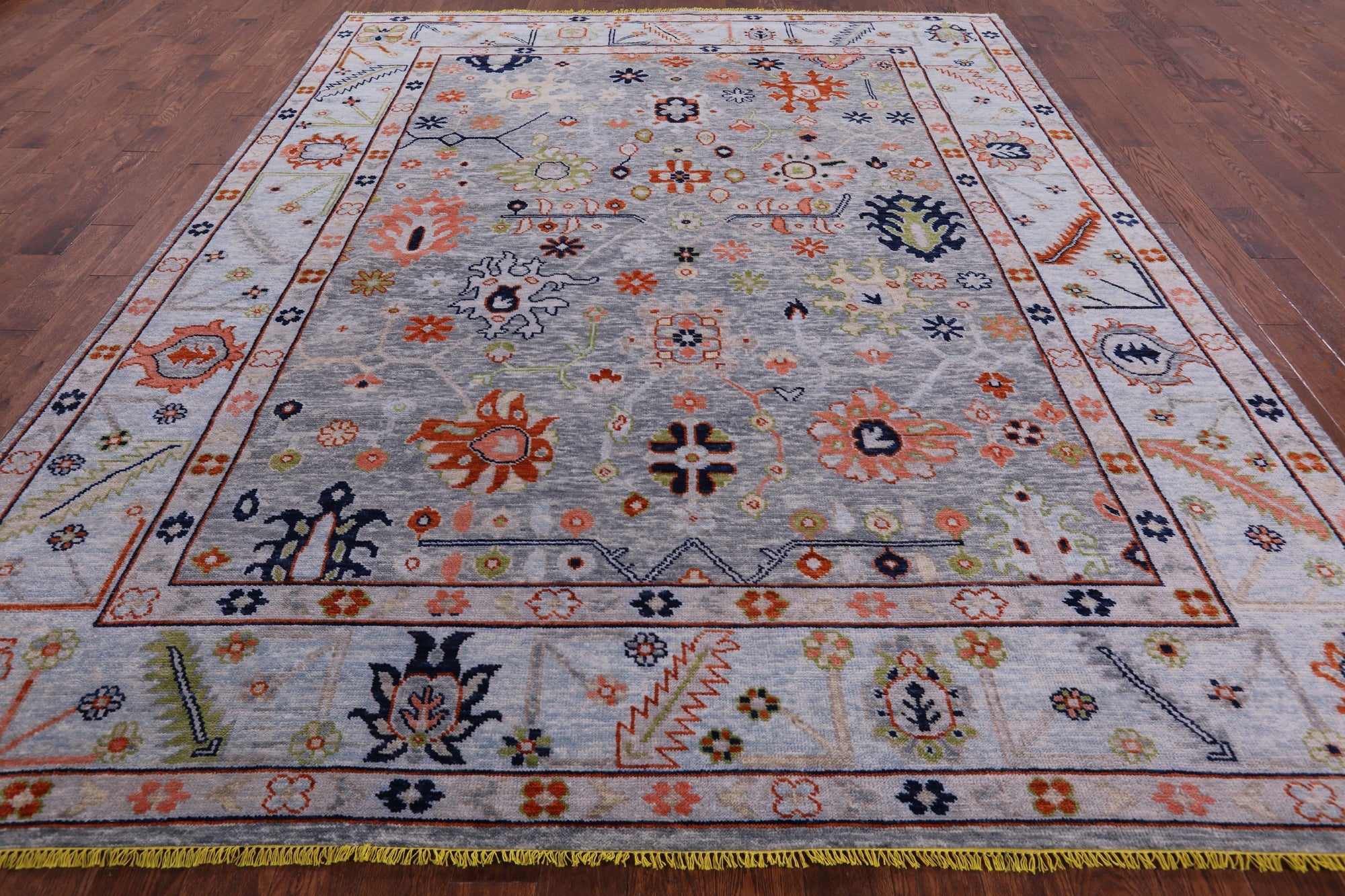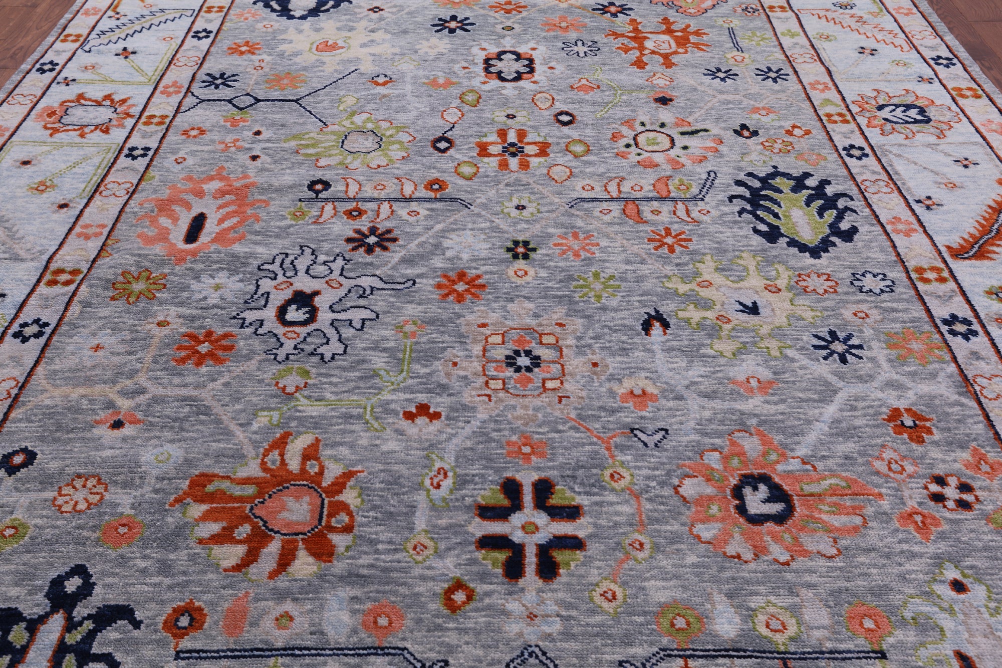 Grey Hand-Knotted Turkish Angora Oushak Wool Rug 9' 5" X 11' 7" - Q8829 is backordered and will ship as soon as it is back in stock.