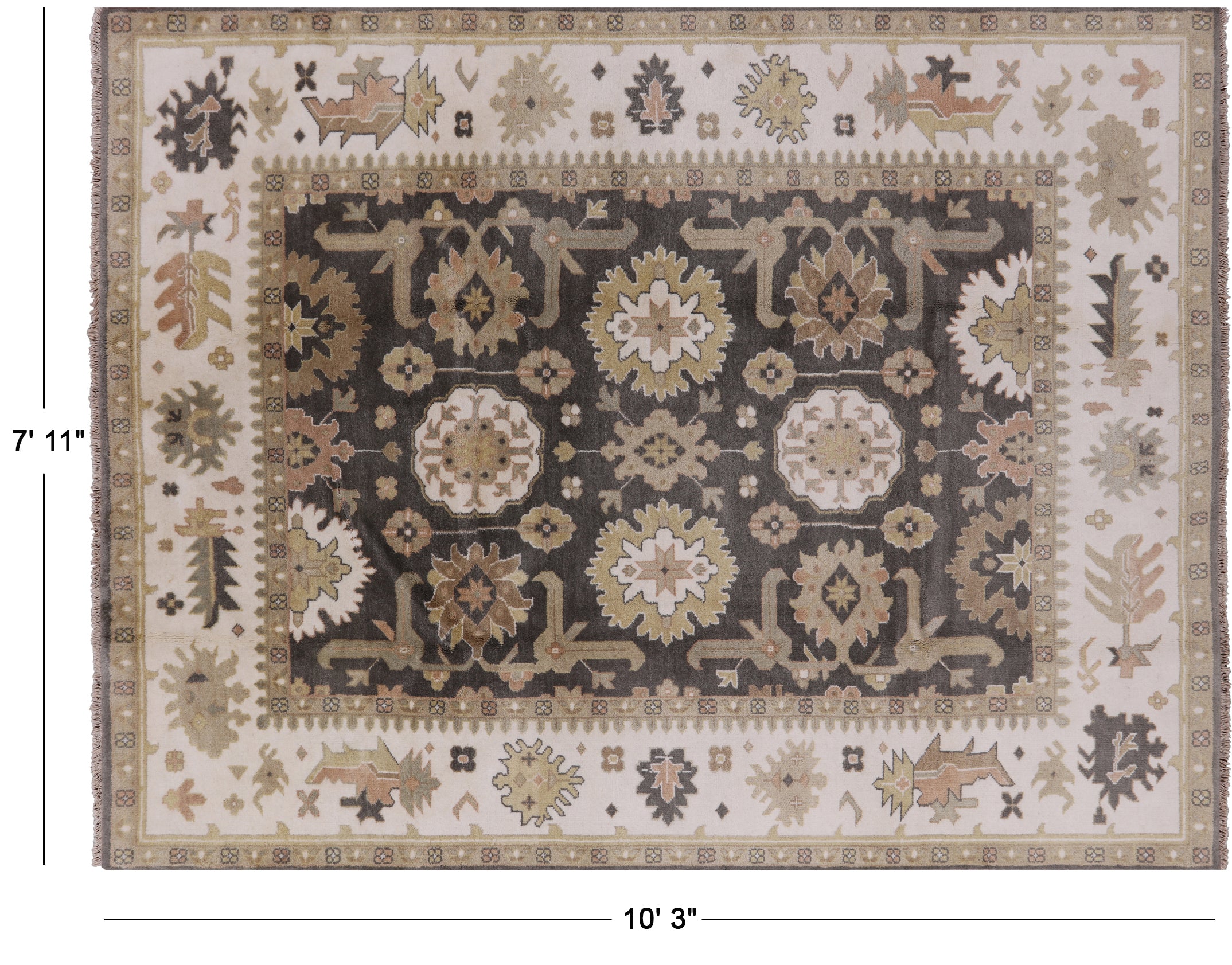 Grey 7' 11" X 10' 3" Hand Knotted Turkish Oushak Wool Rug - P8319