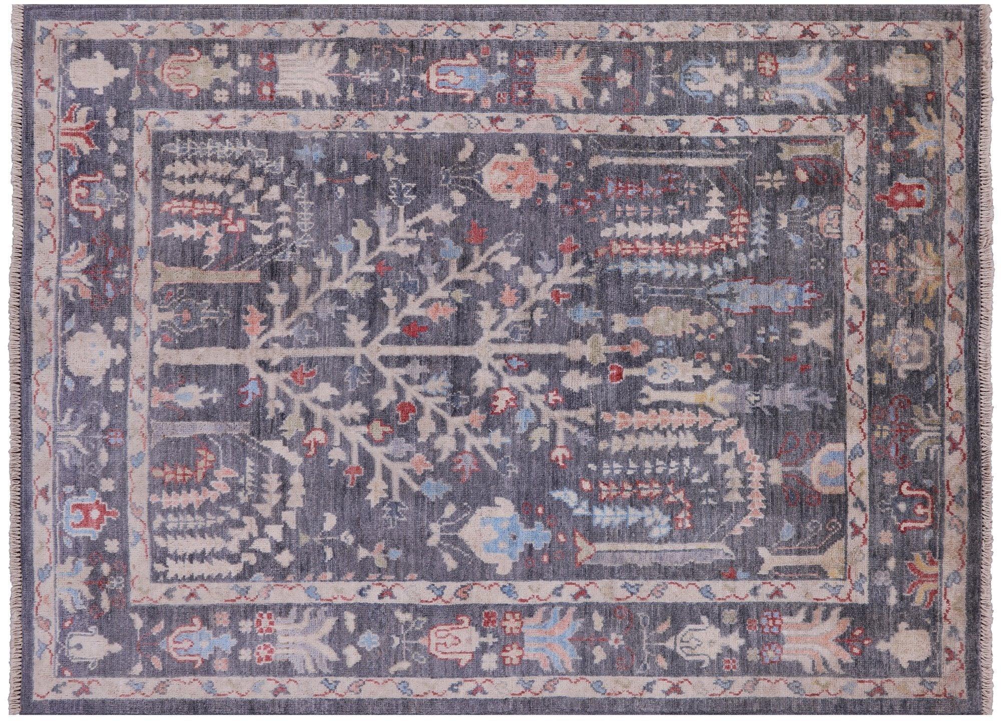 Grey Hand Knotted Turkish Oushak Wool Rug 4' 11" X 6' 7" - Q9598