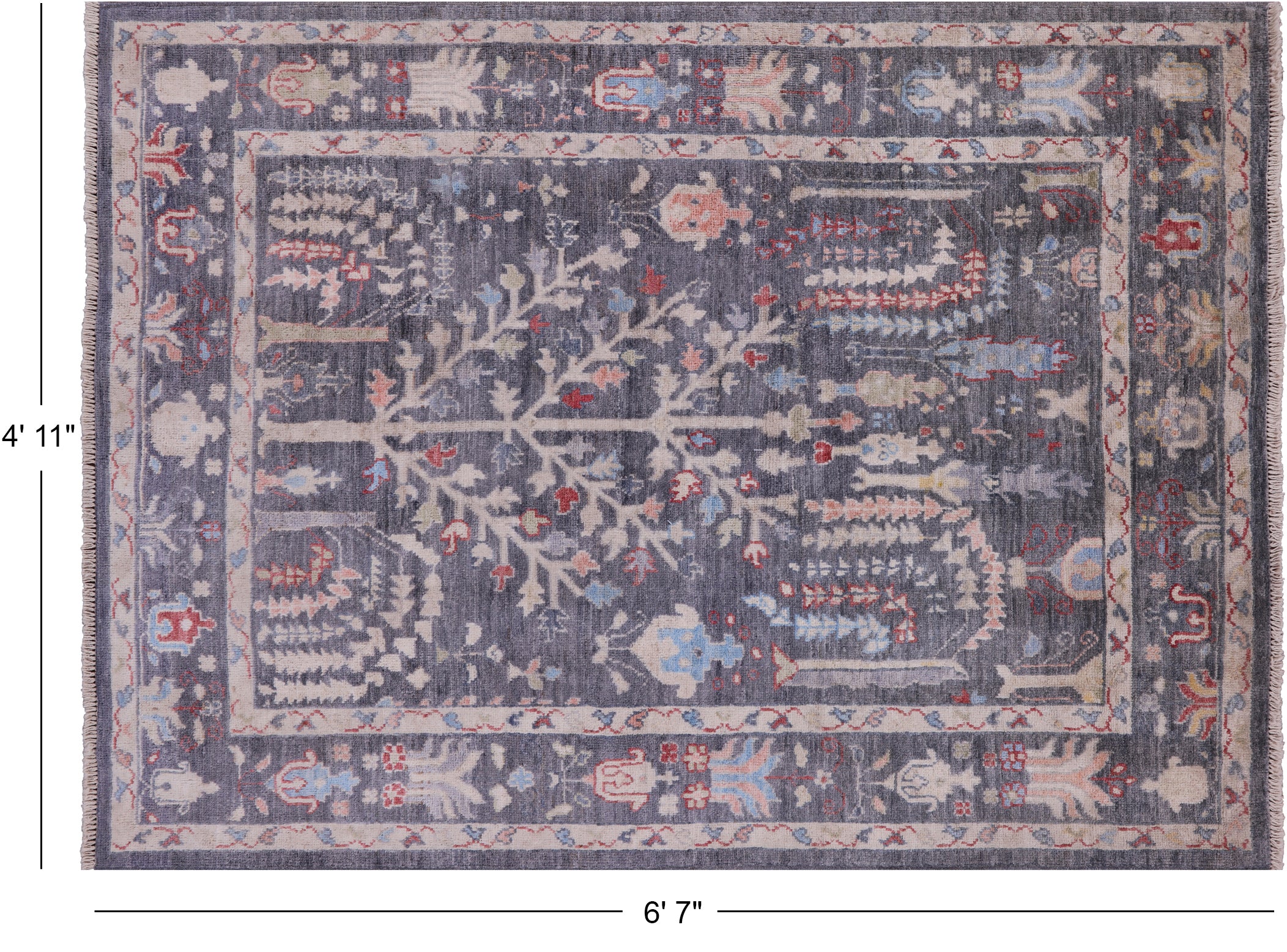 Grey Hand Knotted Turkish Oushak Wool Rug 4' 11" X 6' 7" - Q9598 is backordered and will ship as soon as it is back in stock.