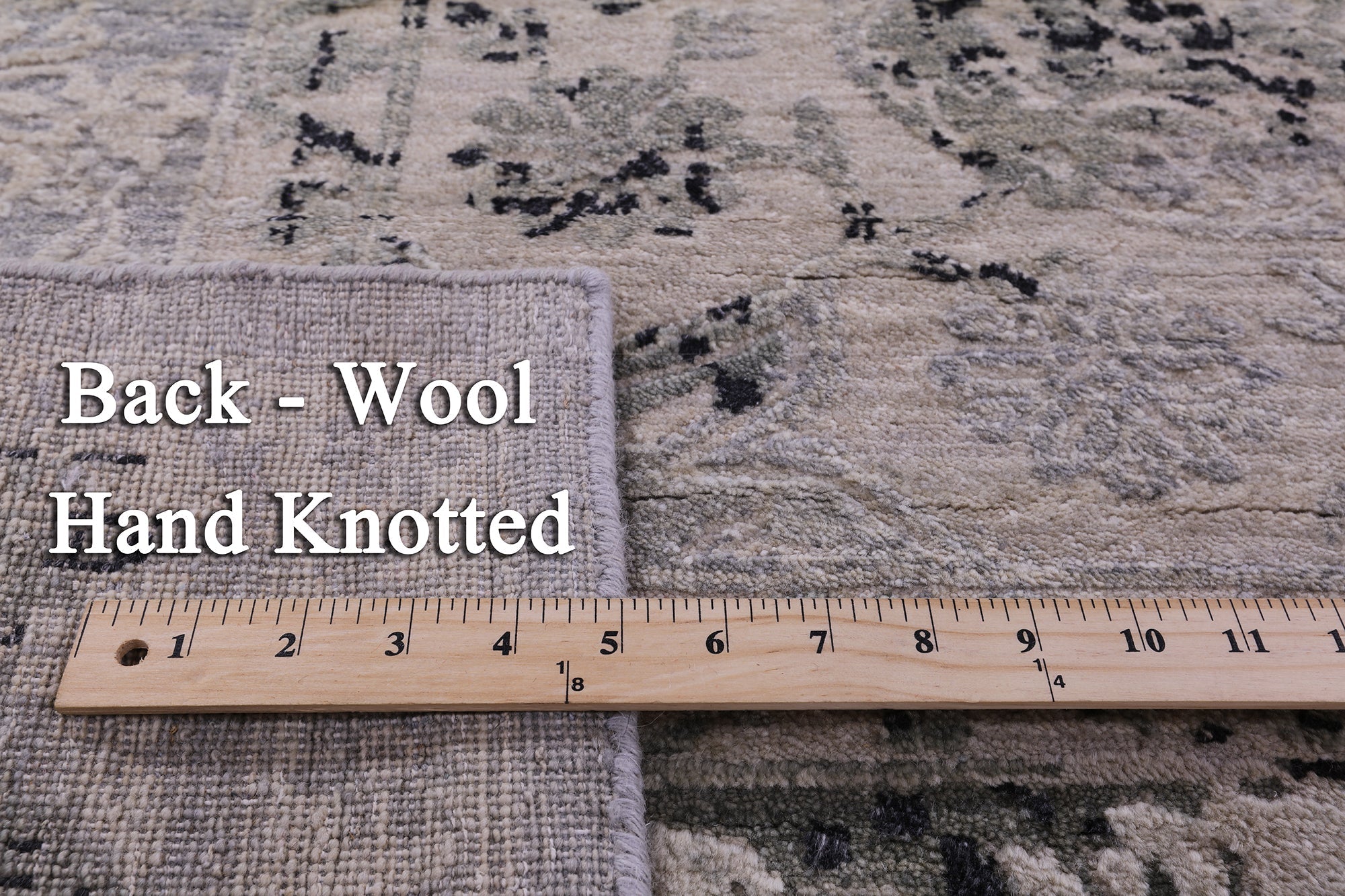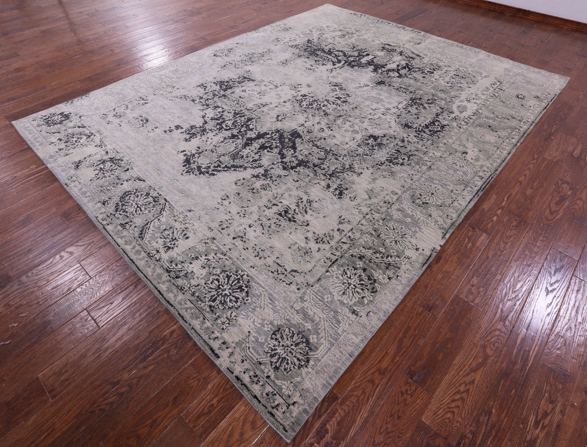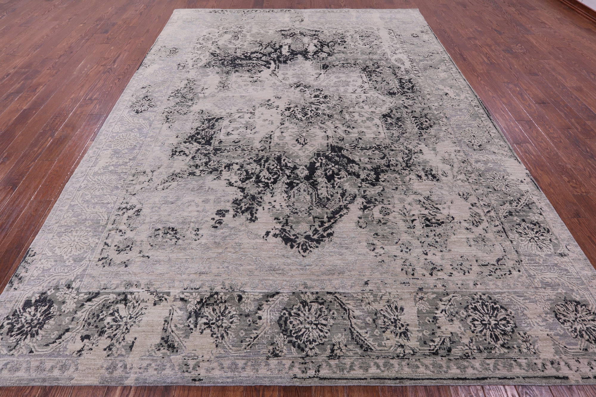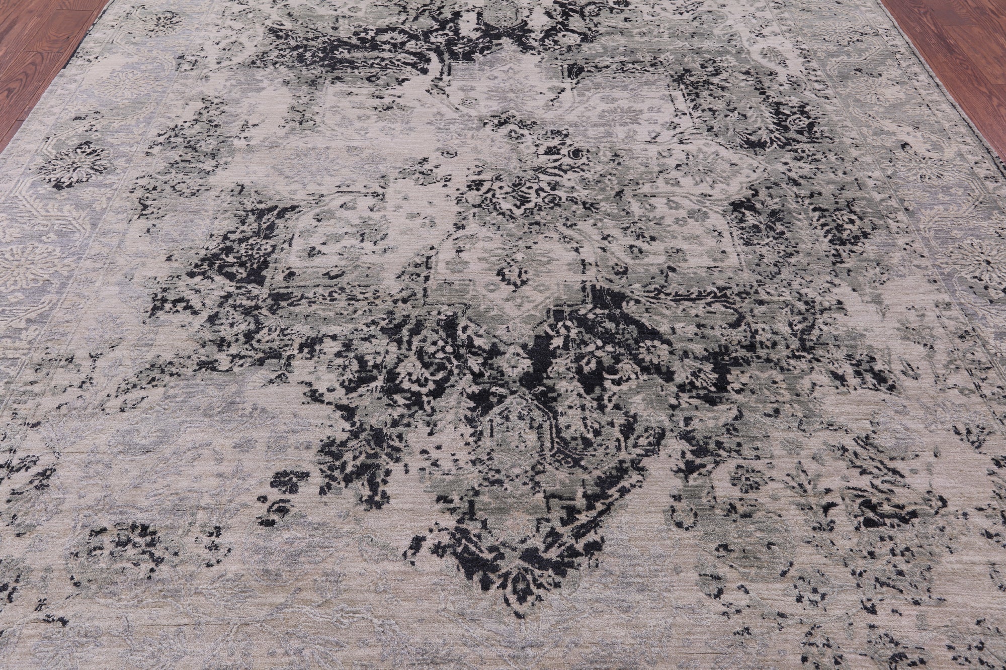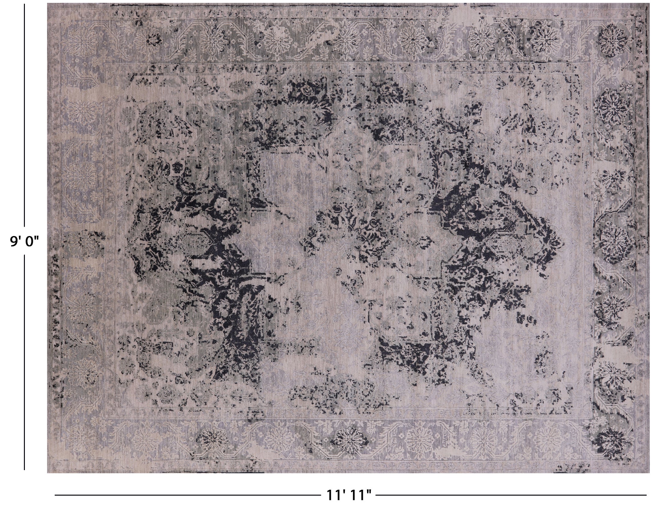 Grey Handmade Heriz Serapi Wool Rug 9' 0" X 11' 11" - Q21693