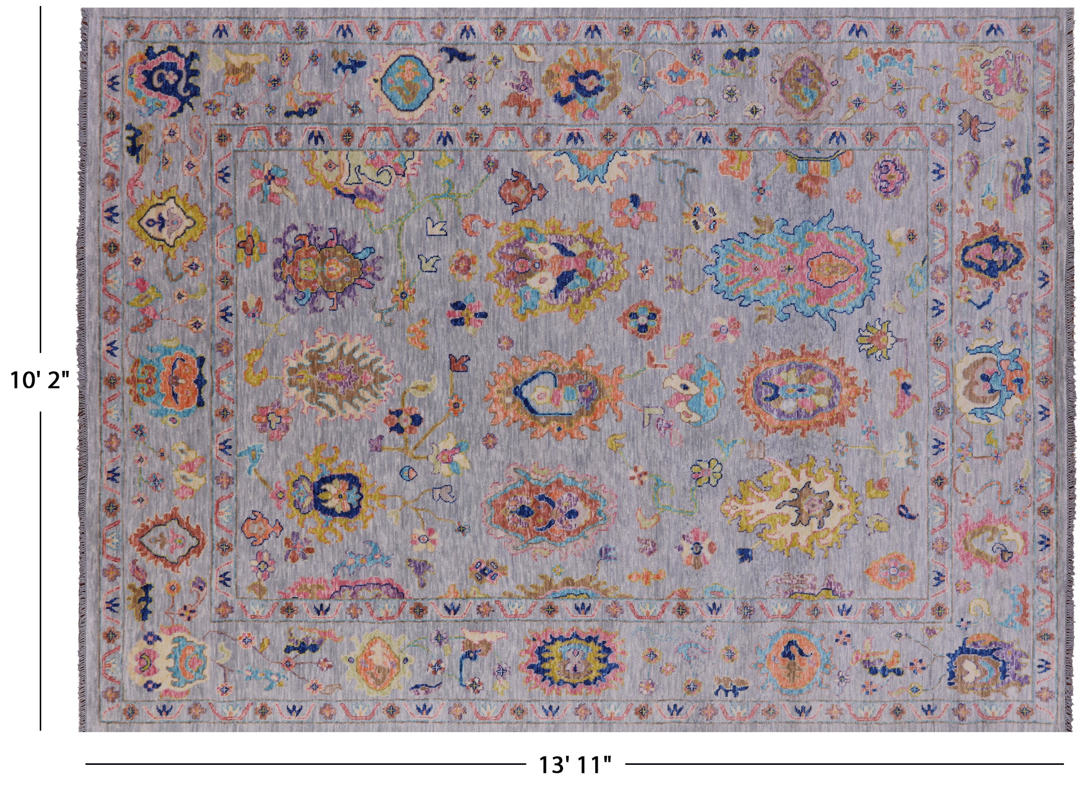 Grey 10' 2" X 13' 11" Handmade Turkish Angora Oushak Wool Rug - Q18963