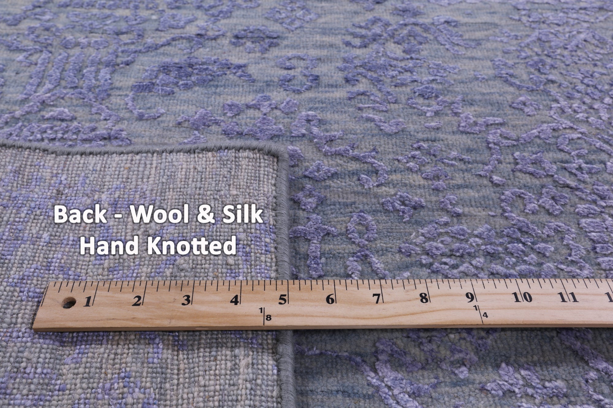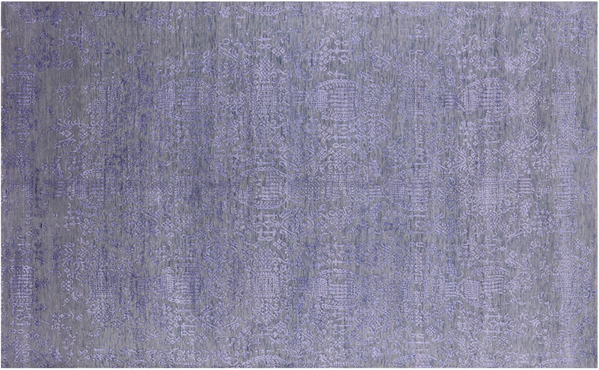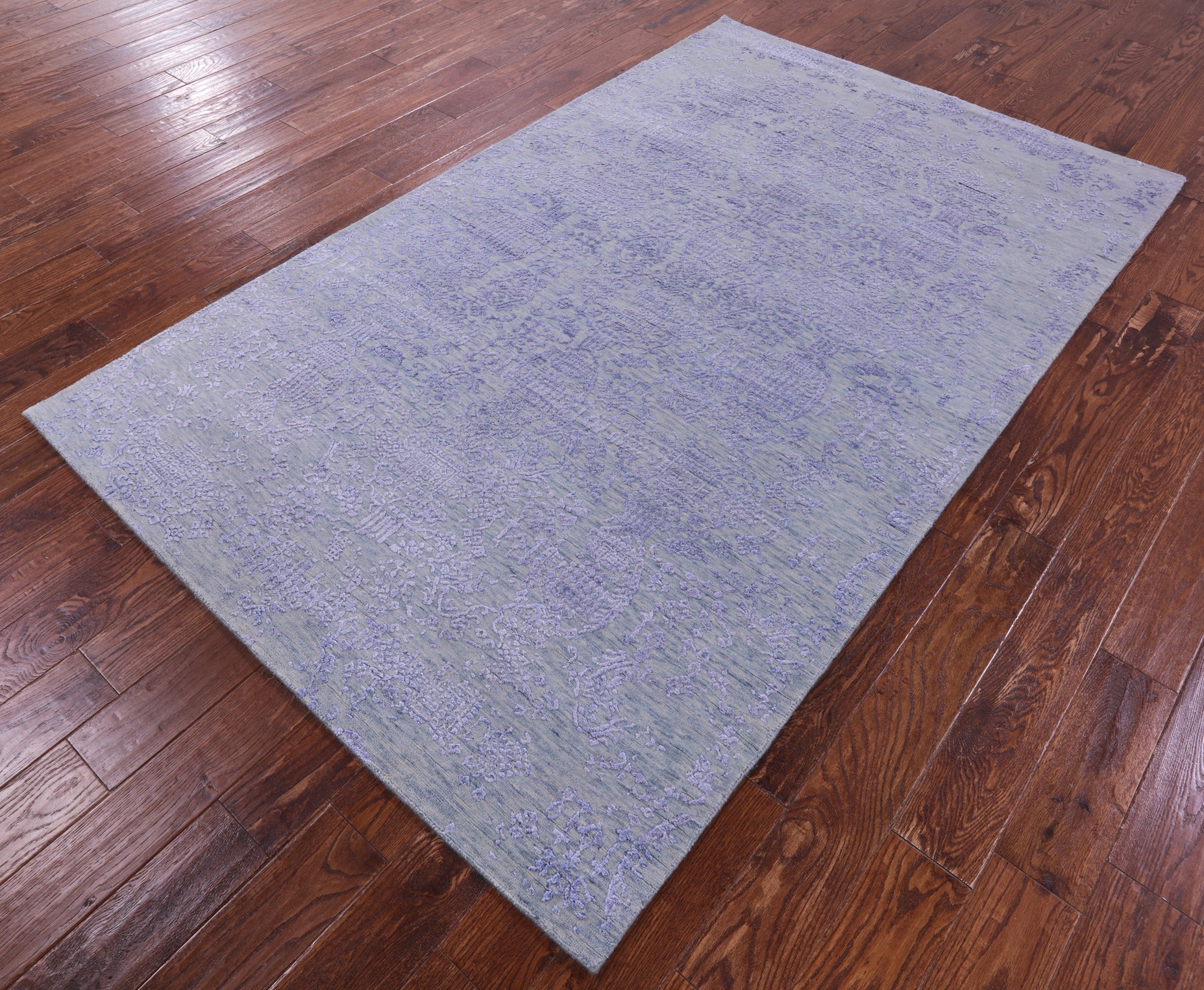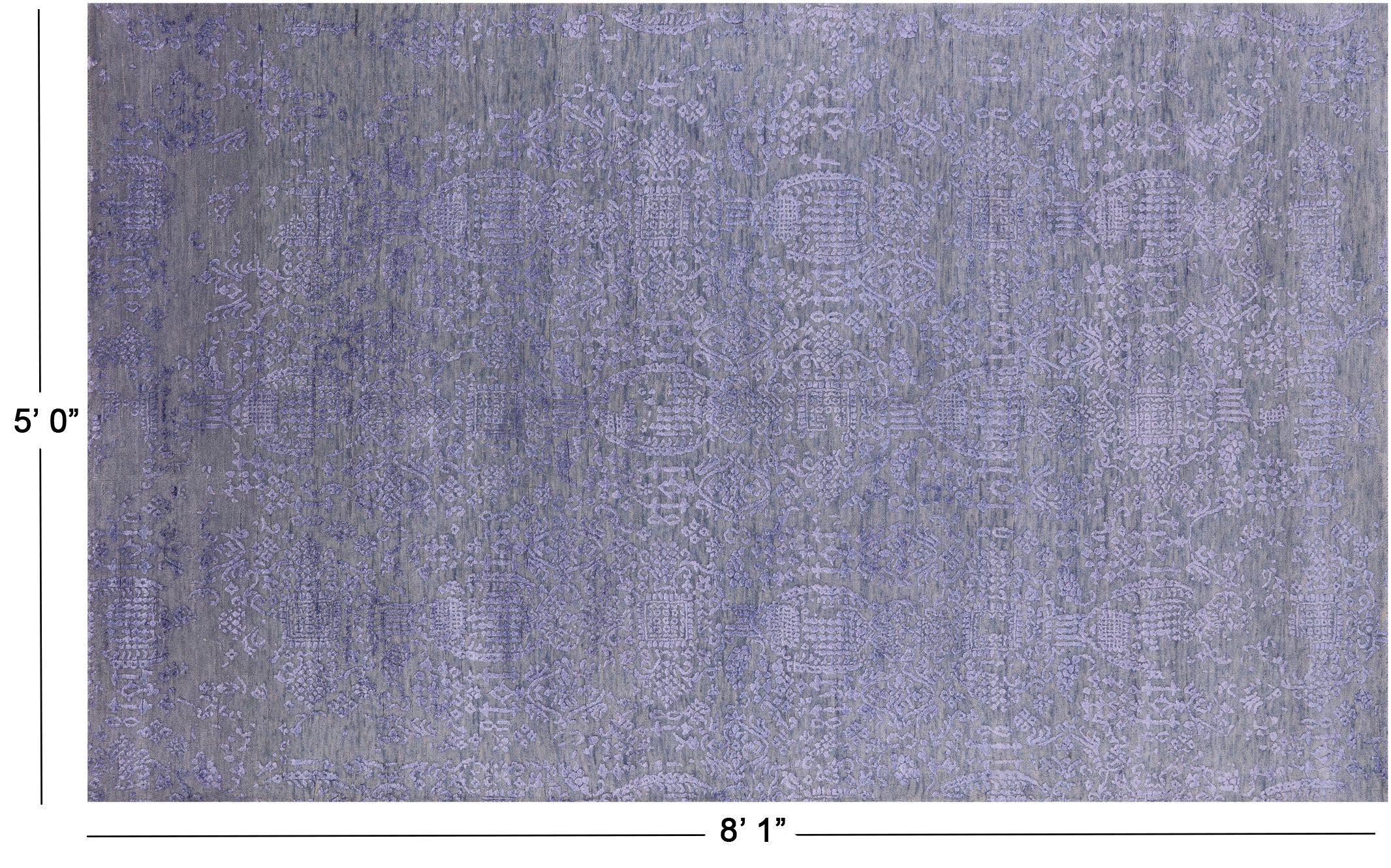 Grey 5' 0" X 8' 1" Modern Hand Knotted Wool & Silk Rug - Q21702