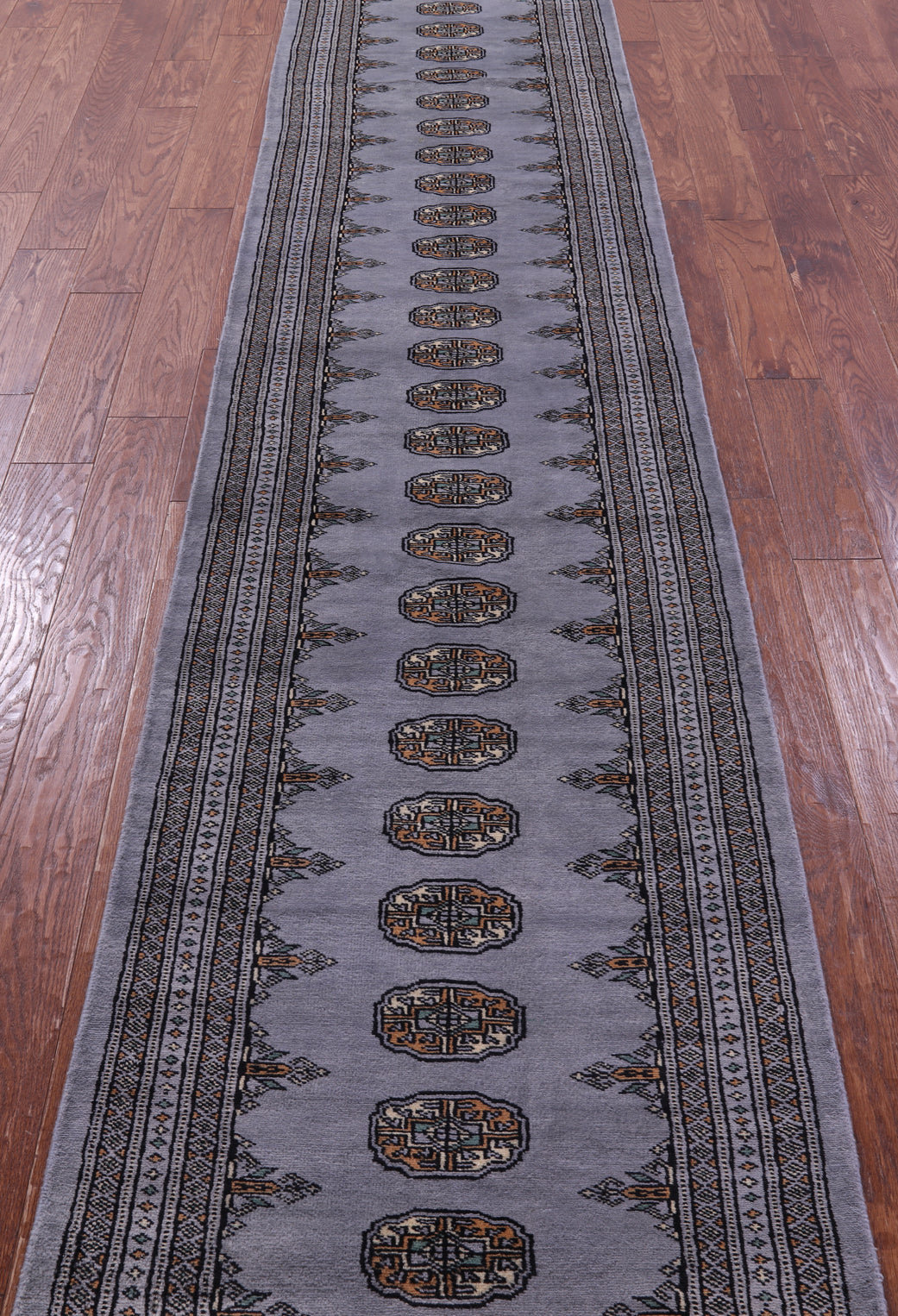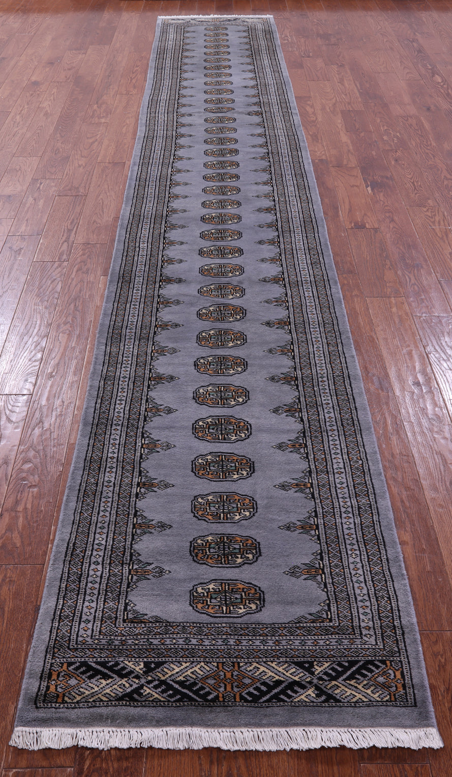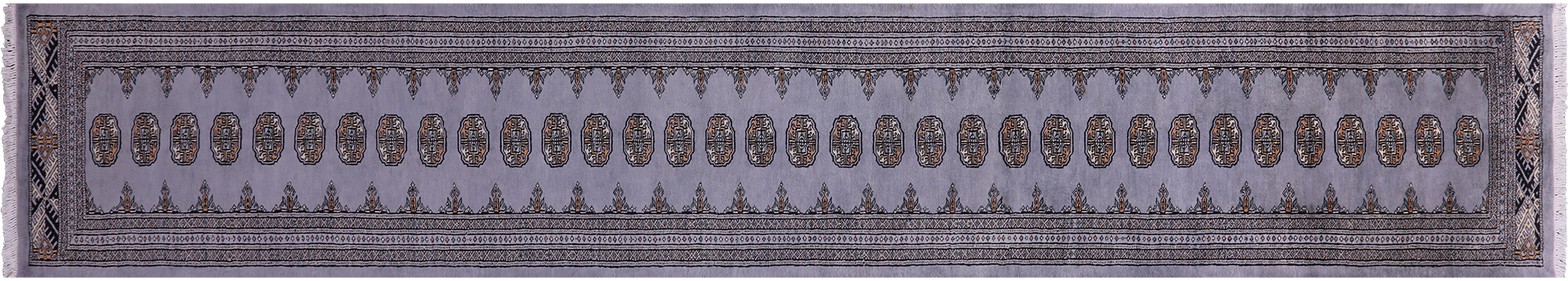 Grey 2' 7" X 15' 7" Runner Silky Bokhara Handmade Wool Rug - Q23758