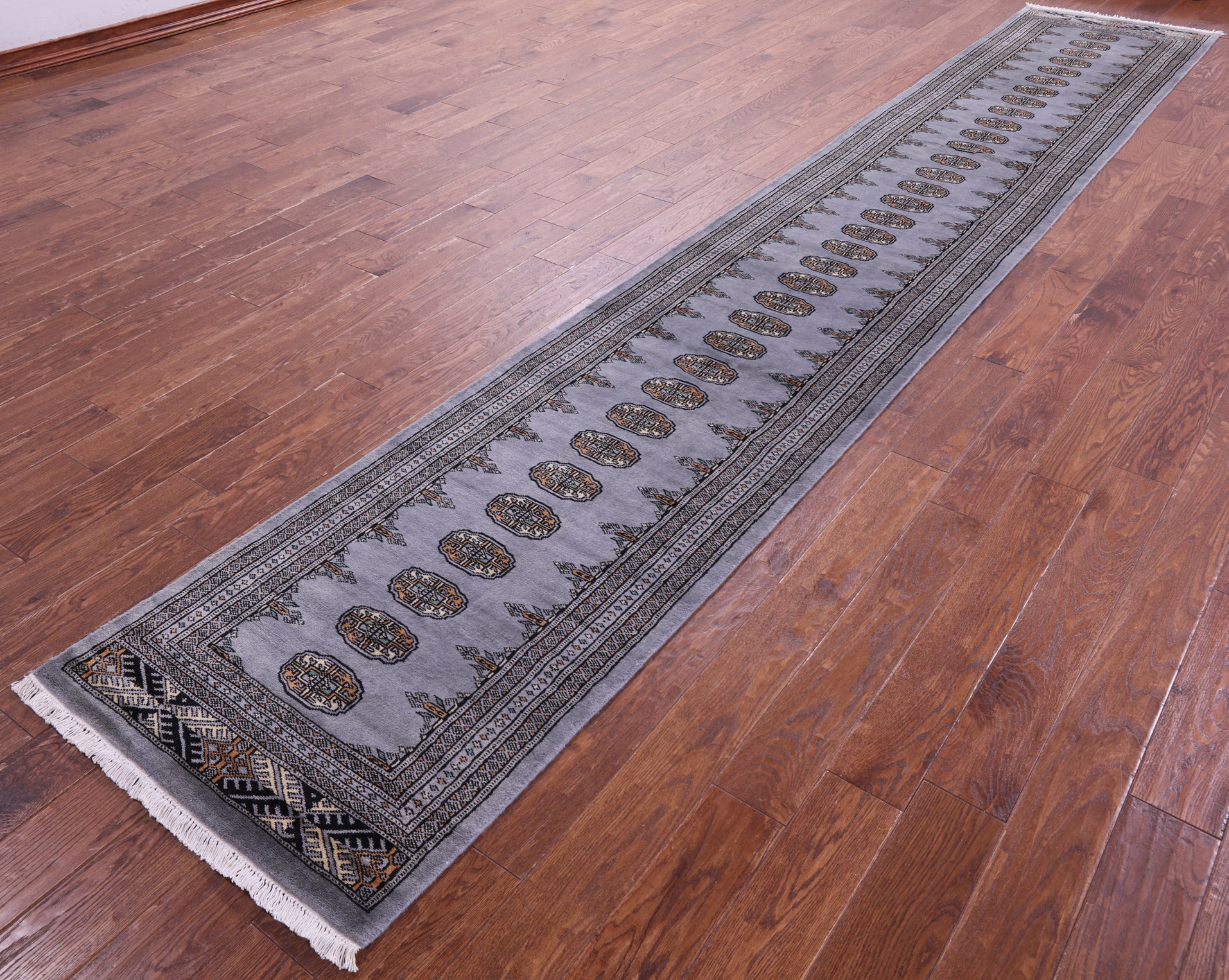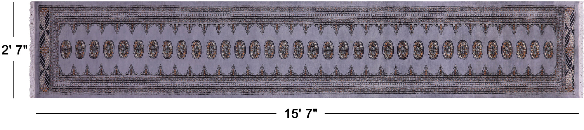 Grey 2' 7" X 15' 7" Runner Silky Bokhara Handmade Wool Rug - Q23758 is backordered and will ship as soon as it is back in stock.