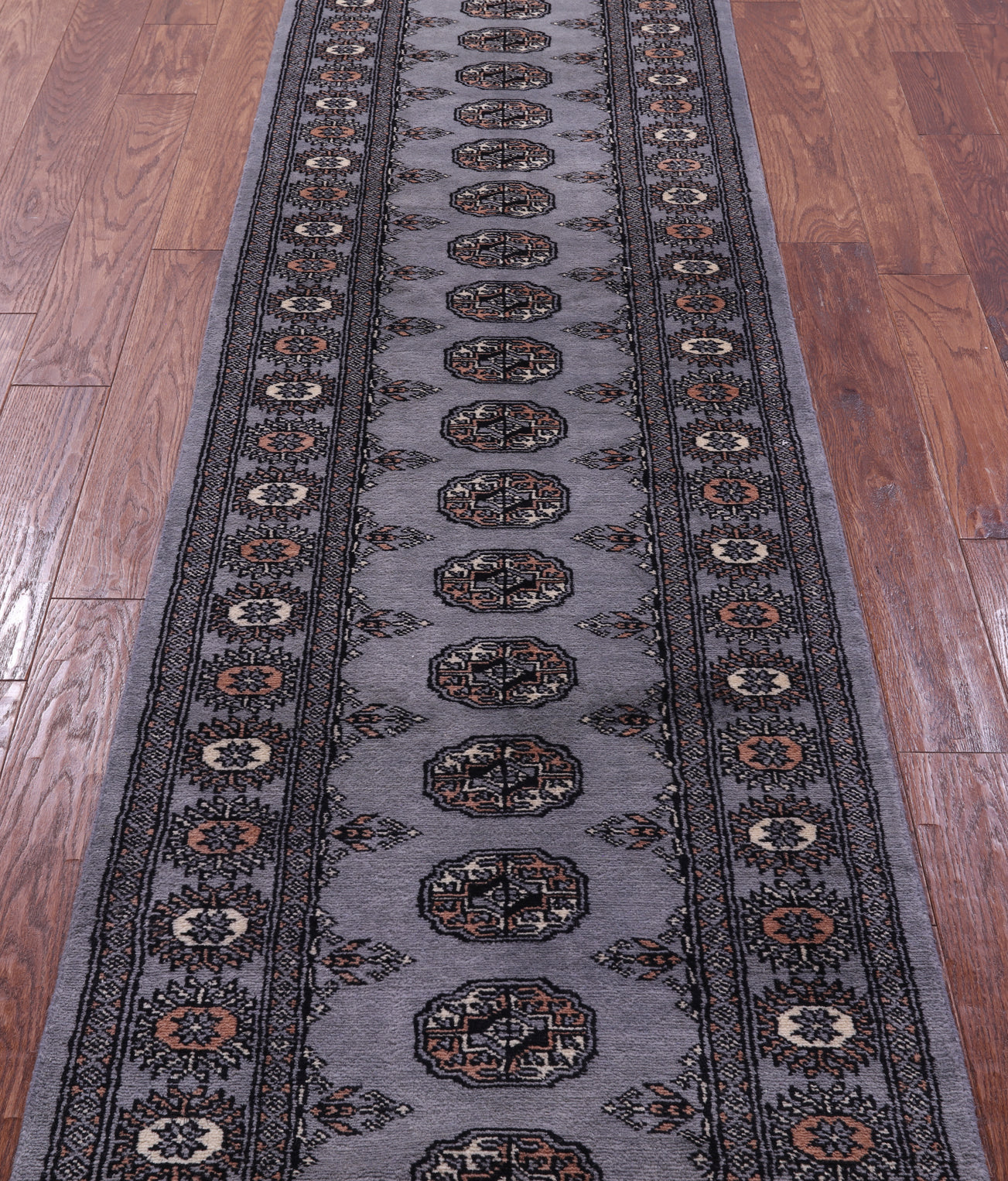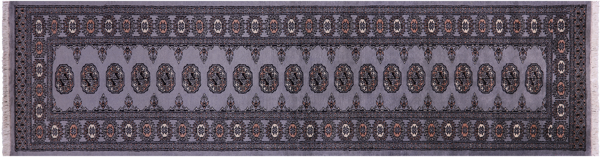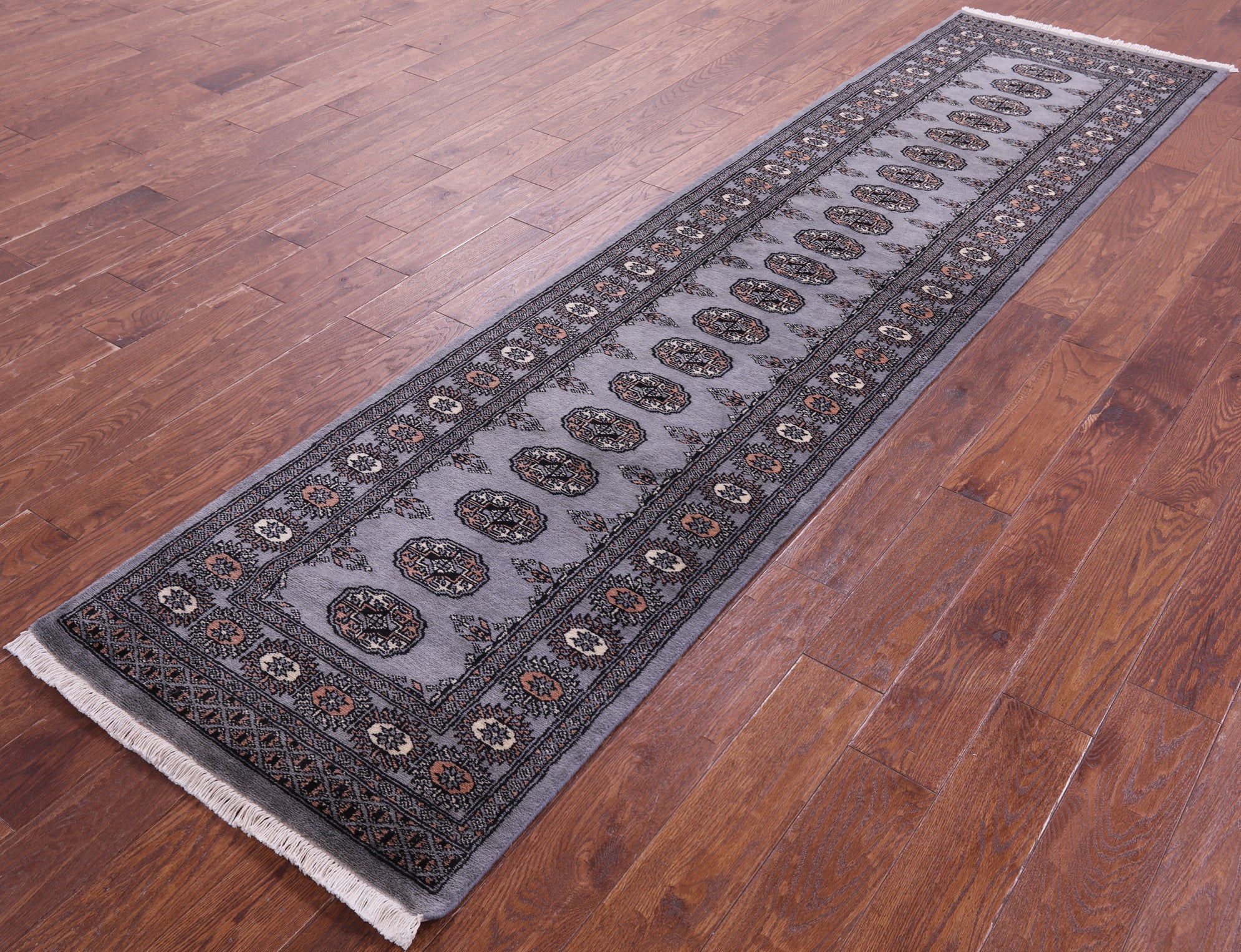 Grey 2' 7" X 10' 3" Silky Bokhara Hand-Knotted Wool Runner Rug - Q23794