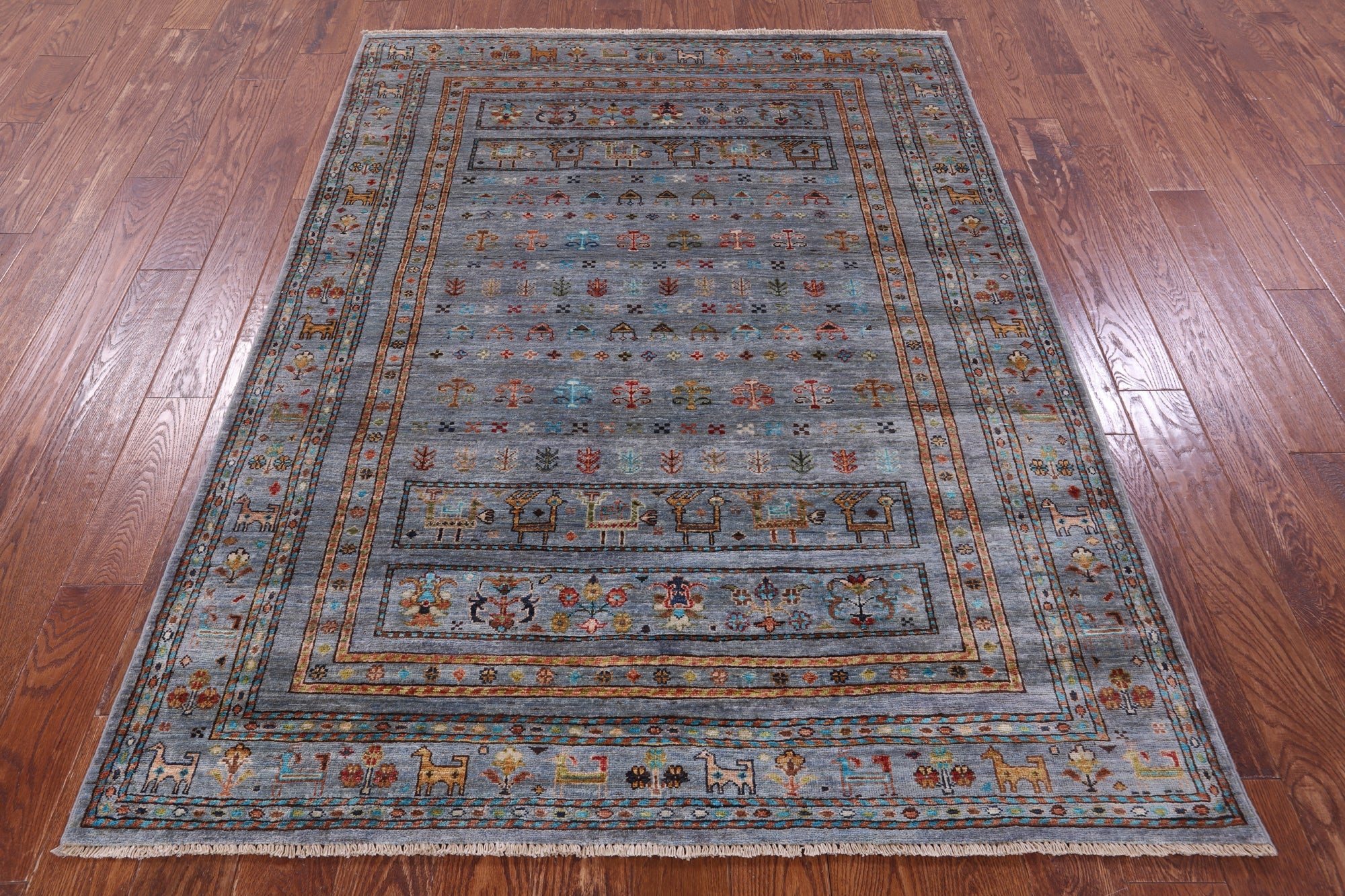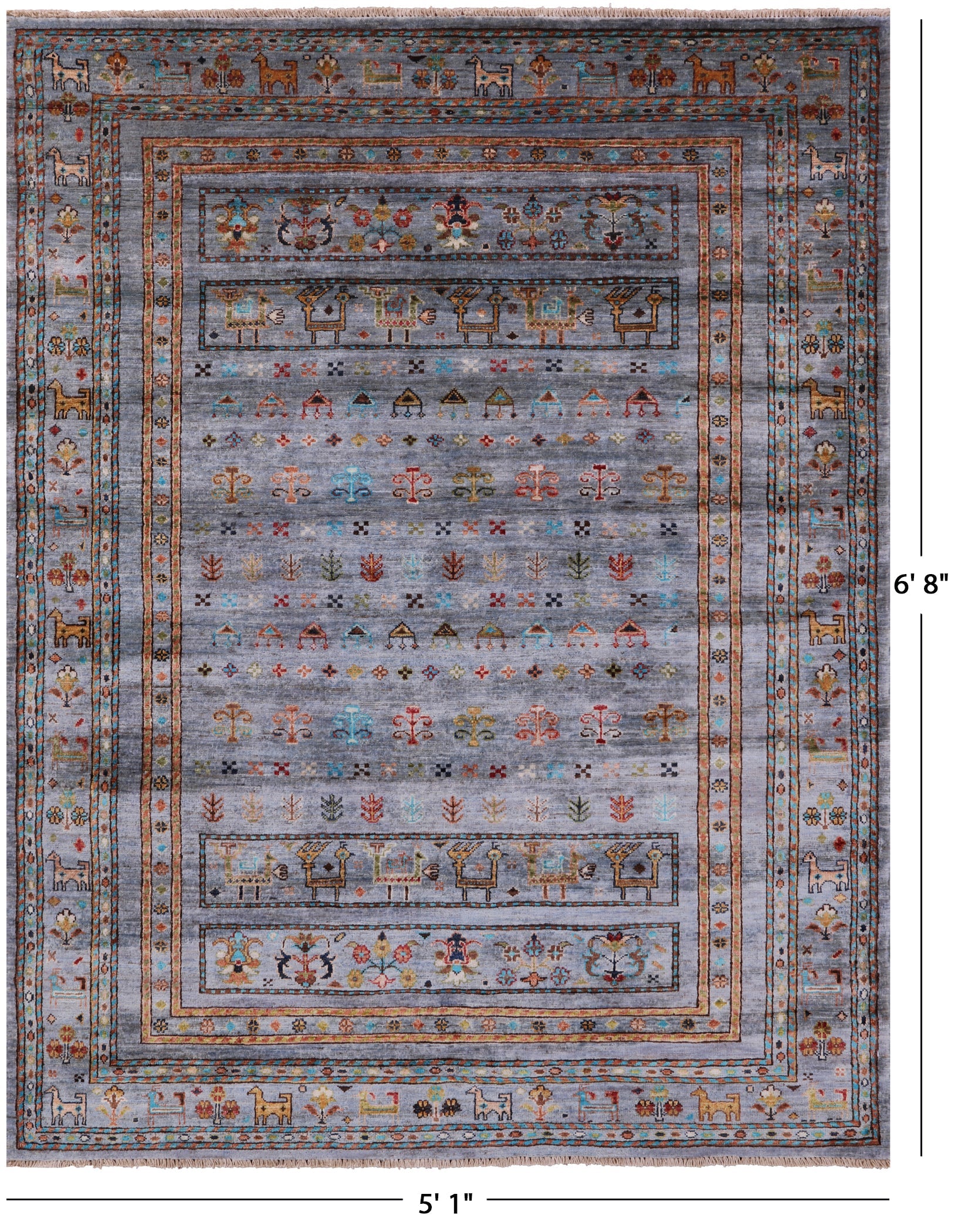 Grey Tribal Persian Gabbeh Hand Knotted Wool Rug 5' 1" X 6' 8" - Q17751