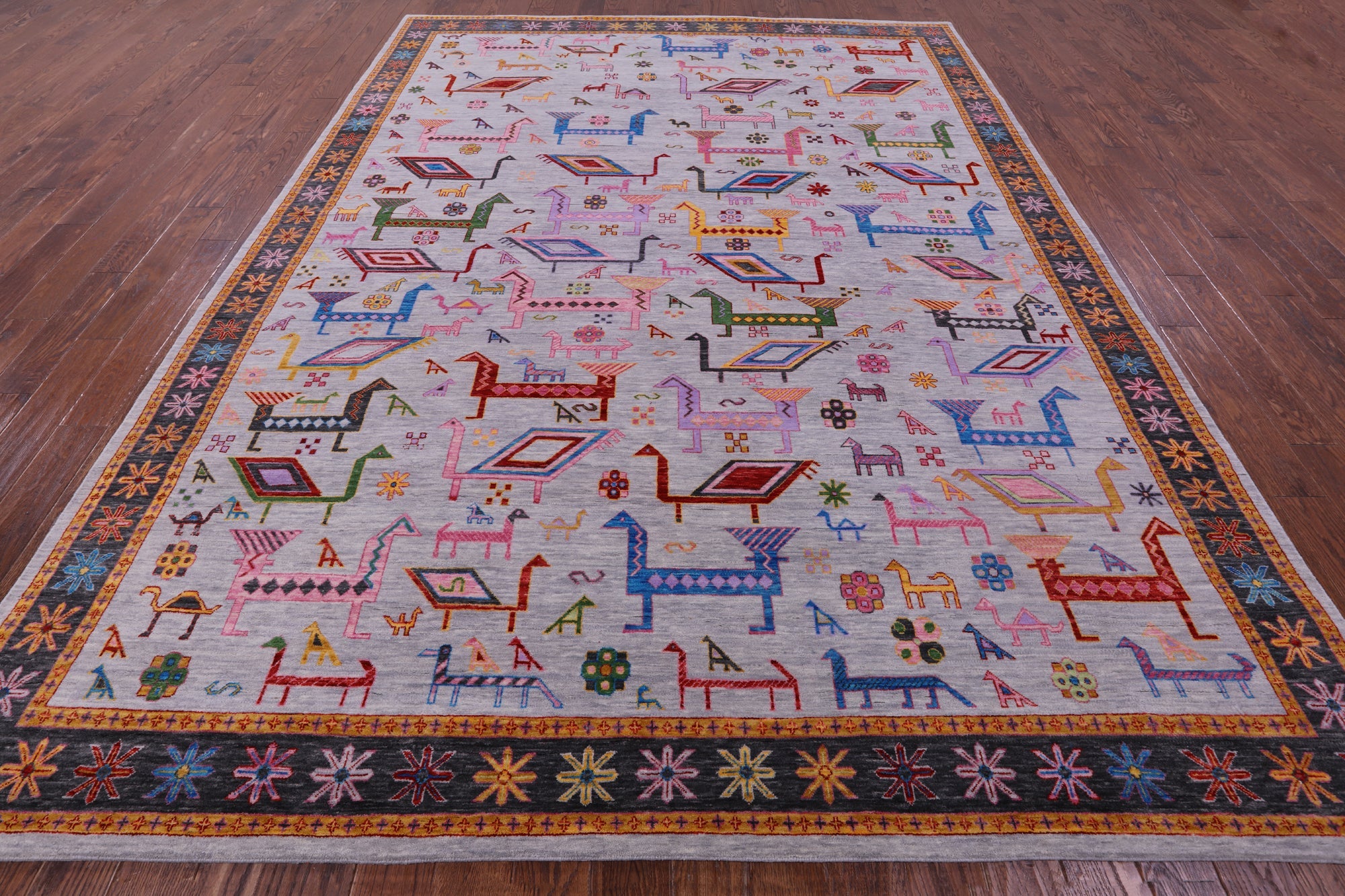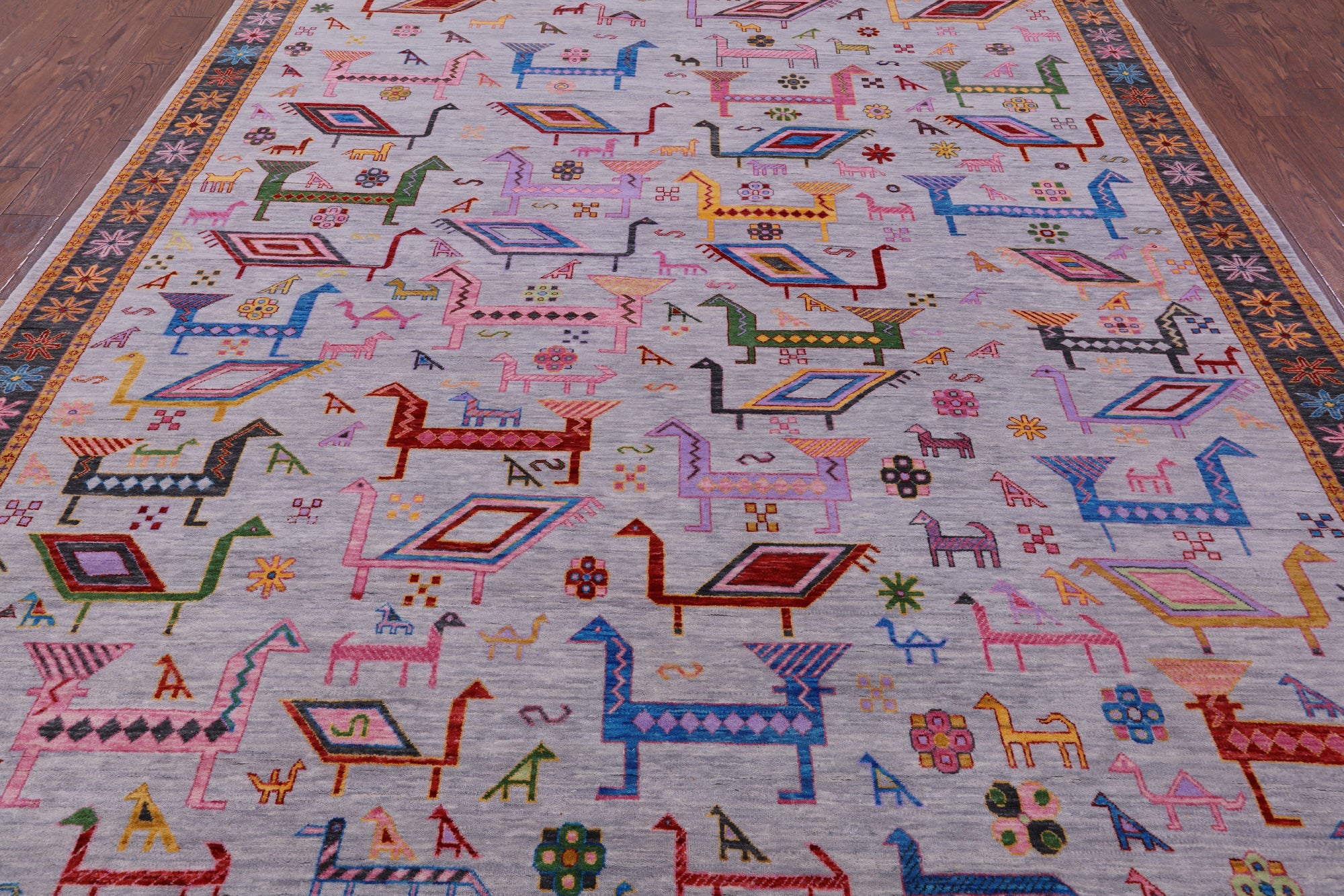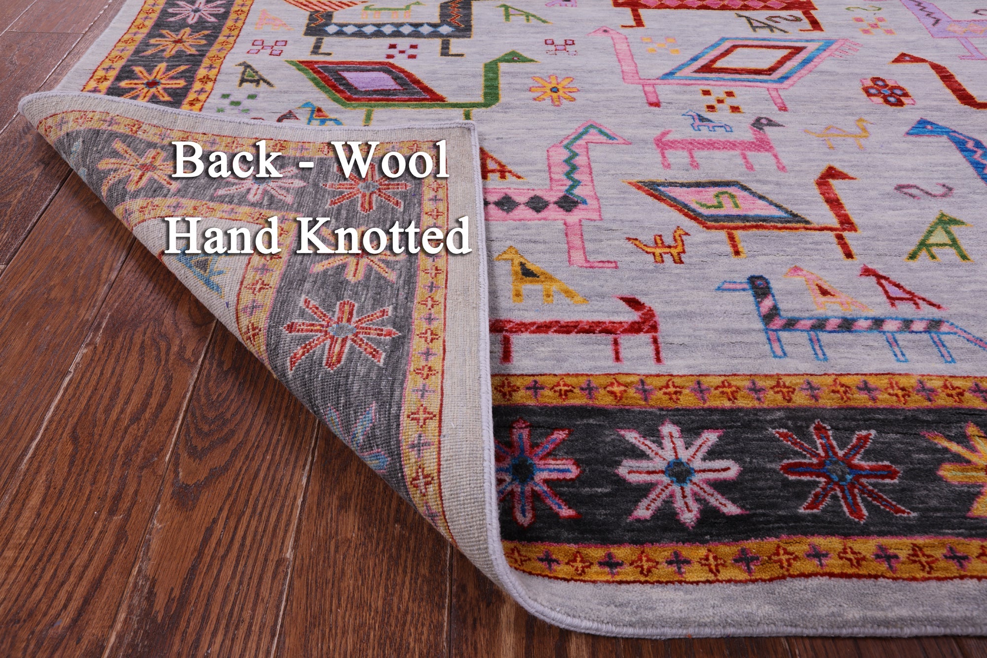 Grey Tribal Persian Gabbeh Handmade Wool Rug 9' 0" X 12' 1" - Q22496 is backordered and will ship as soon as it is back in stock.
