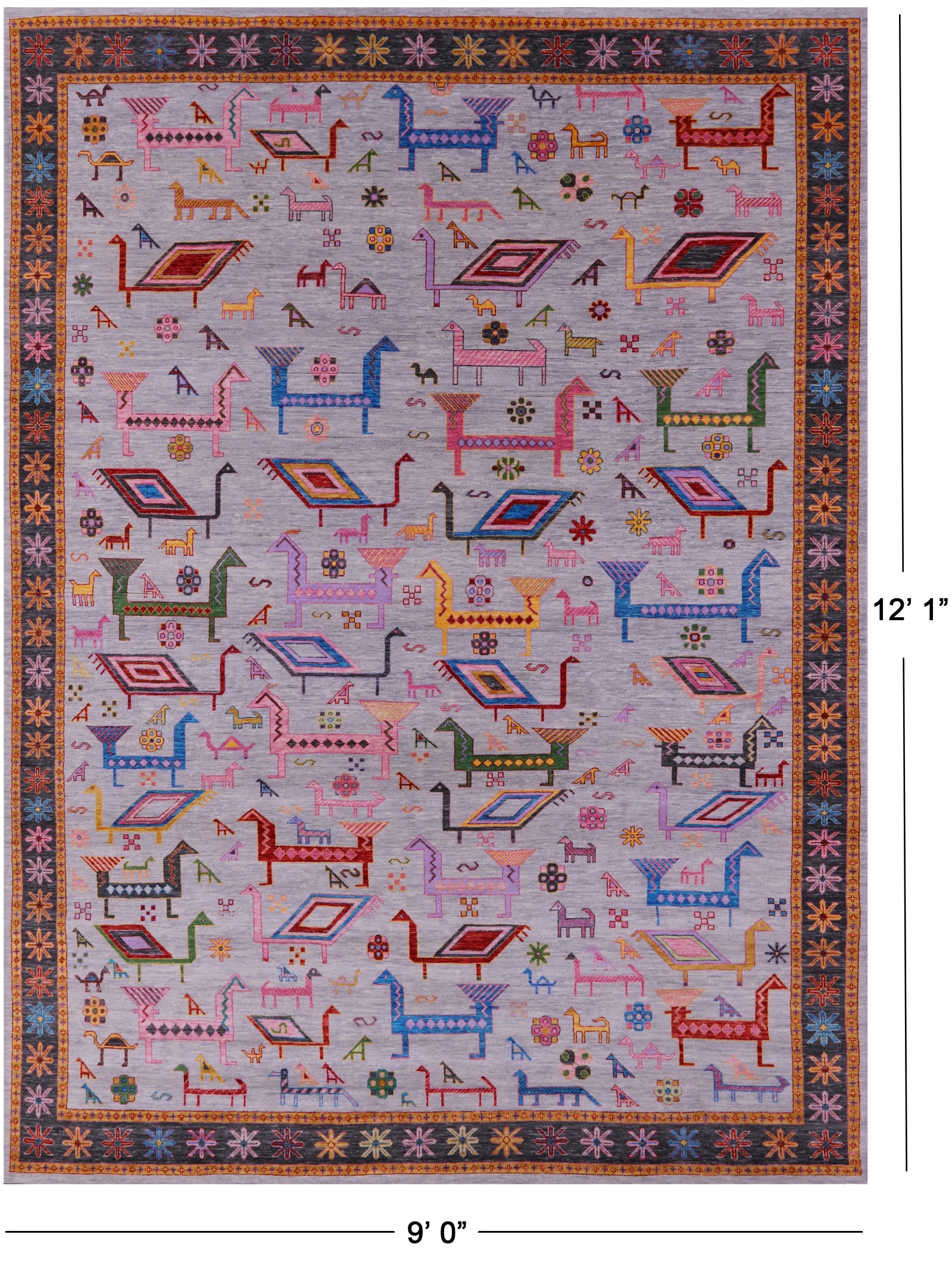 Grey Tribal Persian Gabbeh Handmade Wool Rug 9' 0" X 12' 1" - Q22496