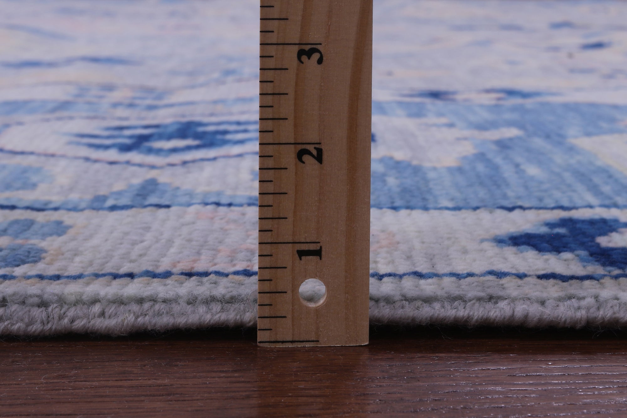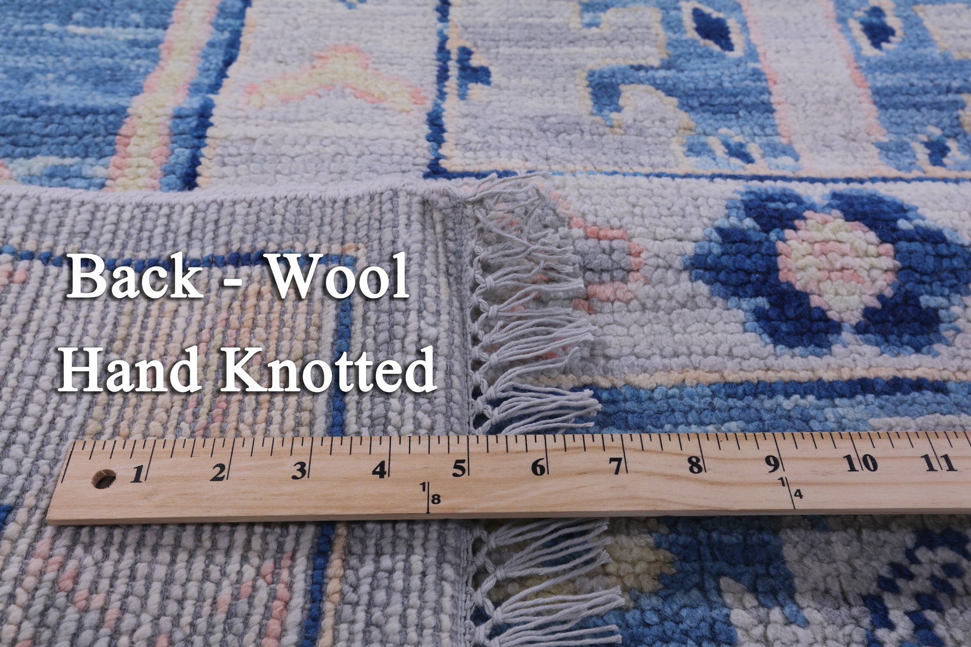 Featuring a classic Oushak design, this rug is adorned with intricate geometric patterns and elegant floral motifs that are reminiscent of the art and architecture of the Ottoman Empire. The soft and plush pile is a pleasure to walk on, making it perfect for use in a bedroom, living room, or dining room.