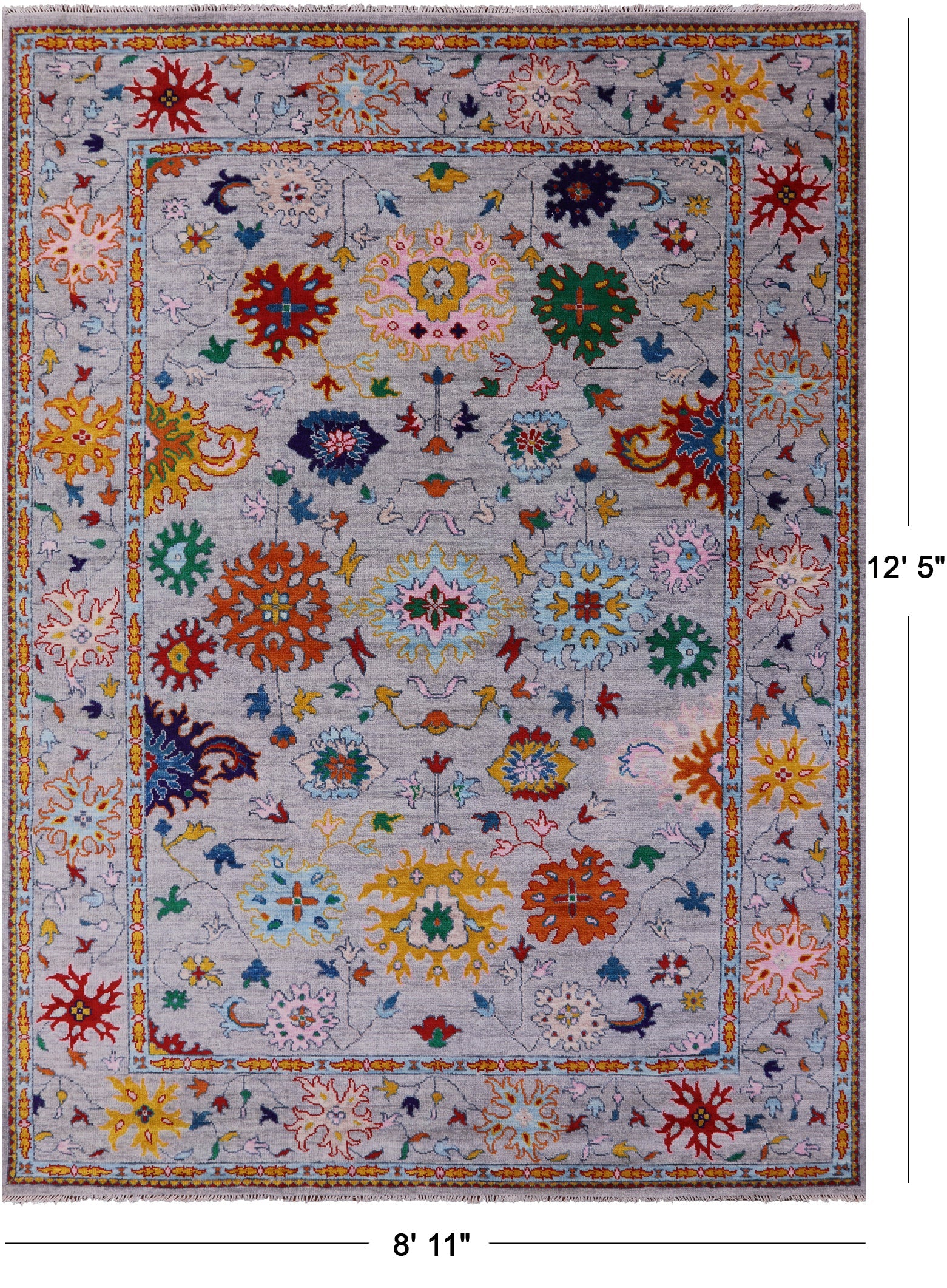 Grey Turkish Angora Oushak Hand-Knotted Wool Rug 8' 11" X 12' 5" - Q13476