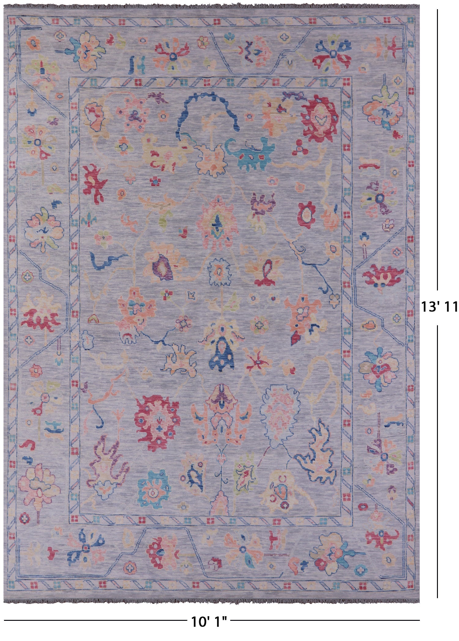 Grey 10' 1" X 13' 11" Turkish Angora Oushak Hand Knotted Wool Rug - Q19765