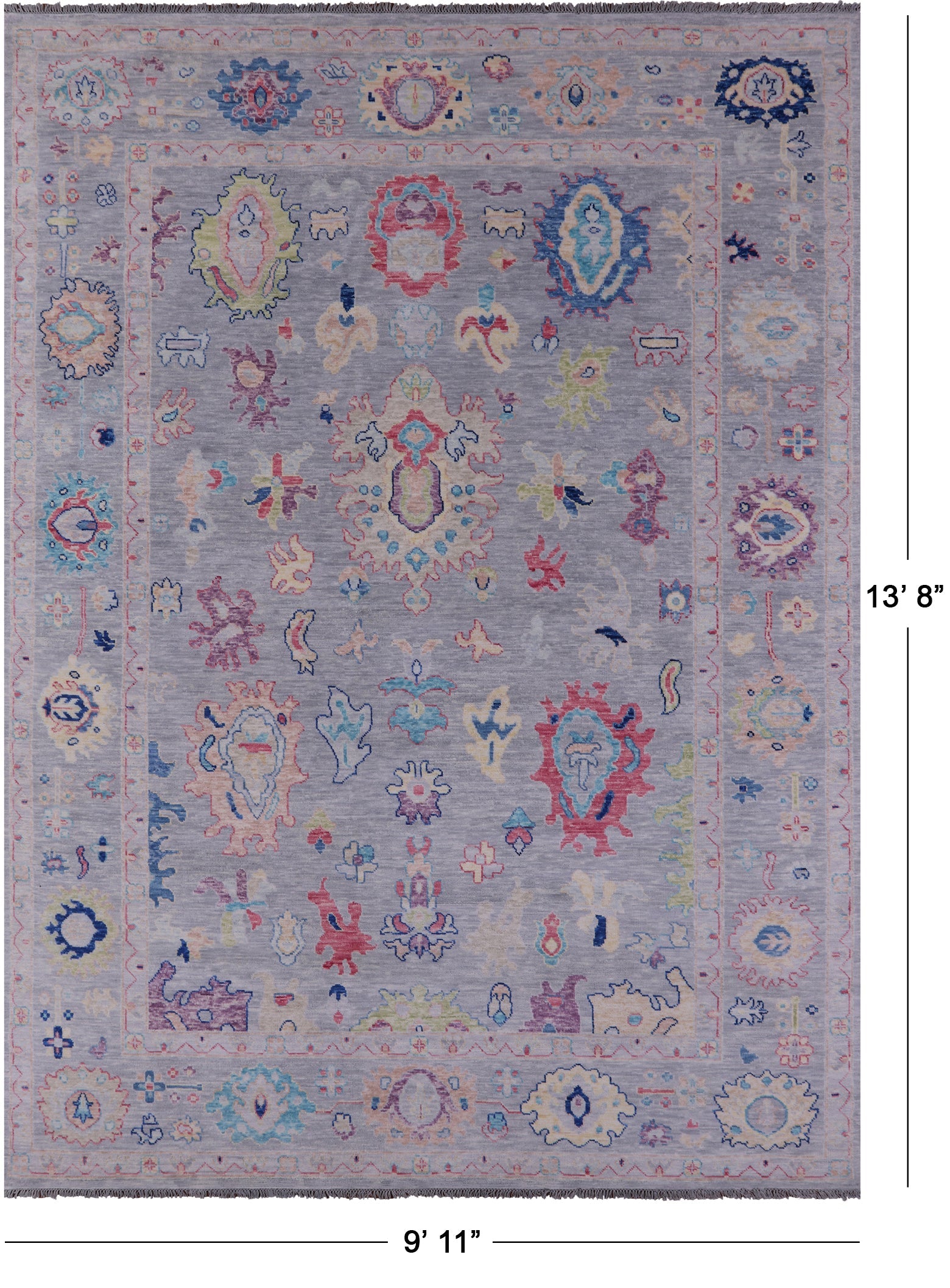 Grey 9' 11" X 13' 8" Turkish Angora Oushak Hand Knotted Wool Rug - Q19790