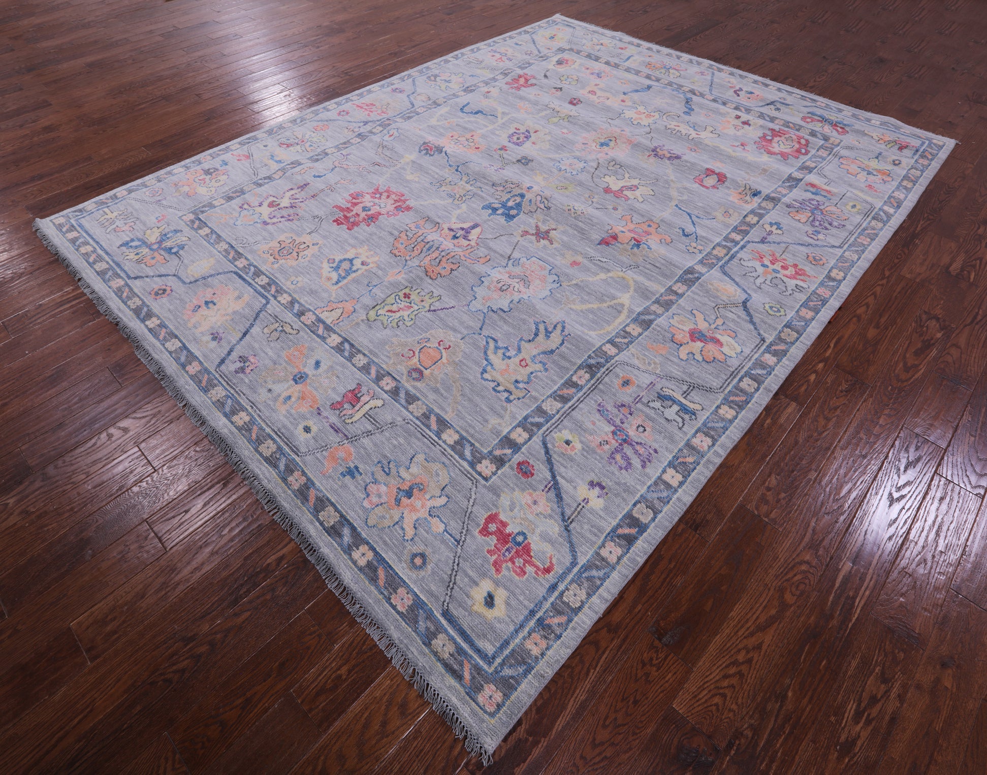 Grey Turkish Angora Oushak Hand Knotted Wool Rug 9' 1" X 12' 0" - Q19812