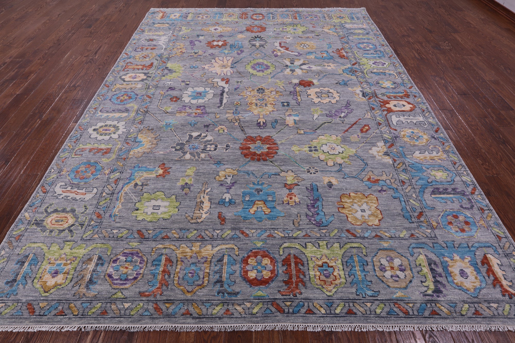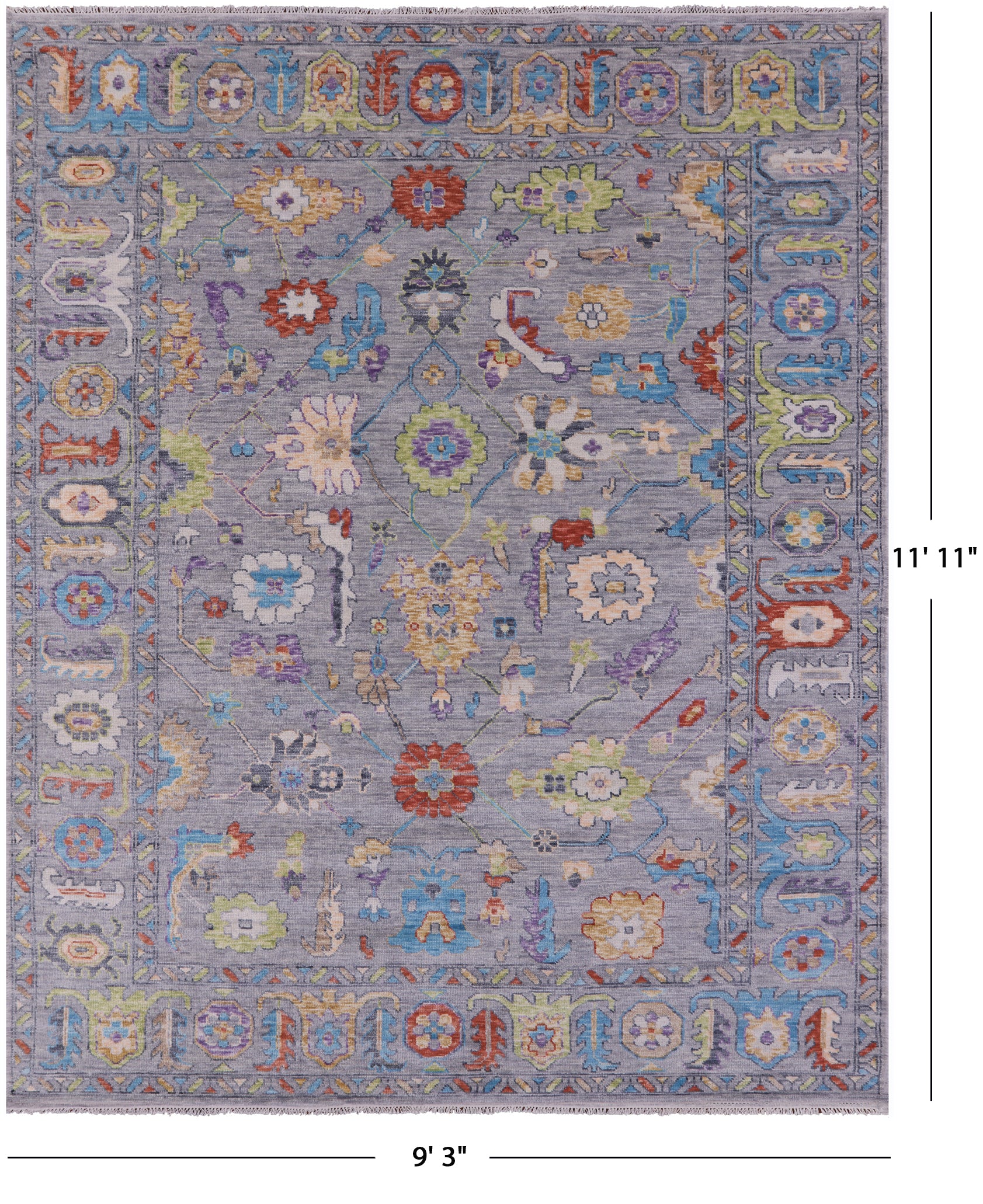Grey 9' 3" X 11' 11" Turkish Angora Oushak Hand-Knotted Wool Rug - Q20039