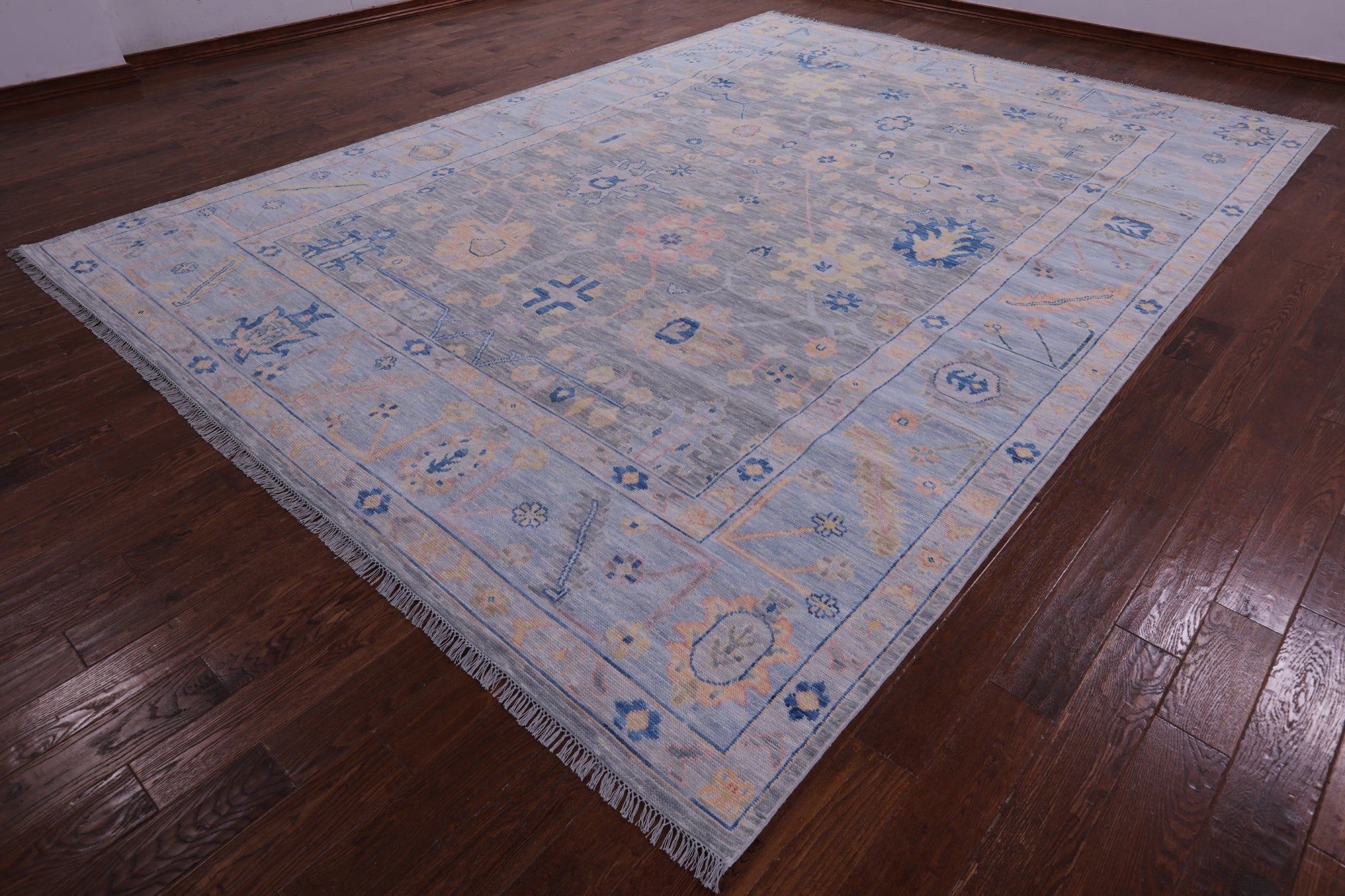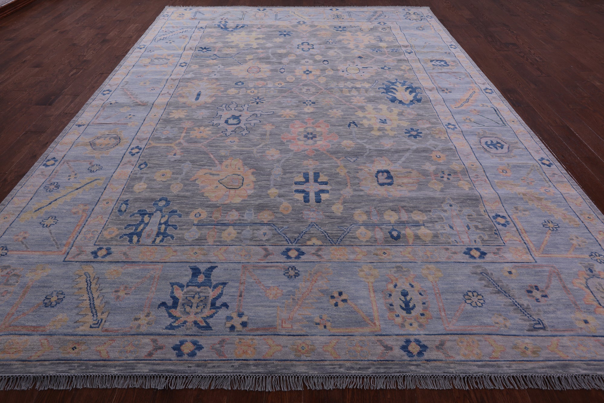 Grey Turkish Angora Oushak Hand-Knotted Wool Rug 10' 0" X 13' 10" - Q21246 is backordered and will ship as soon as it is back in stock.