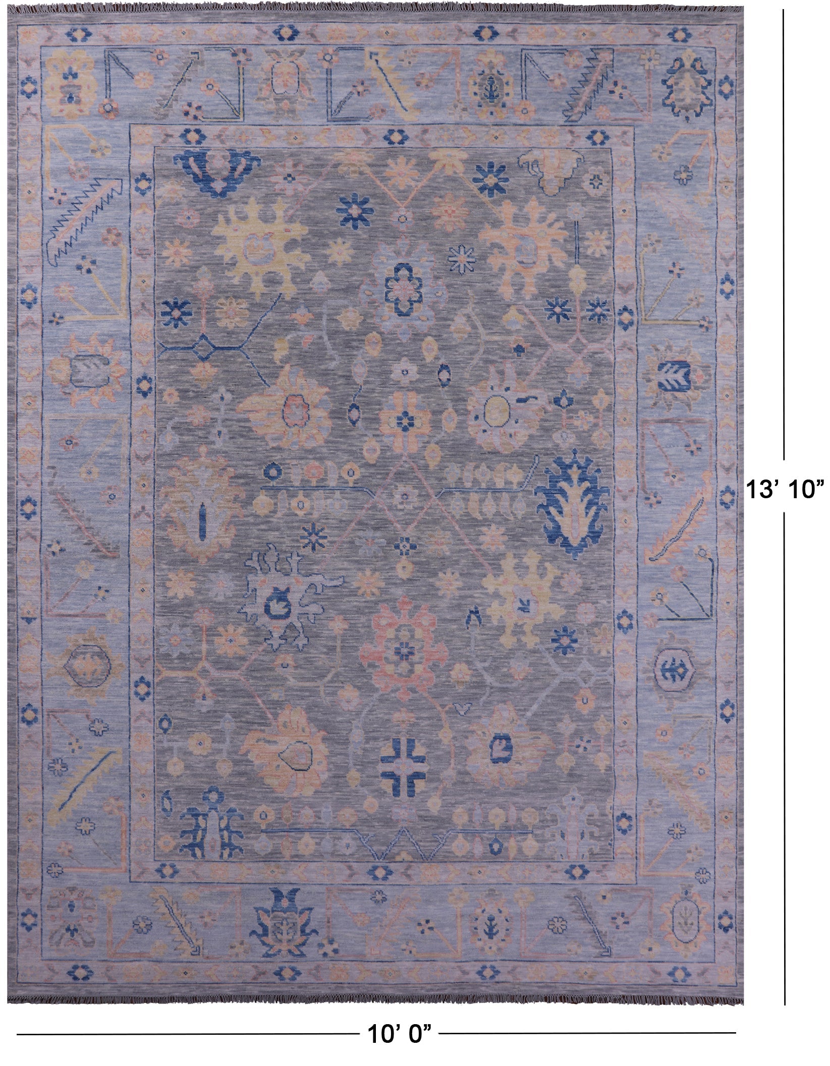 Grey Turkish Angora Oushak Hand-Knotted Wool Rug 10' 0" X 13' 10" - Q21246