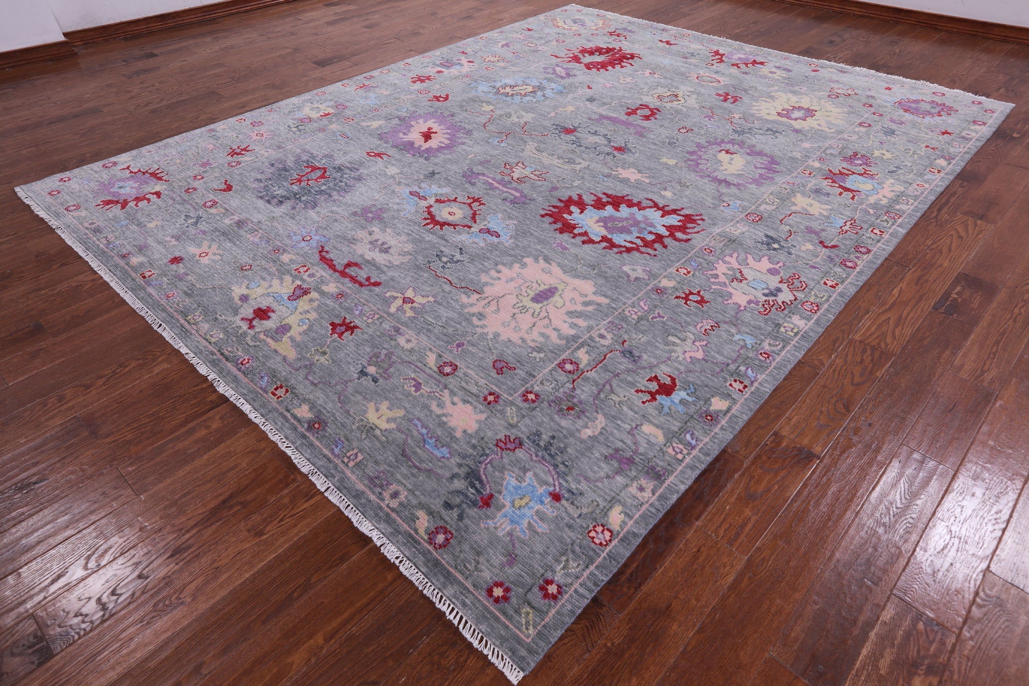 Grey 9' 3" X 12' 0" Turkish Angora Oushak Hand-Knotted Wool Rug - Q8774