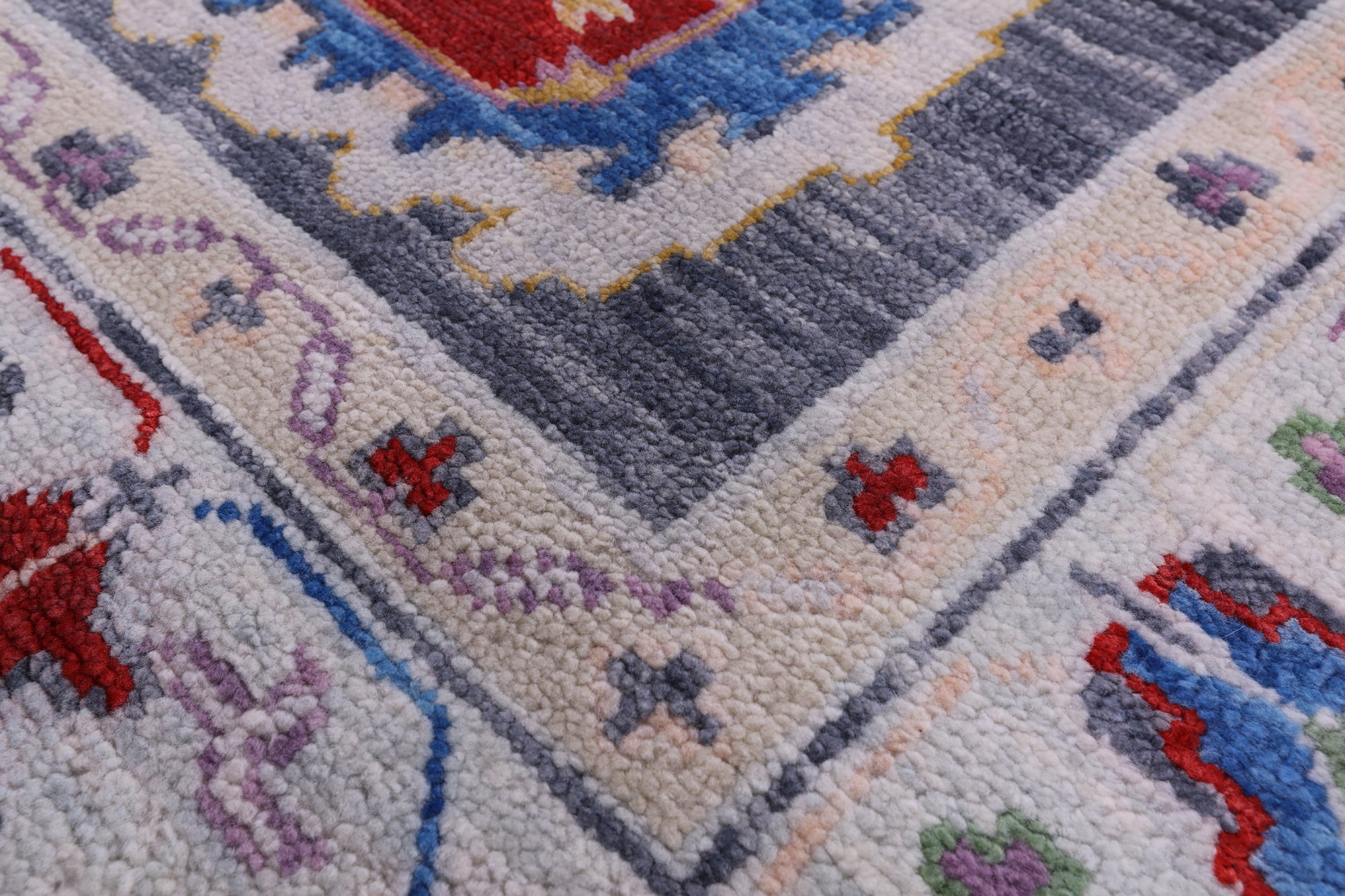 Originating in the small town of Oushak in west-central Anatolia, these rugs were highly favored by the Ottoman Empire. Oushak rugs are one of the most significant styles of Turkish rugs and are known for their beautiful antique look. They are usually designed with motifs consisting of flowers, tendrils, or even geometric shape designs. Larger medallions complement the more intricate designs, creating perfect harmony. Colors are stunningly balanced with warm and cool tones, completing the rug.